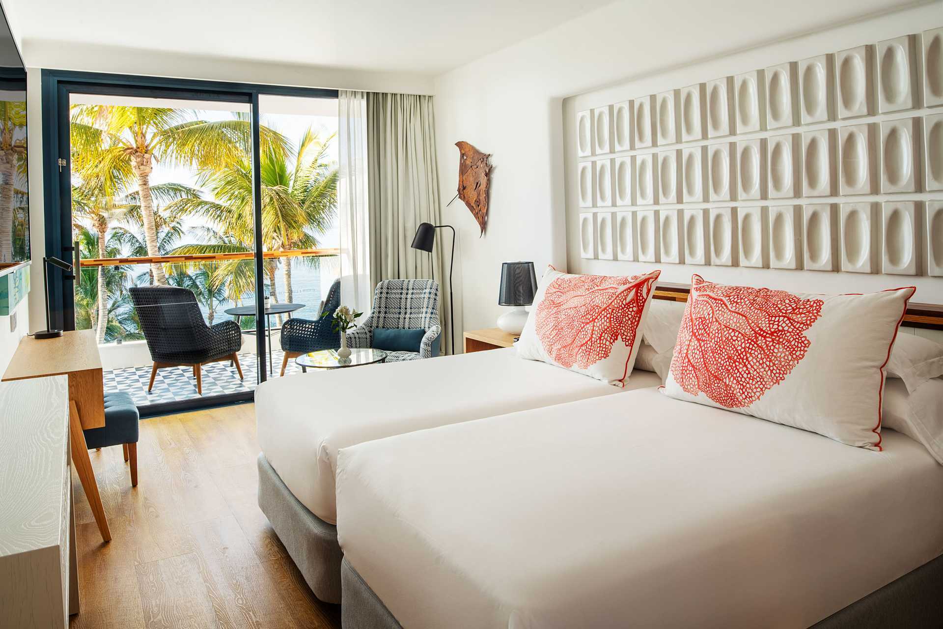 Dobbeltværelse med balkon og havudsigt. To enkeltsenge. Pudemenu. Gratis wifi, aircondition og deponering. Køleskab. El-kedel og kaffe/te. Tv med internationale kanaler. Badekåber og tøfler. Hårtørrer. Badeværelse med bruser og toilet. Rengøring 7 gange om ugen.