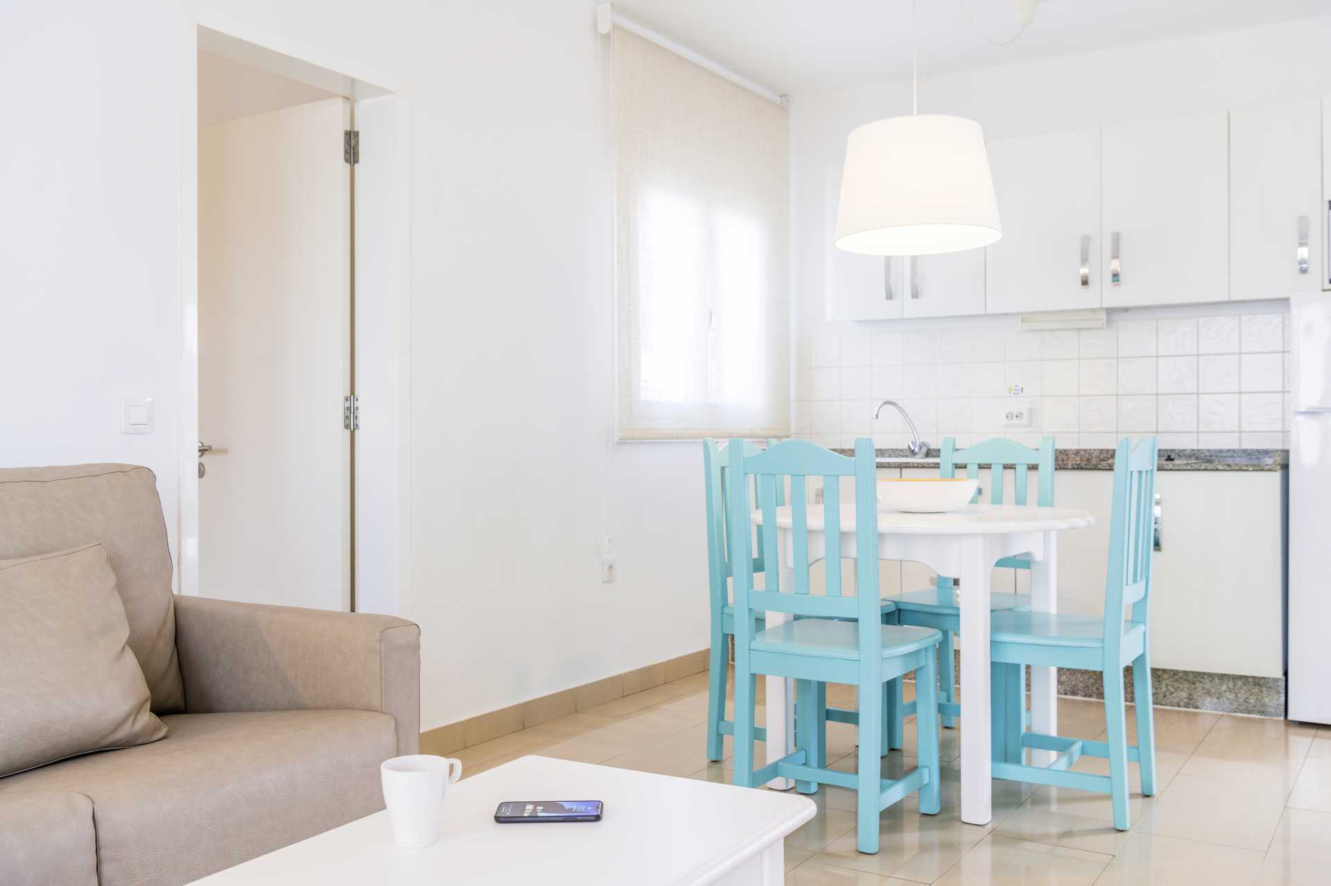 2-værelses lejligheder med et separat soveværelser og et kombineret opholdsrum og minikøkken. To enkeltsenge. Mulighed for ekstra opredning i sovesofa. Kogeplader, køleskab, mikroovn, el-kedel, brødrister, kaffemaskine og juicepresser samt enkelt køkkenudstyr. Gratis wifi. Deponering mod betaling. Loftvifte i opholdsrum og soveværelse. Tv med internationale kanaler. Strygefaciliteter. Hårtørrer. Badeværelse med bruser og toilet. Balkon eller terrasse.
