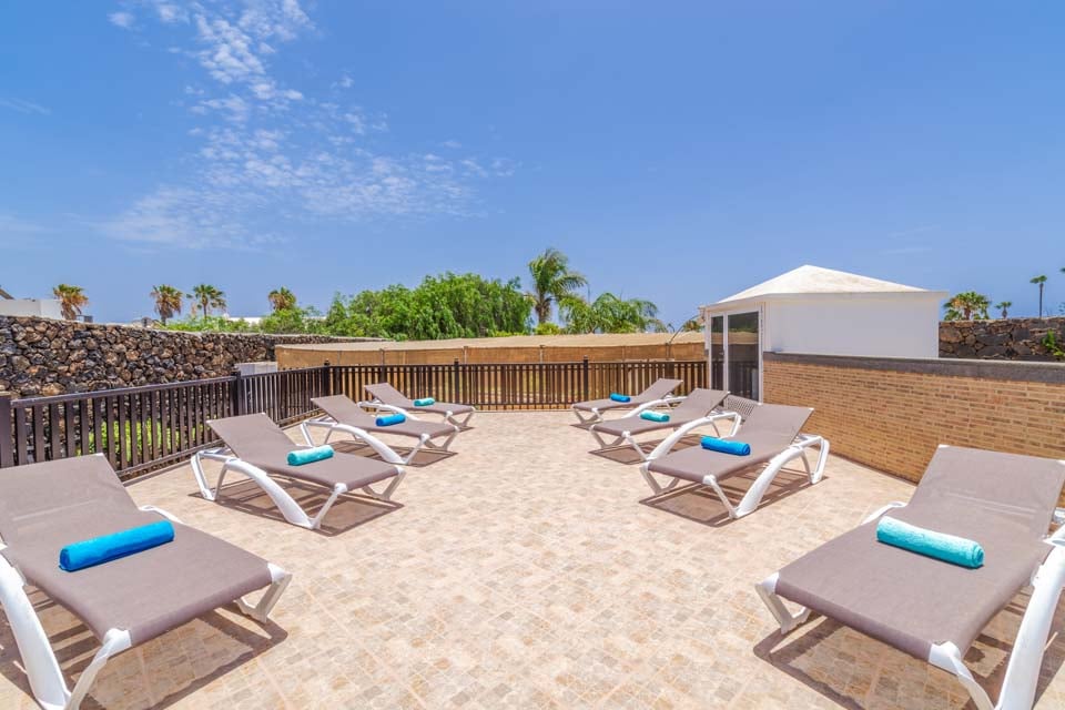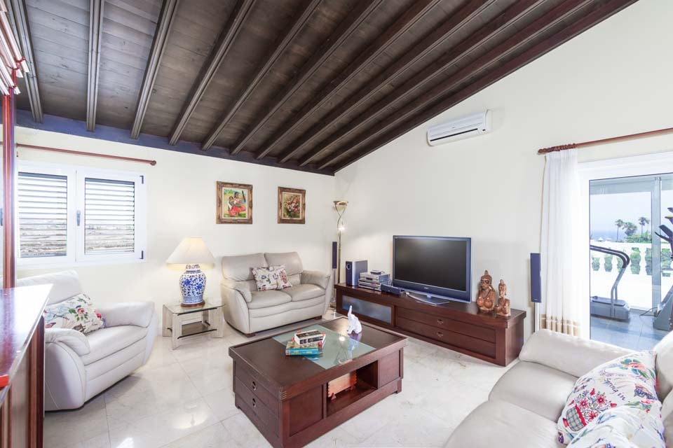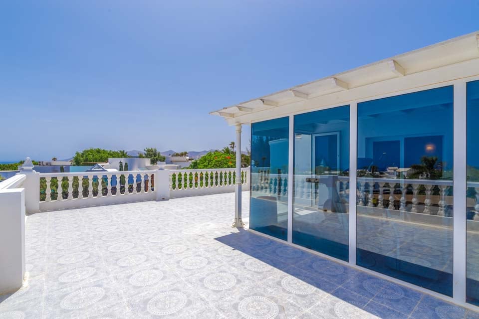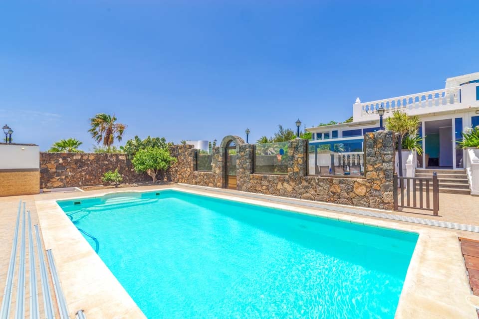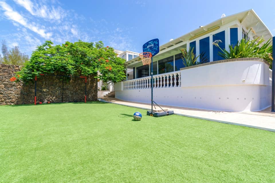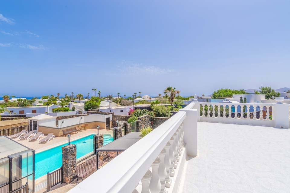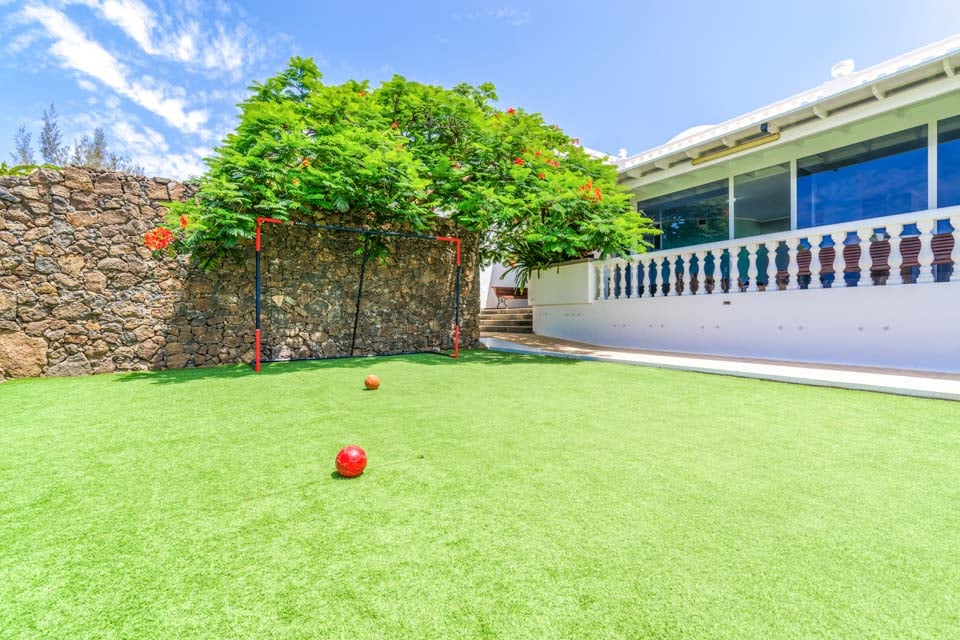Villa Cervera er en dejlig stor, rummelig villa beliggende i det up-market 'Los Mojones' område i Puerto del Carmen. Uanset om du ønsker at slappe af ved poolen eller spille spil med familien, er Villa Cervera et fantastisk sted at tilbringe en uforglemmelig ferie. Det kan prale af sit eget fitnesscenter og adskillige boldspil for dem, der kan lide action; eller du kan nyde den fantastiske 12 meter lange pool og liggestolene ved poolen, hvis alt, hvad du har lyst til, er at læne dig tilbage og nyde solen. Villa Cervera har en dejlig beliggenhed og byder på en pragtfuld udsigt fra balkonen på første sal, hvor du kan se havet om dagen eller nyde solen gå ned om aftenen. Udstyret med en murstensgrill kan du lave mad i det udendørs køkkenområde, klar til at nyde et festmåltid med dine nærmeste i det dejlige udendørs spiseområde. Den dejlige store udestue har flere sæt terrassedøre, udsigt til det fri og etablerede haver, der blander inde- og udeliv. Med masser af plads til hele familien har hver etage sin egen stue og kan prale af fire soveværelser, som alle har aircondition for din komfort. Der er masser at underholde dig i Villa Cervera, men hvis du har lyst til at tage afsted, er du ikke langt fra den smukke sandstrand. Beliggende mellem den gamle og nye bydel i Puerto del Carmen har du et ubegrænset udvalg af barer, restauranter og butikker i nærheden.