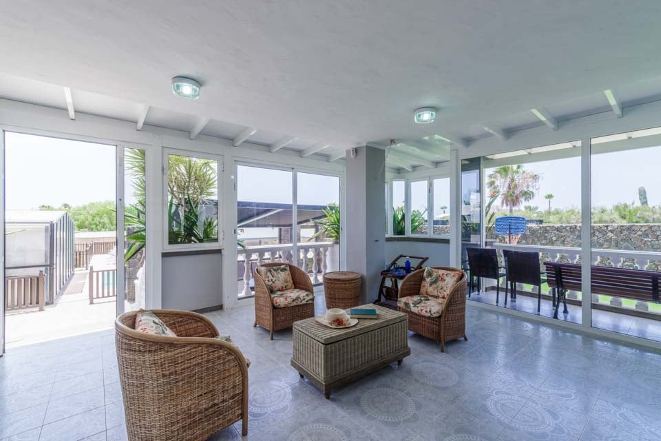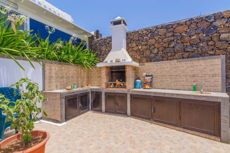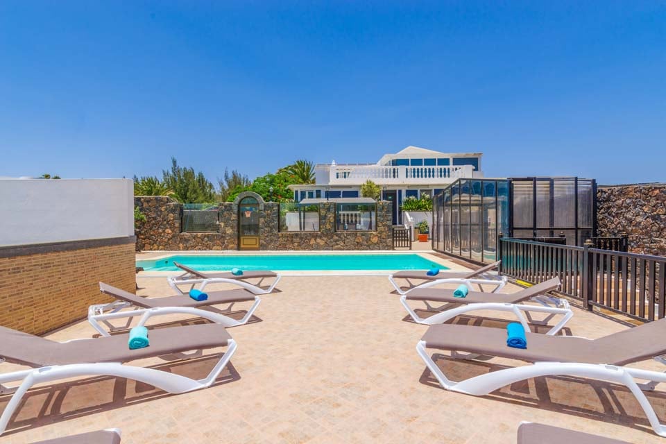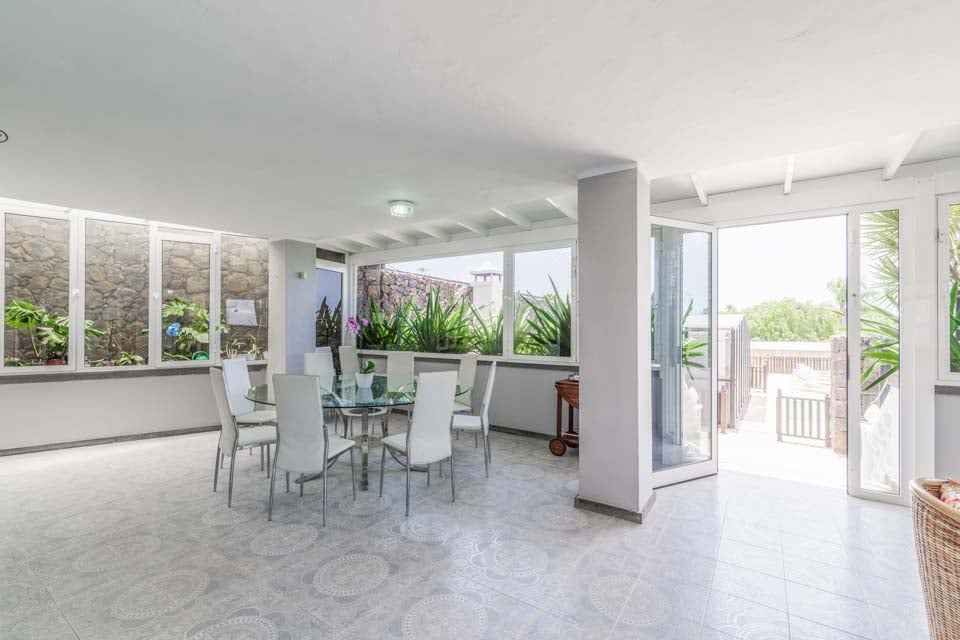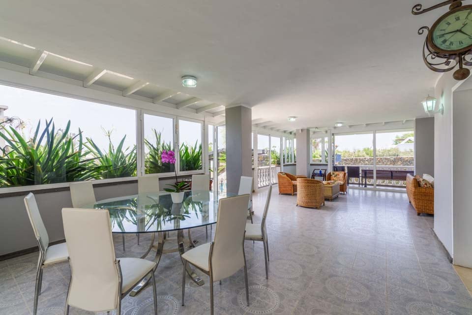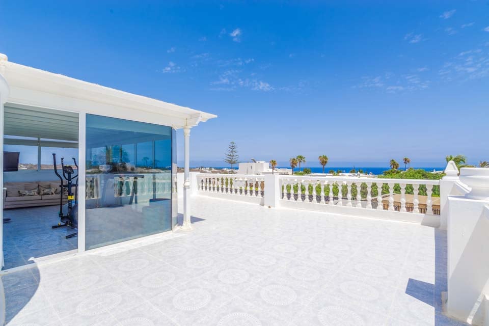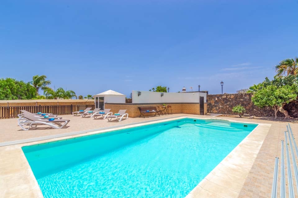 Villa Cervera er en dejlig stor, rummelig villa beliggende i det up-market 'Los Mojones' område i Puerto del Carmen. Uanset om du ønsker at slappe af ved poolen eller spille spil med familien, er Villa Cervera et fantastisk sted at tilbringe en uforglemmelig ferie. Det kan prale af sit eget fitnesscenter og adskillige boldspil for dem, der kan lide action; eller du kan nyde den fantastiske 12 meter lange pool og liggestolene ved poolen, hvis alt, hvad du har lyst til, er at læne dig tilbage og nyde solen. Villa Cervera har en dejlig beliggenhed og byder på en pragtfuld udsigt fra balkonen på første sal, hvor du kan se havet om dagen eller nyde solen gå ned om aftenen. Udstyret med en murstensgrill kan du lave mad i det udendørs køkkenområde, klar til at nyde et festmåltid med dine nærmeste i det dejlige udendørs spiseområde. Den dejlige store udestue har flere sæt terrassedøre, udsigt til det fri og etablerede haver, der blander inde- og udeliv. Med masser af plads til hele familien har hver etage sin egen stue og kan prale af fire soveværelser, som alle har aircondition for din komfort. Der er masser at underholde dig i Villa Cervera, men hvis du har lyst til at tage afsted, er du ikke langt fra den smukke sandstrand. Beliggende mellem den gamle og nye bydel i Puerto del Carmen har du et ubegrænset udvalg af barer, restauranter og butikker i nærheden.