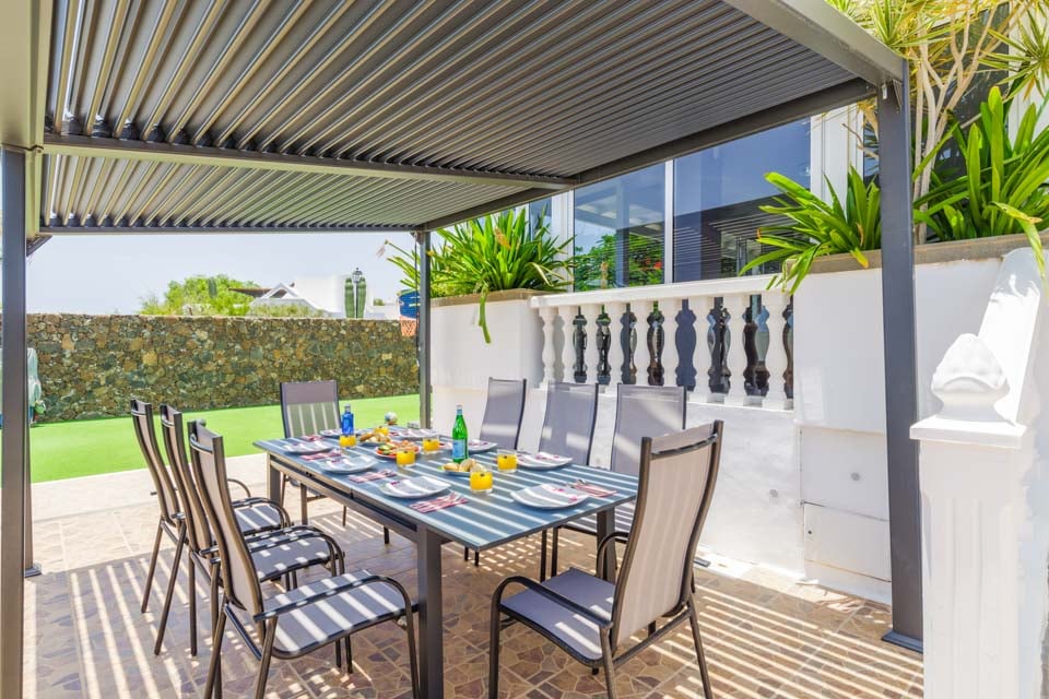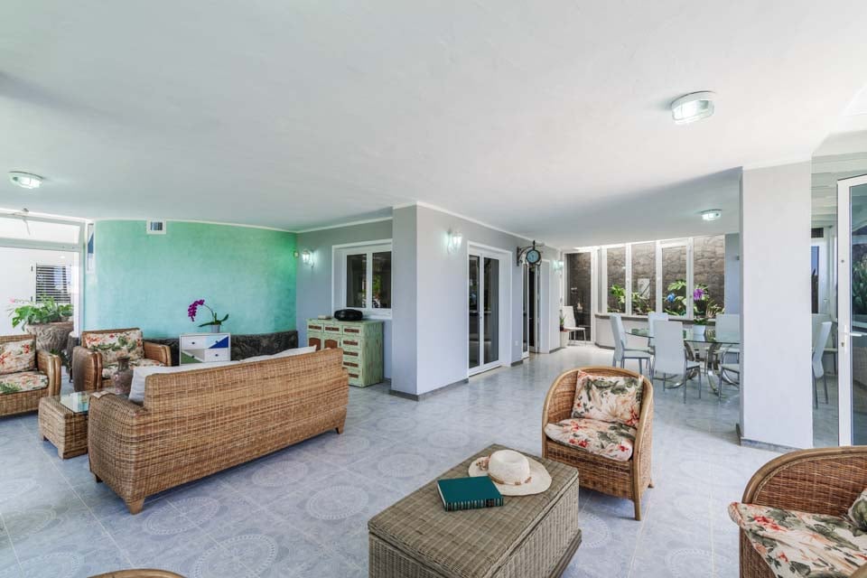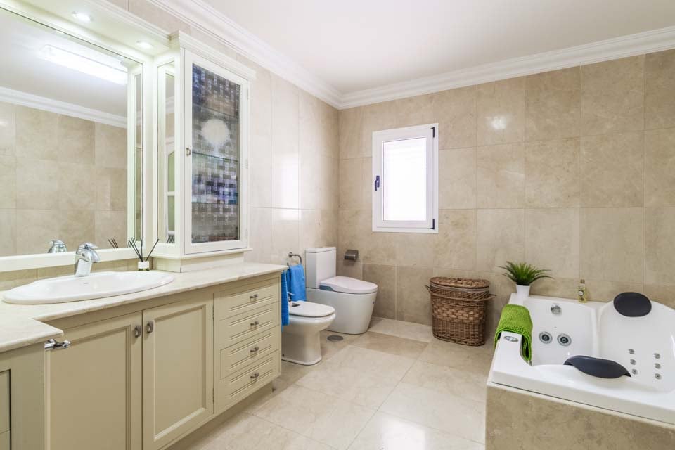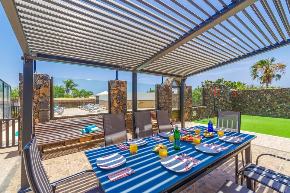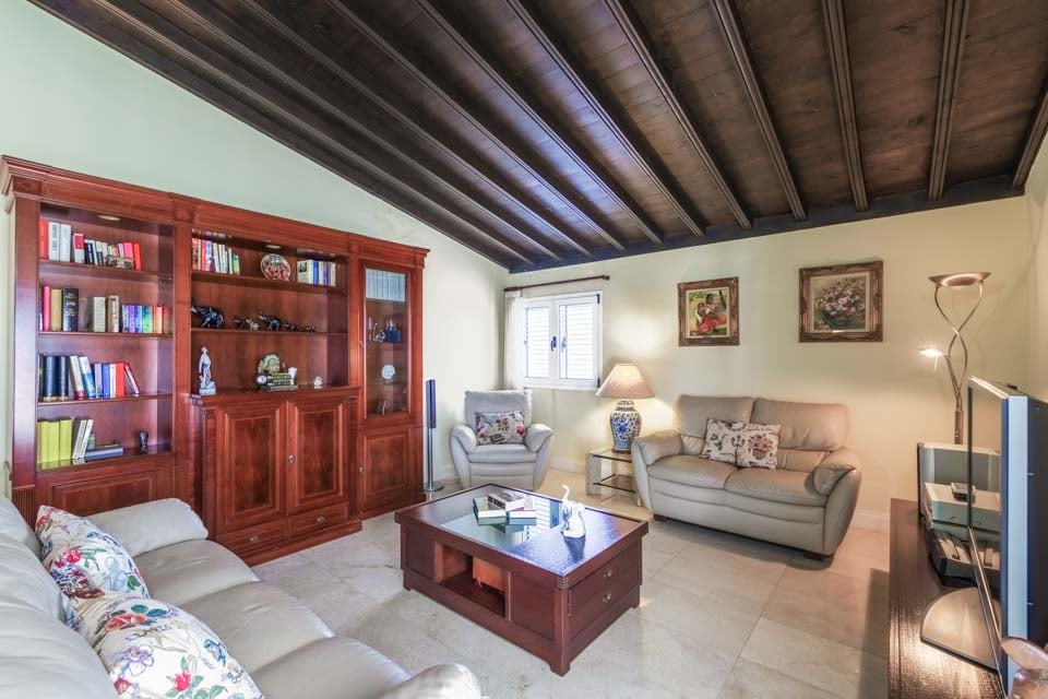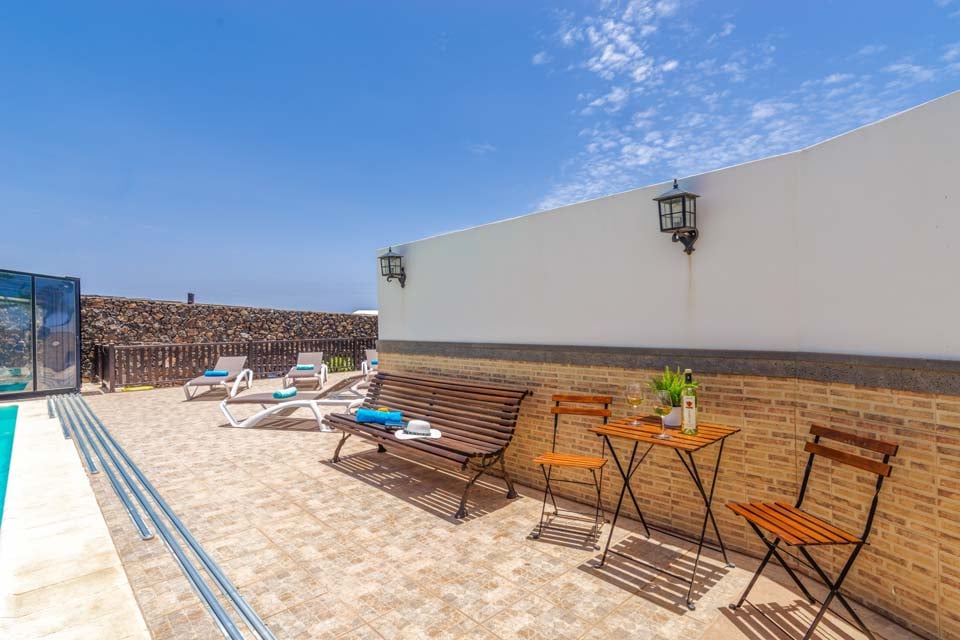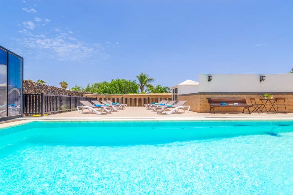 Villa Cervera er en dejlig stor, rummelig villa beliggende i det up-market 'Los Mojones' område i Puerto del Carmen. Uanset om du ønsker at slappe af ved poolen eller spille spil med familien, er Villa Cervera et fantastisk sted at tilbringe en uforglemmelig ferie. Det kan prale af sit eget fitnesscenter og adskillige boldspil for dem, der kan lide action; eller du kan nyde den fantastiske 12 meter lange pool og liggestolene ved poolen, hvis alt, hvad du har lyst til, er at læne dig tilbage og nyde solen. Villa Cervera har en dejlig beliggenhed og byder på en pragtfuld udsigt fra balkonen på første sal, hvor du kan se havet om dagen eller nyde solen gå ned om aftenen. Udstyret med en murstensgrill kan du lave mad i det udendørs køkkenområde, klar til at nyde et festmåltid med dine nærmeste i det dejlige udendørs spiseområde. Den dejlige store udestue har flere sæt terrassedøre, udsigt til det fri og etablerede haver, der blander inde- og udeliv. Med masser af plads til hele familien har hver etage sin egen stue og kan prale af fire soveværelser, som alle har aircondition for din komfort. Der er masser at underholde dig i Villa Cervera, men hvis du har lyst til at tage afsted, er du ikke langt fra den smukke sandstrand. Beliggende mellem den gamle og nye bydel i Puerto del Carmen har du et ubegrænset udvalg af barer, restauranter og butikker i nærheden.