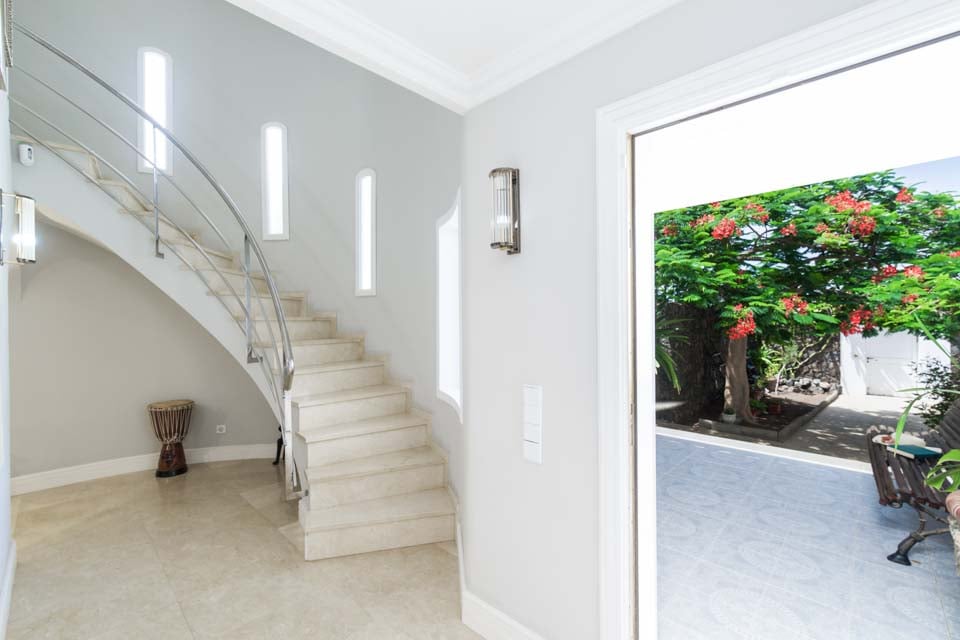 For at komme til villaen er der en 93 cm bred sti sammen med 4 trin. Hoveddøren har en bredde på 78 cm, mens døren til terrassen er 86 cm bred. Udenfor er der 5 trin fra terrassen til poolen. Selve poolen har trinadgang. Rundt om poolen kan det være ujævnt nogle steder på grund af mønsteret på fliserne. Dobbeltværelset i stueetagen har en dørbredde på 66 cm, mens døren til brusebadet er 60 cm bred. Der er 14 trin til første sal. Døren ind til køkken/alrum er 67 cm bred, og døren ind til opholdsstuen er også 78 cm bred. *Bemærk venligst, at selvom vi har gjort alt for at sikre, at de givne oplysninger er nøjagtige, kan der forekomme fejl, og hvis du har brug for mere specifik information om villaen, er du velkommen til at kontakte os.