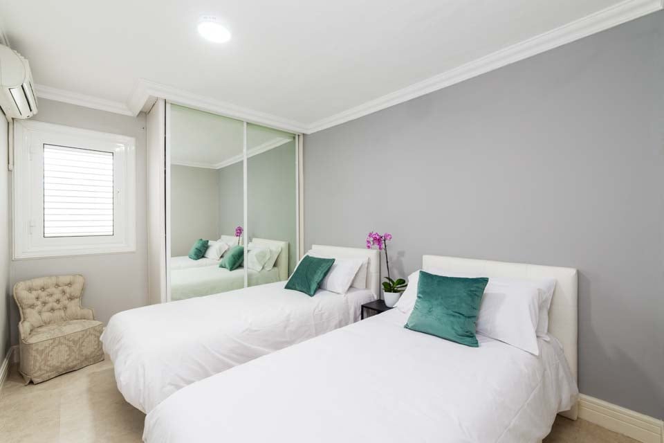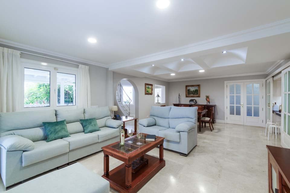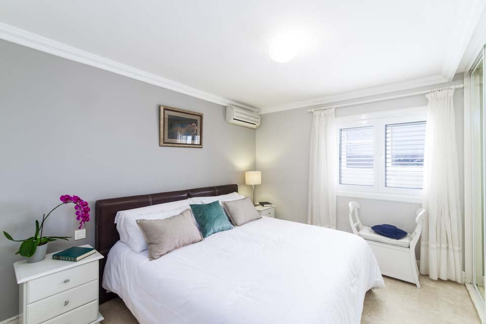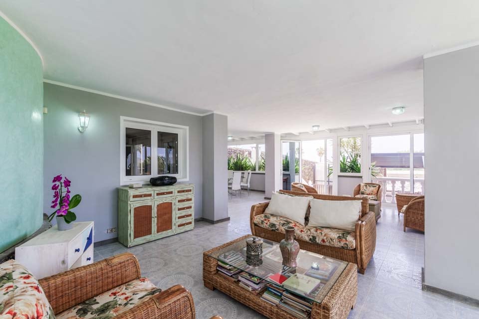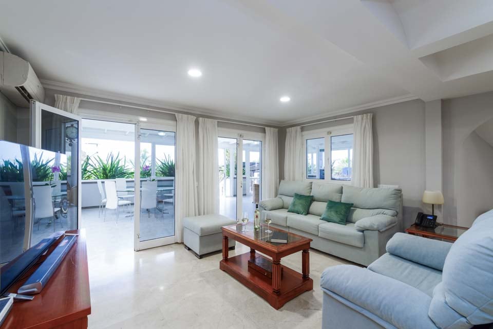 Aircondition, spiseplads, komfortable siddepladser, døre til terrasse, satellit-tv med få engelske kanaler