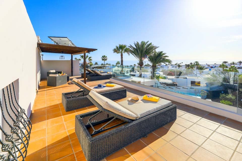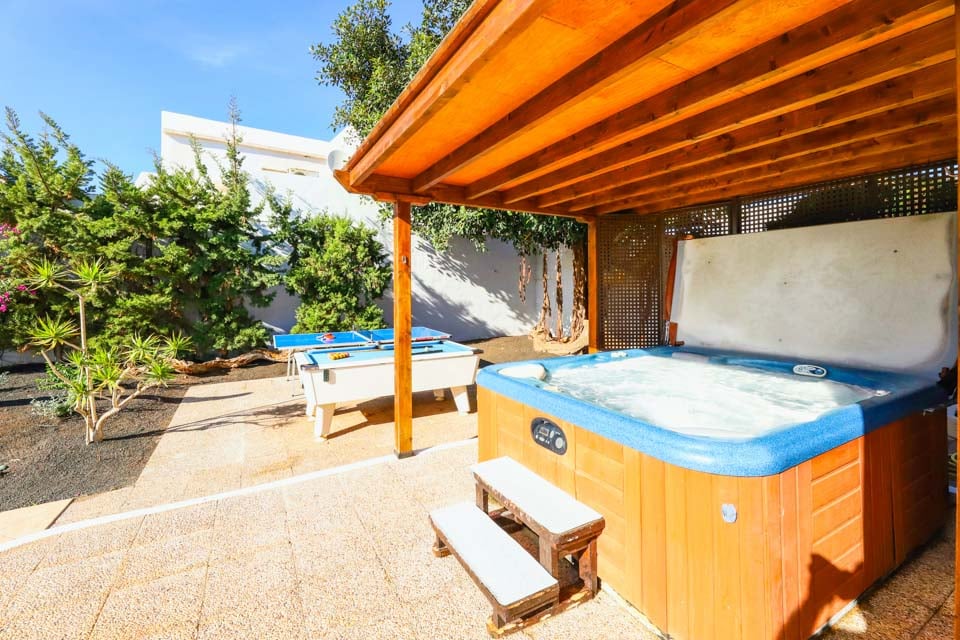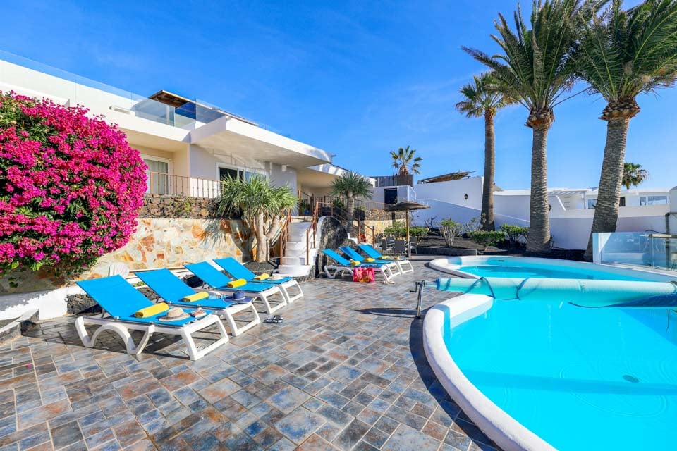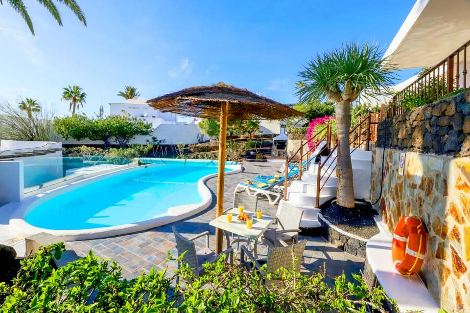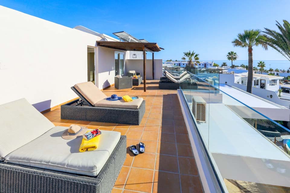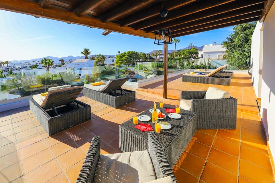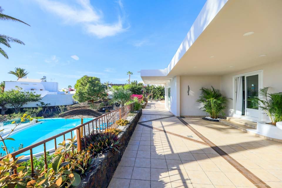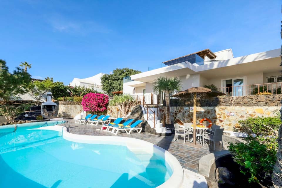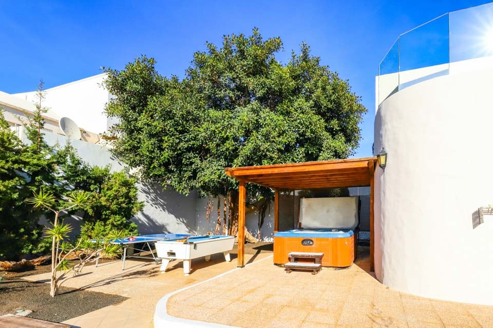 Villa Cilla er en dejlig villa, der ligger mindre end 15 minutters gang fra den livlige og populære badeby Puerto del Carmen. Beliggende på en privilegeret, højtliggende grund er udsigten herfra virkelig enestående. Vi forestiller os, at mange dage og aftener vil blive tilbragt her i villaernes spabad med et glas vin ved hånden, mens vi beundrer den fantastiske udsigt, mens vi holder øje med de yngre familiemedlemmer, der plasker rundt i den større end gennemsnitlige private swimmingpool nedenfor. Interiøret i denne pragtfulde villa er lyst, luftigt og særligt rummeligt, perfekt til store familier eller vennegrupper, der rejser sammen. Hvis du ønsker at begive dig ud fra dette fantastiske udsigtspunkt, kan vi varmt anbefale at tilbringe et par aftener i Puerto del Carmen, hvor du finder et udvalg af fremragende restauranter, barer og butikker, især i nærheden af det gamle havneområde. For dem af jer, der nyder lange aftenspadsere, strækker den brede gågade sig et par kilometer langs denne naturskønne og livlige kystlinje.