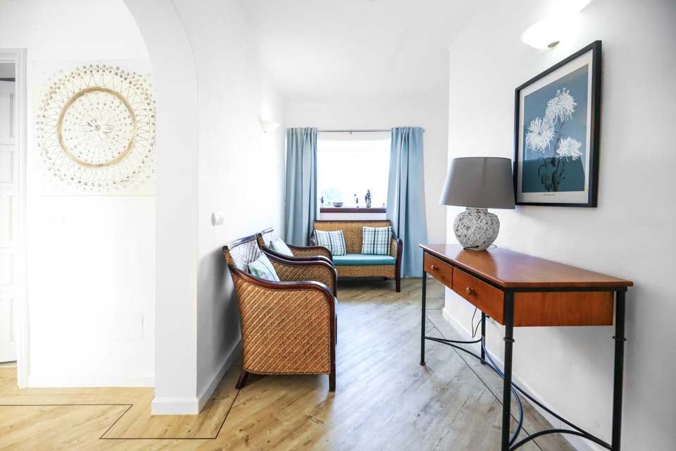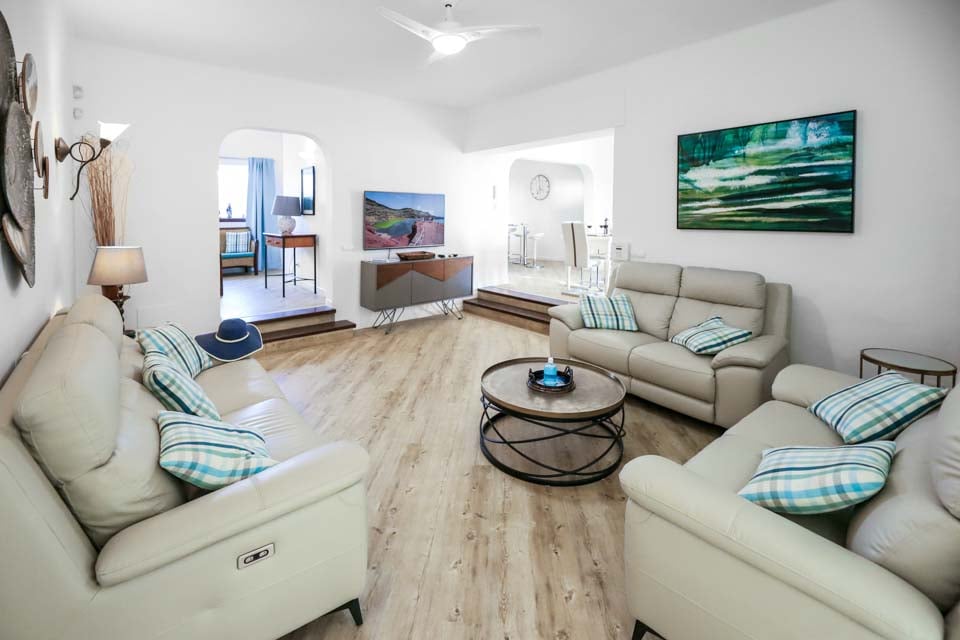 Fladskærms-tv, dvd-afspiller, musikanlæg, komfortabelt opholdsområde, spiseplads, døre til terrasse, døre til terrassehave, satellit-tv, satellit-tv med få engelske kanaler