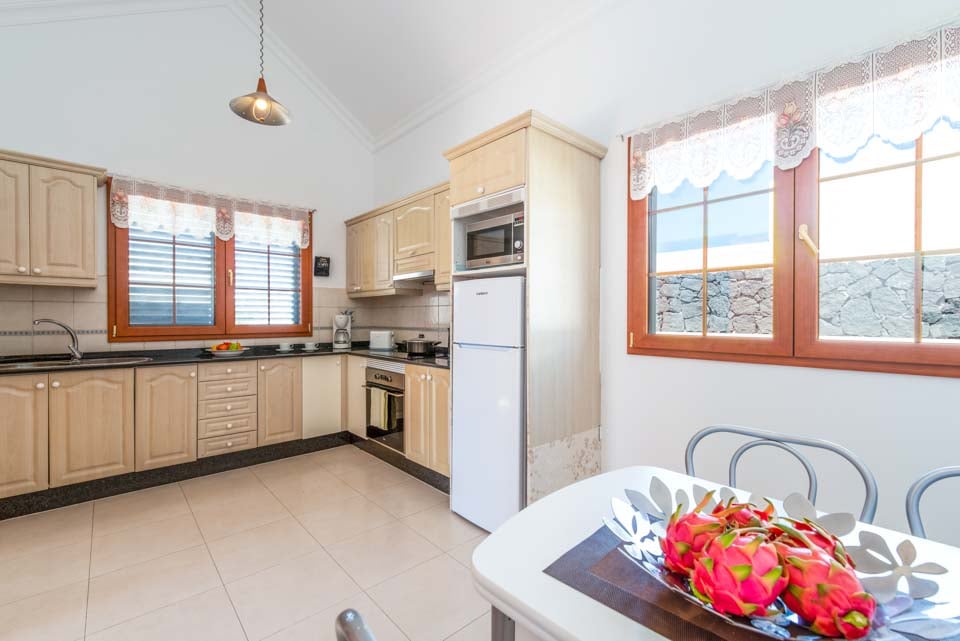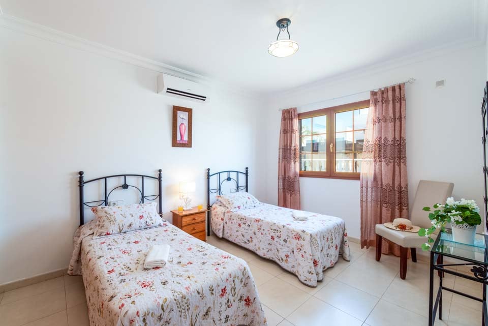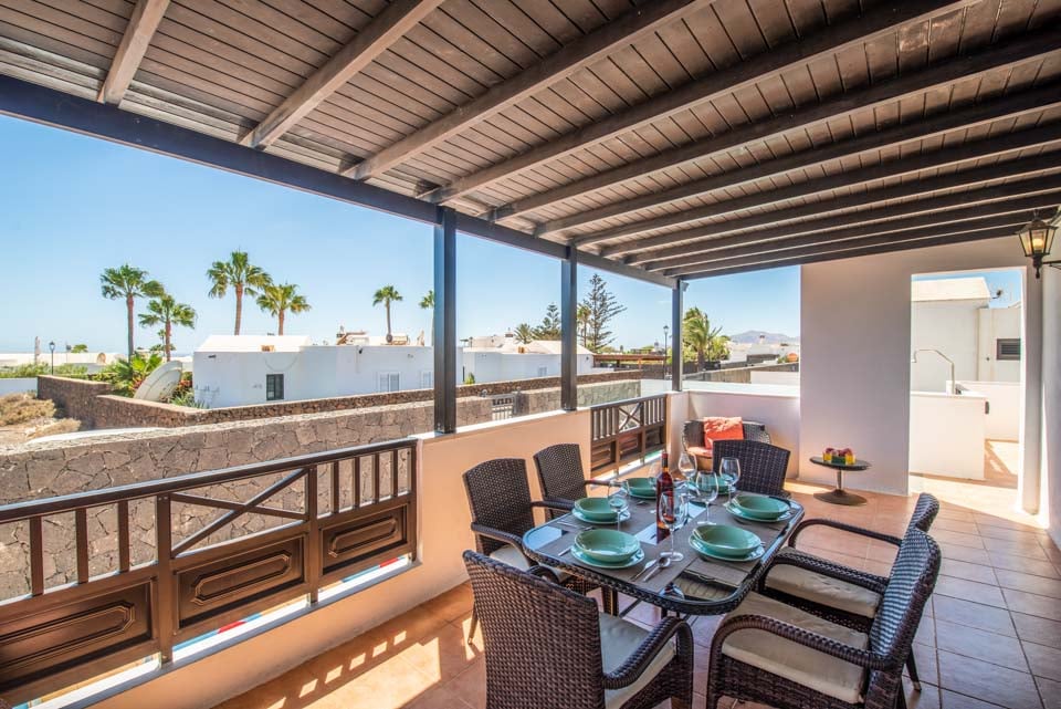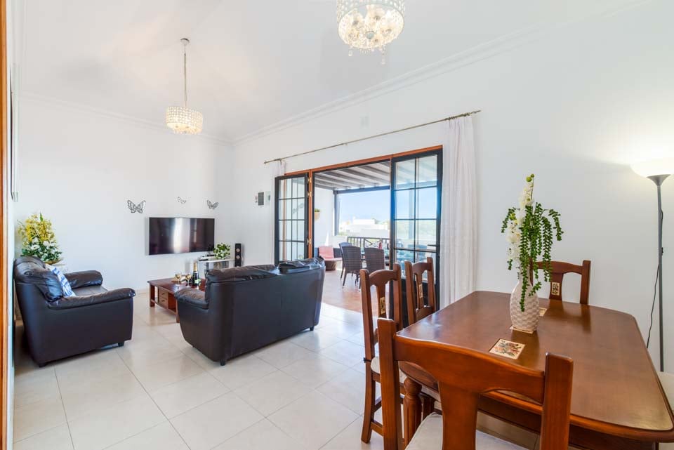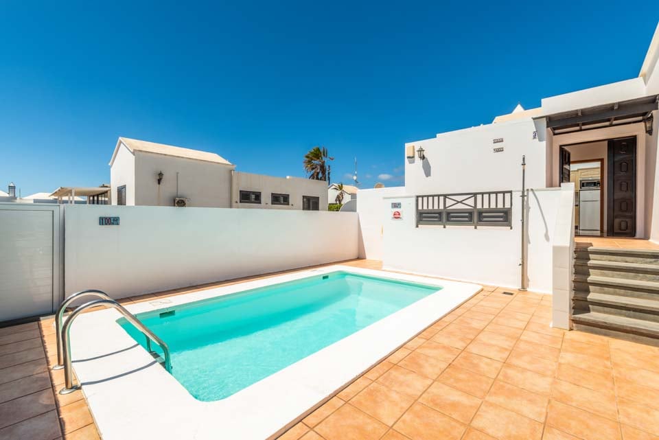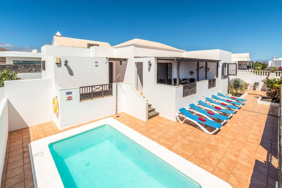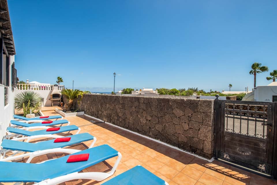 Villa Nancy ligger i udkanten af Lanzarotes imponerende Los Mojones-område i feriebyen Puerto del Carmen. En langsom gåtur på 15 minutter fører dig ind til hjertet af alt, hvad dette feriested tilbyder, med travle barer, souvenirbutikker og skønne strande kun et stenkast væk. Dette veletablerede feriested, beliggende på den sydlige centrale del af øen, ligger også kun 10 minutters kørsel fra Arrecife Lufthavn, hvilket gør Villa Nancy bekvemt placeret for dem, der ikke ønsker at rejse langt. Ligesom mange andre feriesteder var Puerto del Carmen oprindeligt en lille fiskerlandsby. Havnen ligger stadig i centrum med smukke både og fremragende restauranter med frisk fisk og skaldyr. Lad os vende vores opmærksomhed mod denne vidunderlige villa. Vi elskede udendørsspisningen under en overdækket terrasse med træbjælker, og den murstensbyggede grill er ideel til at lave mad i den friske atmosfære. Hvis du ikke har lyst til at lave mad, så slap af på en af de mange liggestole eller tag en dukkert i poolen og benyt dig af poolopvarmningen* (gratis november - maj). Fra den overdækkede terrasse fører terrassedøre dig ind i opholdsstuen med komfortable siddepladser, fladskærms-tv, britisk tv, dvd-afspiller og spisebord. Fra stuen kommer du til den lange gang, hvor du har adgang til alle andre rum. Der er et fuldt udstyret køkken, et bryggers med vaskemaskine og tre soveværelser. Det ene soveværelse er et med to enkeltsenge, mens de to andre er dobbeltværelser, og alle har aircondition for din komfort. Master-dobbeltværelset har et ensuite-badeværelse med to håndvaske, mens et separat familiebadeværelse deles mellem de resterende to værelser.