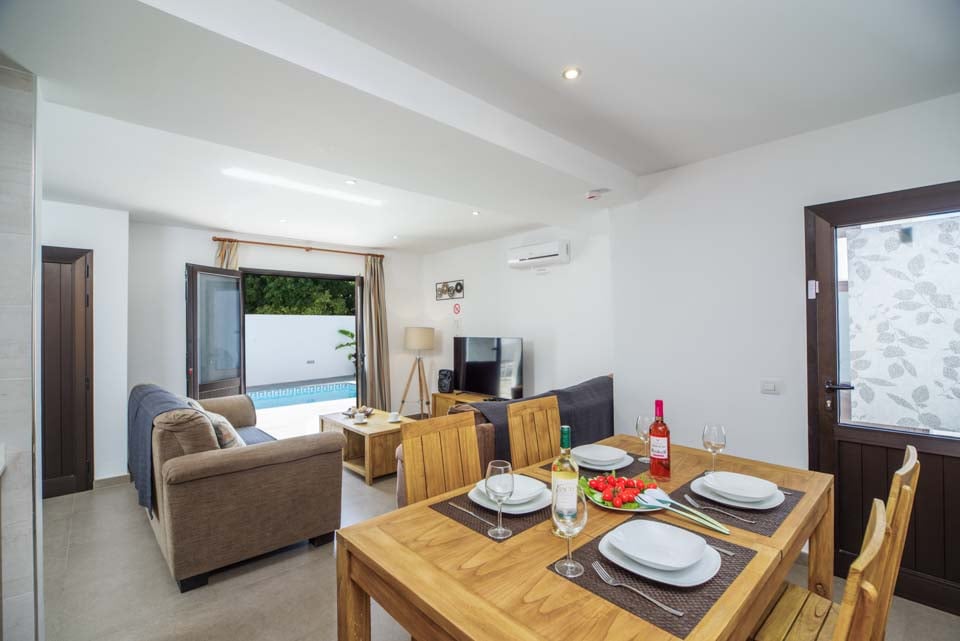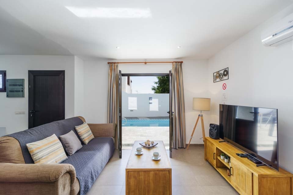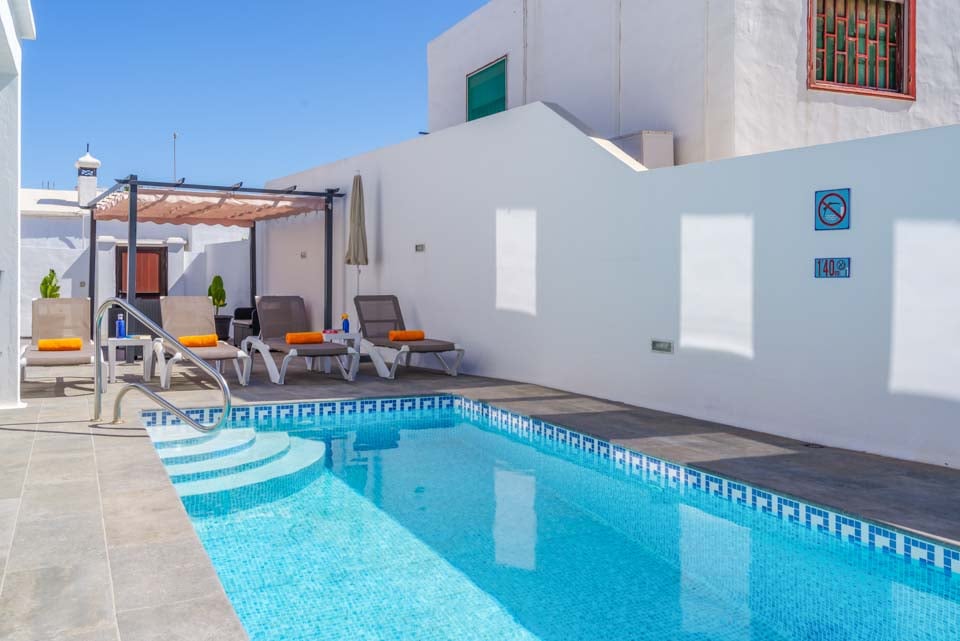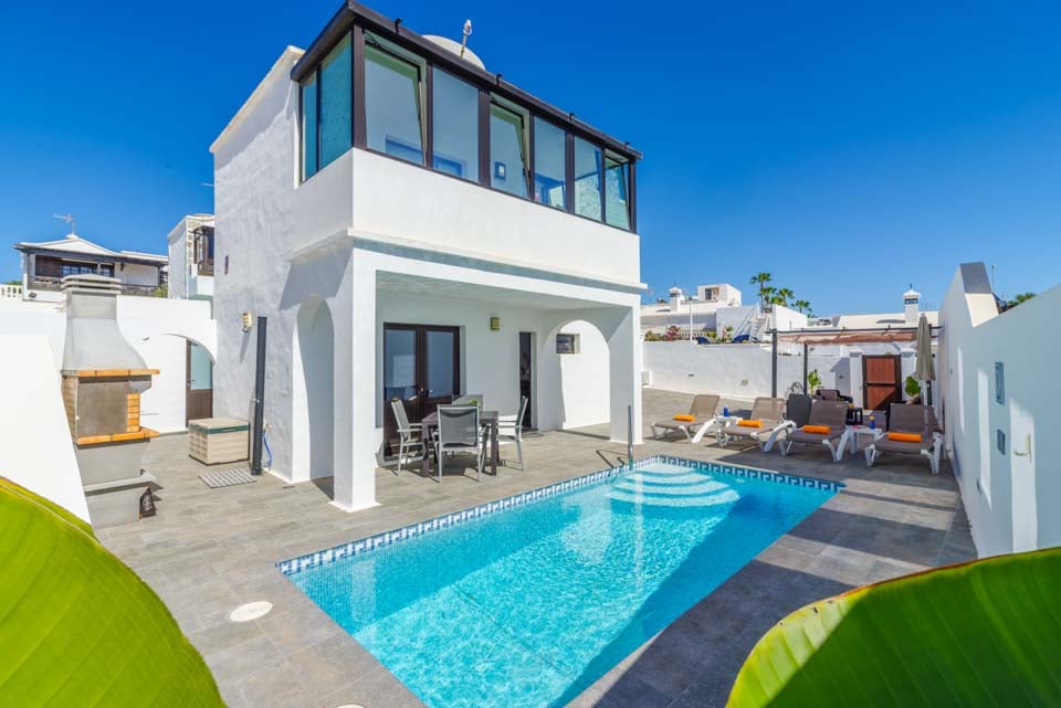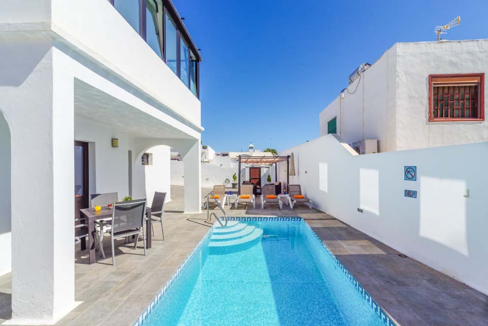 Med to soveværelser med aircondition er denne villa ideel til op til fire gæster. Begge soveværelser ligger på første sal og har adgang til en fælles vinterhave på første sal med fantastisk havudsigt over Atlanterhavet. Hvis man kigger godt efter, kan man endda se naboøen Fuerteventura. Villaen er fuldt udstyret med alle de apparater, man kan forvente på en ferie med selvhusholdning, herunder vaskemaskine, opvaskemaskine og smart-tv.