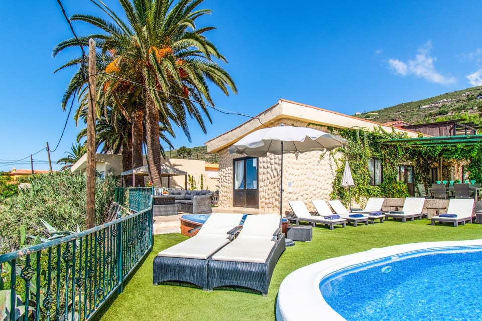 Den smukke Villa Isabel Sol ligger højt oppe i bakkerne på Tenerifes vestkyst. Uden tvivl er udsigten fra terrassen betagende, med havudsigt i det fjerne og det rustikke landskab synligt fra alle vinkler. Et spisebord står på terrassen og danner en fantastisk baggrund for en frokost under åben himmel. Lyst til en dukkert? Så behøver du ikke lede længere. Villa Isabel Sol kan prale af en privat opvarmet pool*, der måler imponerende 9 meter og et pragtfuldt spabad*. Del et glas bobler med venner og familie, mens I snakker om dagen. Hvad kunne være bedre?
