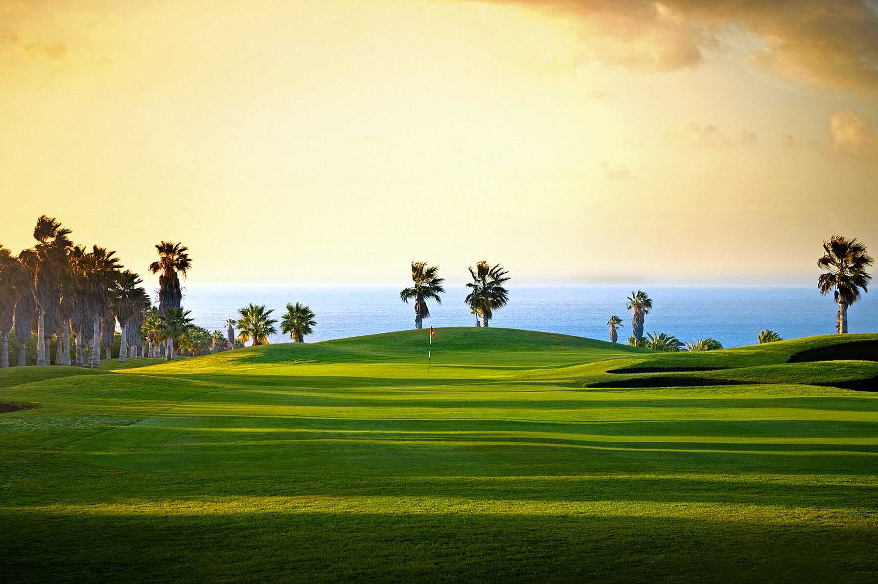 Golf del Sur - Tenerifes paradis for golf og golfelskere! Her vil du blive mødt af et frodigt landskab med veje omkranset af palmer, farverige planter og spektakulære golfbaner, der snor sig mellem kløfter, vulkansand og udsigt over havet. Golfbanerne på Tenerife tiltrækker både begyndere og professionelle året rundt. Der er dog så meget mere end bare golfbaner. Her findes også restauranter og butikker, omend i mindre skala end i de nærliggende større feriesteder Los Cristianos og Playa de las Americas.