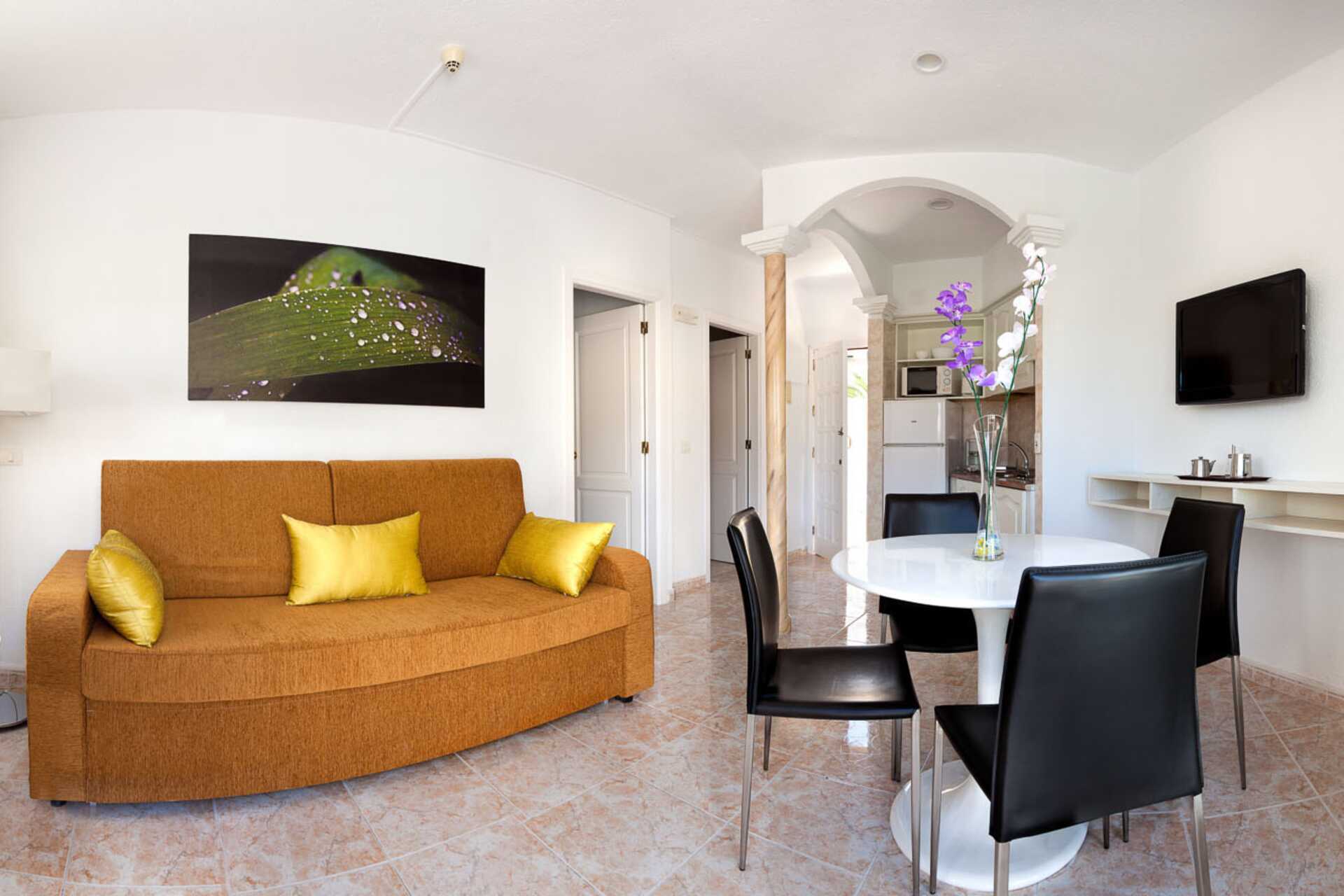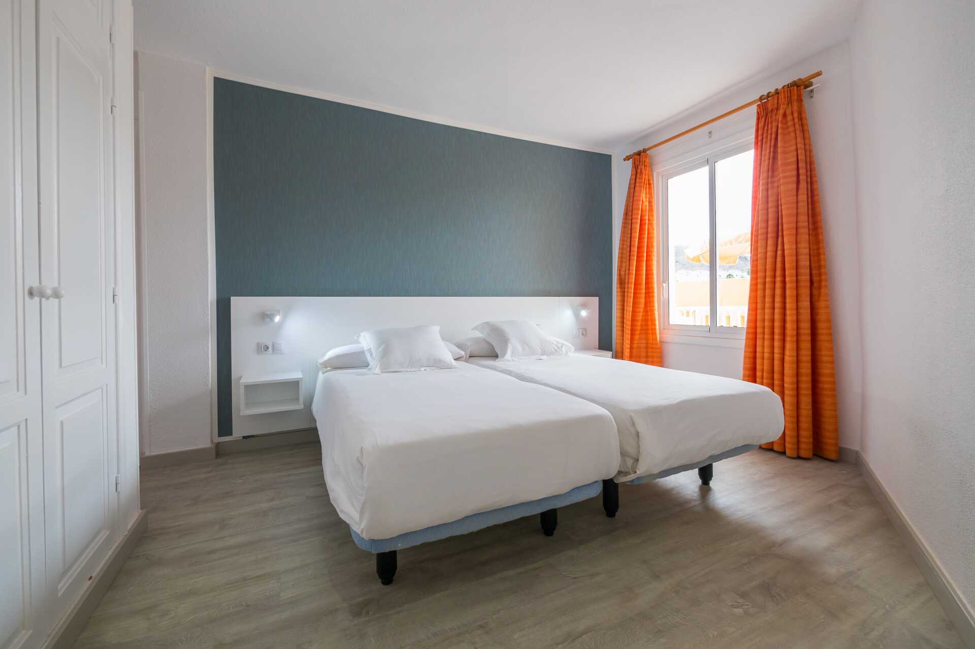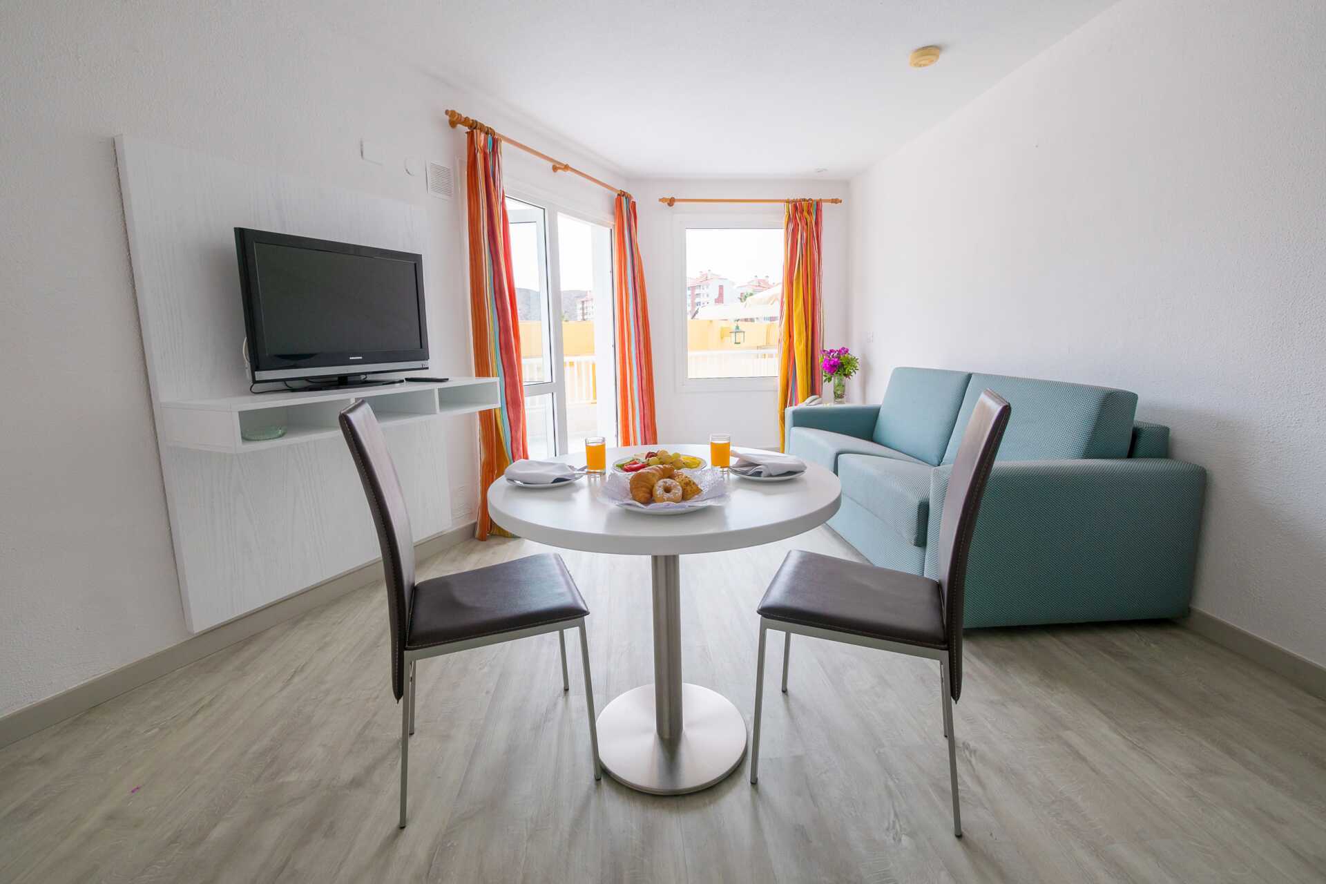 3-værelses lejligheder med balkon eller terrasse. To soveværelser og kombineret opholdsrum/minikøkken. To enkeltsenge i hvert soveværelse. Mulighed for ekstra opredninger i sovesofa. Minikøkken med køleskab, kogeplader, mikrobølgeovn, el-kedel, kaffemaskine, brødrister og enkelt køkkenudstyr. Tv med internationale kanaler. Gratis wifi. Deponering mod betaling. Badeværelse med bruser og toilet. Rengøring 3 gange om ugen.