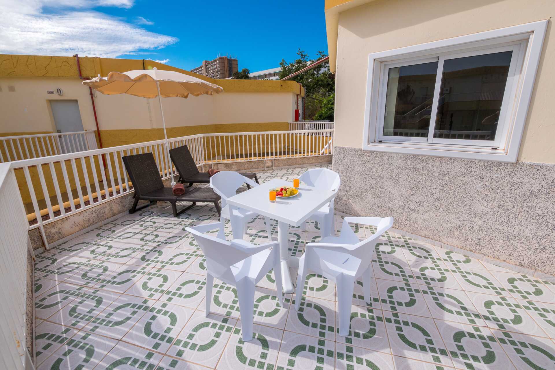 2-værelses lejlighed deluxe med stor balkon eller terrasse. Der er to solstole på udepladsen. Soveværelse og kombineret opholdsrum med minikøkken. To enkeltsenge. Mulighed for ekstra opredninger i sovesofa. Minikøkken med køleskab, kogeplader, mikrobølgeovn, el-kedel, kaffemaskine, brødrister og enkelt køkkenudstyr. Gratis wifi og deponering. Aircondition mod betaling. Tv med internationale kanaler. Badeværelse med bruser og toilet. Rengøring 3 gange om ugen.