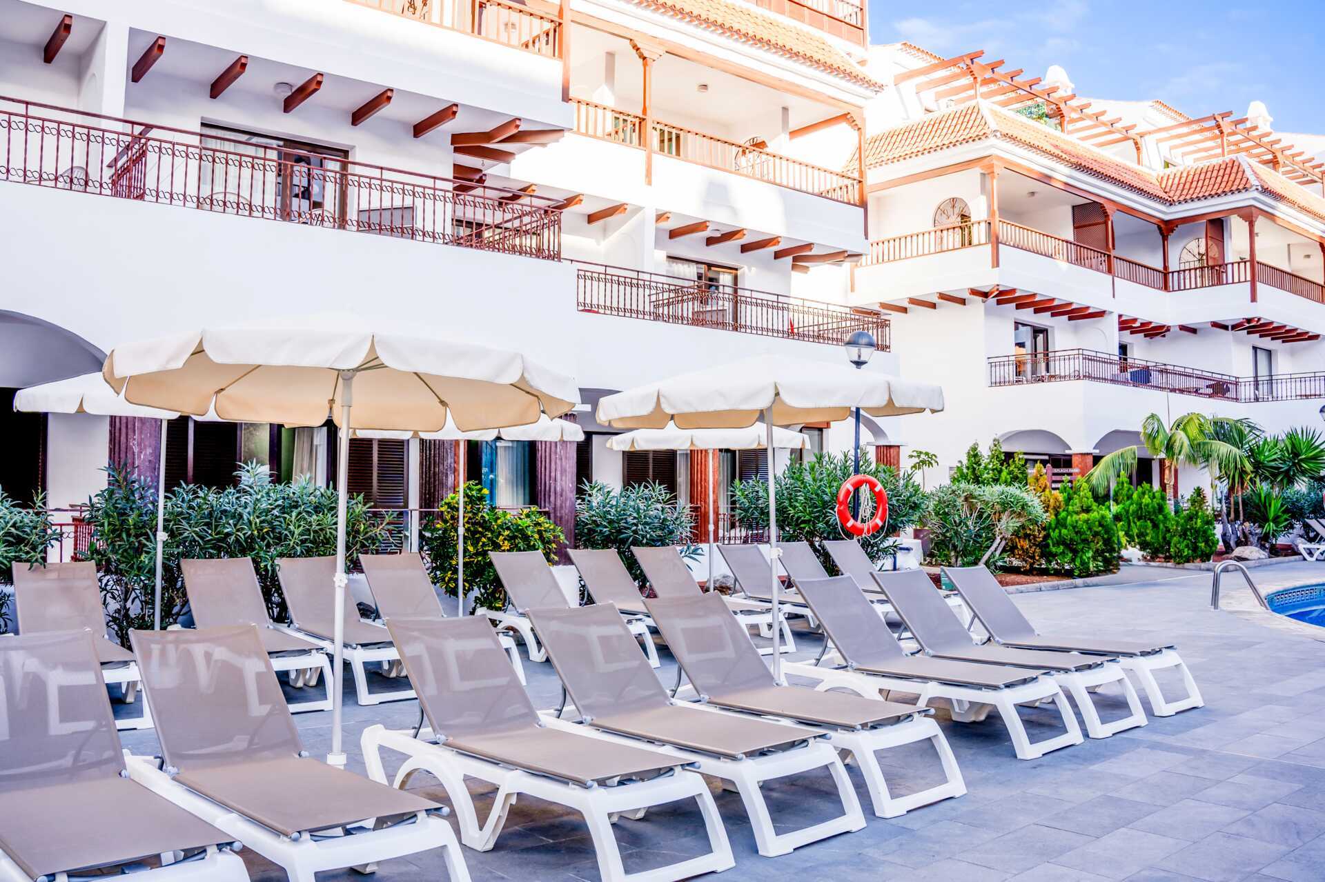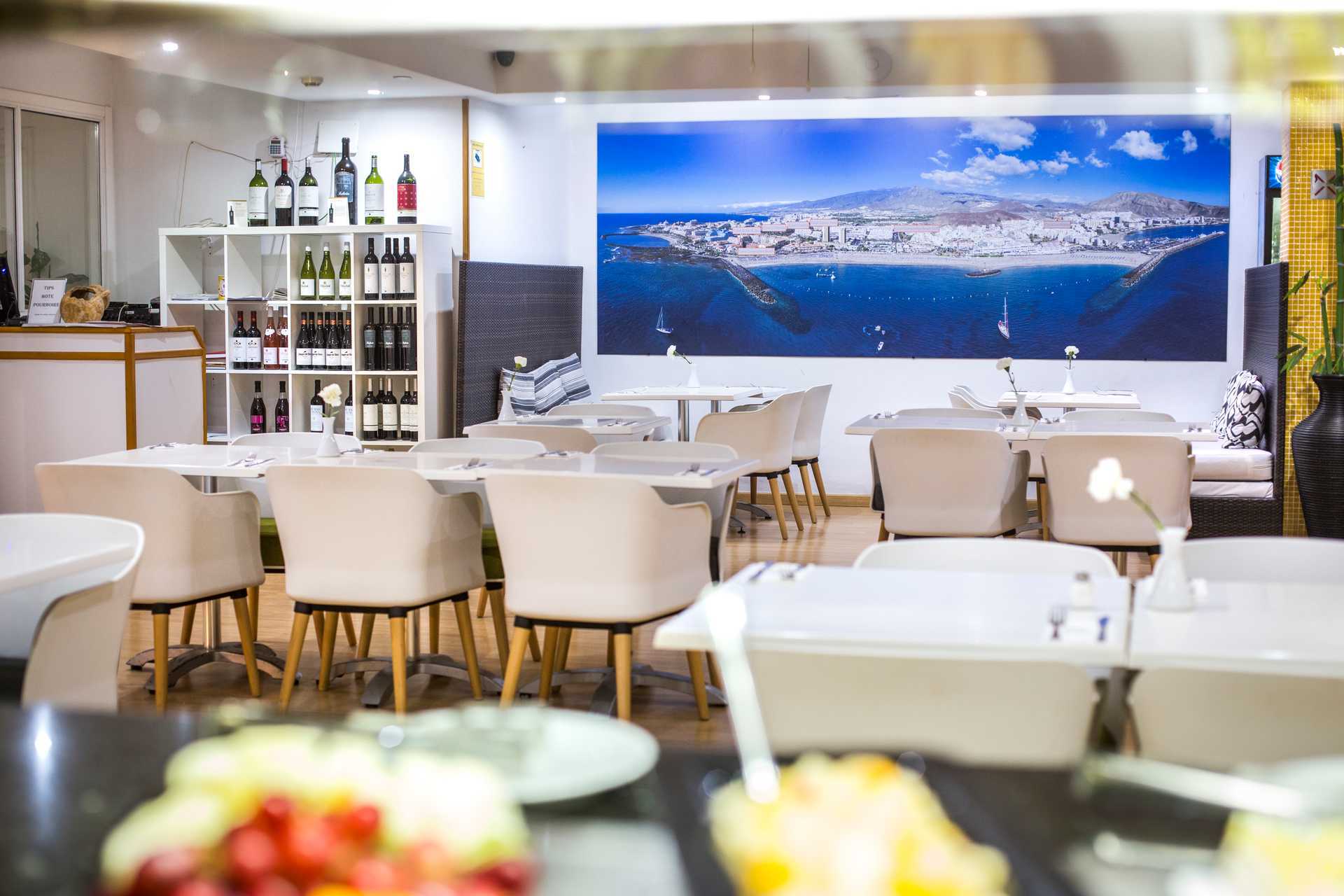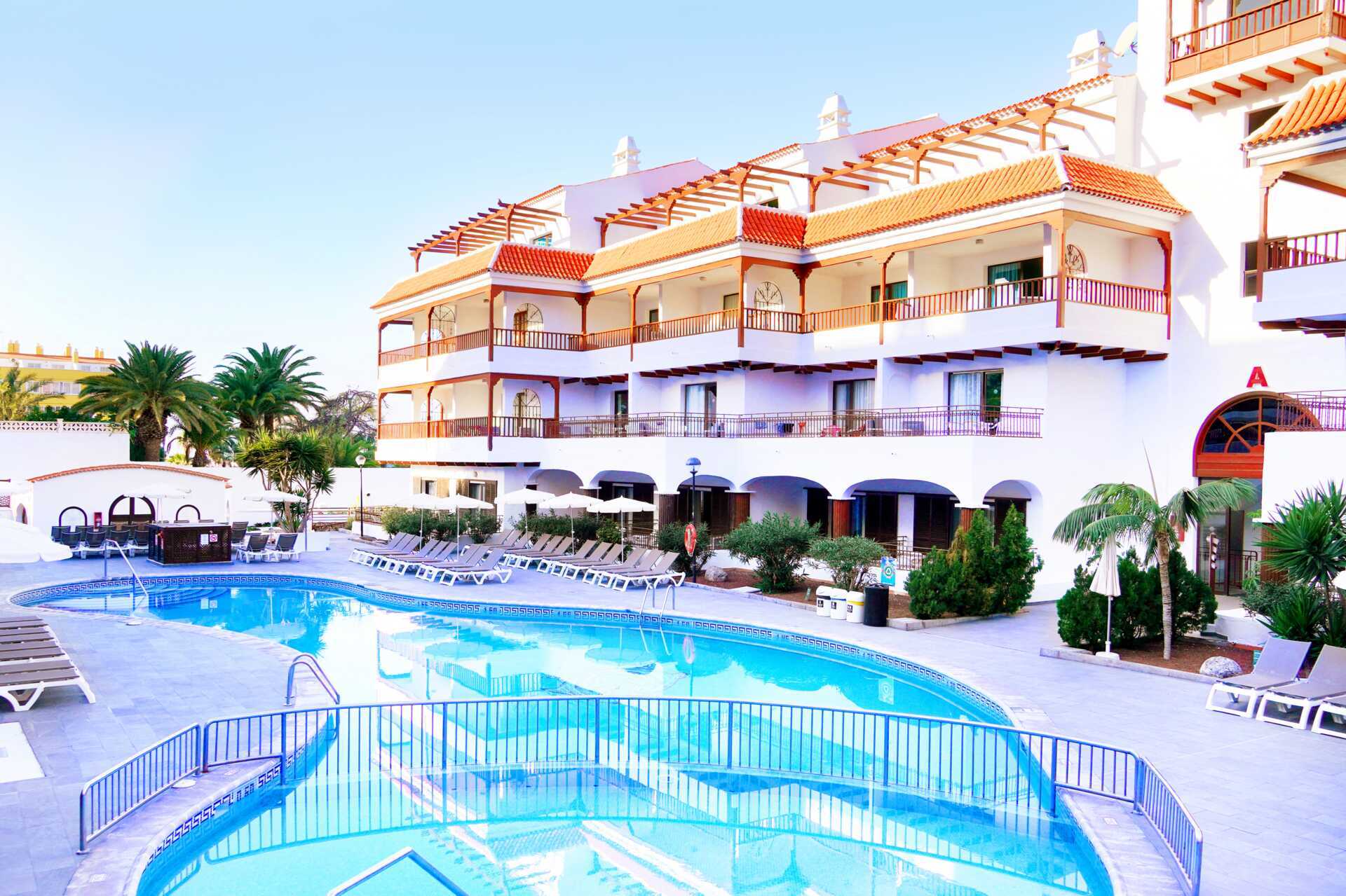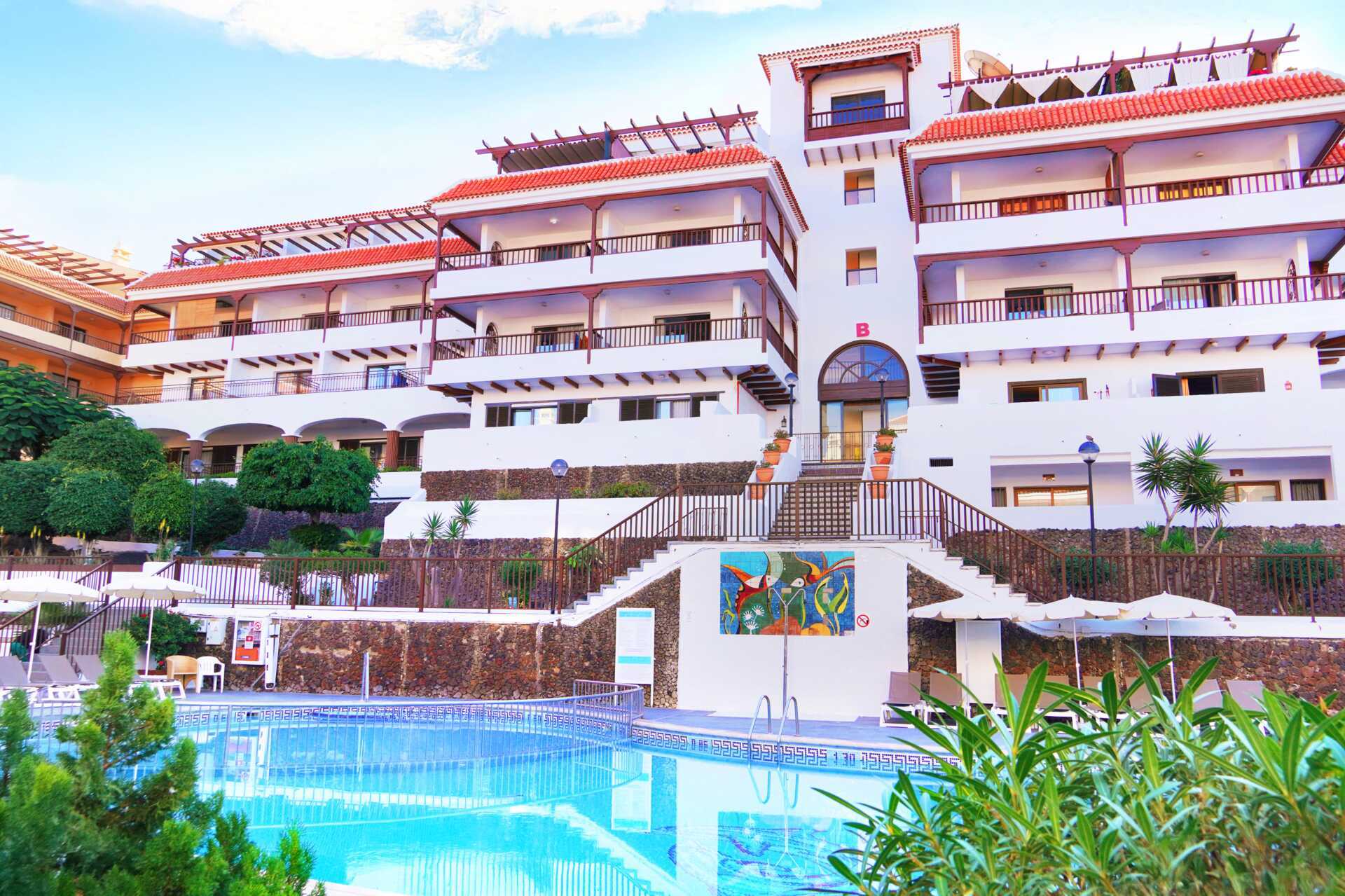 Centrum af Los Cristianos er inden for gåafstand og har et dejligt udvalg af restauranter og en lang strandpromenade. Trapper og niveauforskelle i og uden for hotellet. Alle bygninger har elevator, men fra bygningerne er der trapper til poolbar, poolområde, reception og restaurant. Trafikken på hotellet kan indimellem opfattes som forstyrrende.