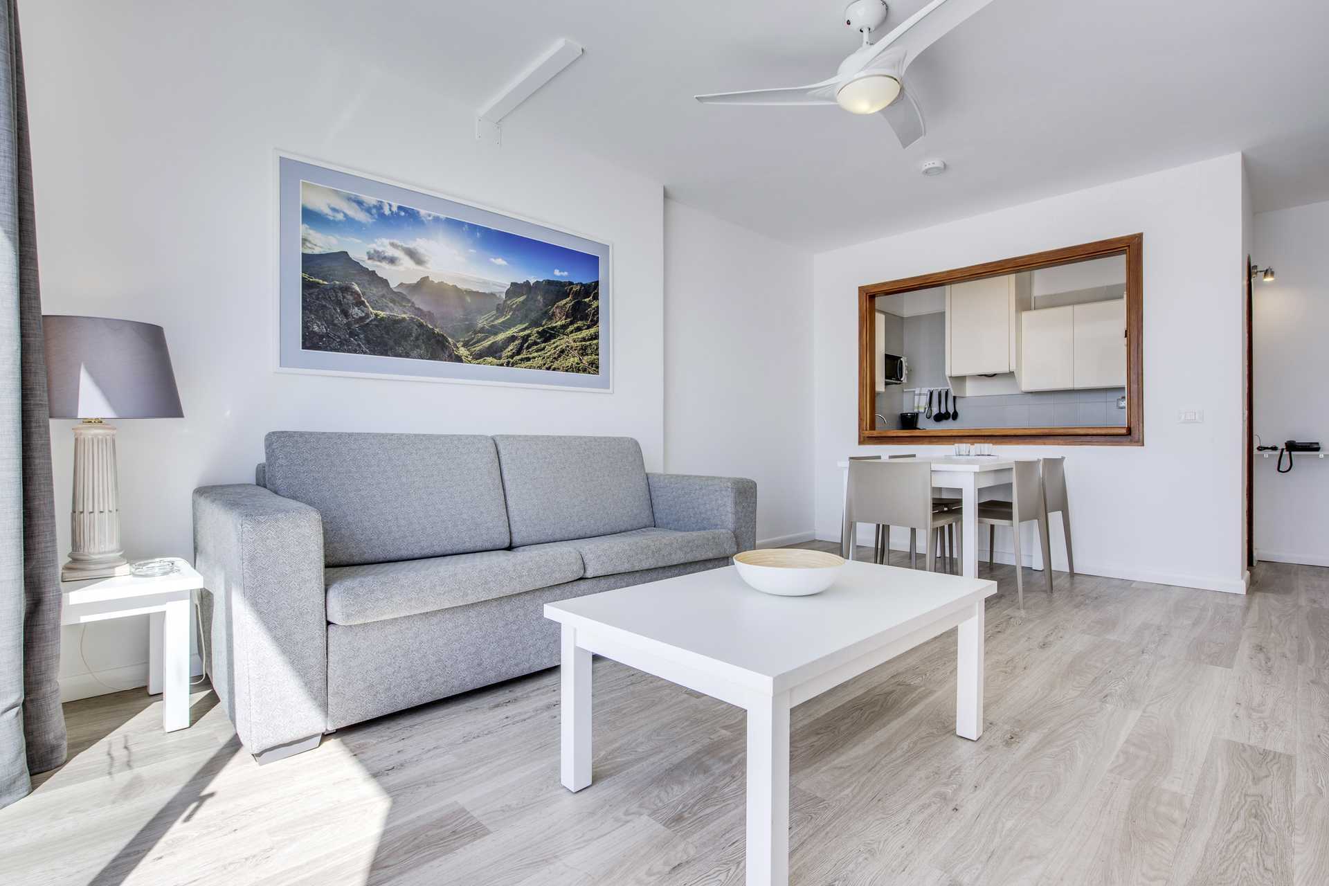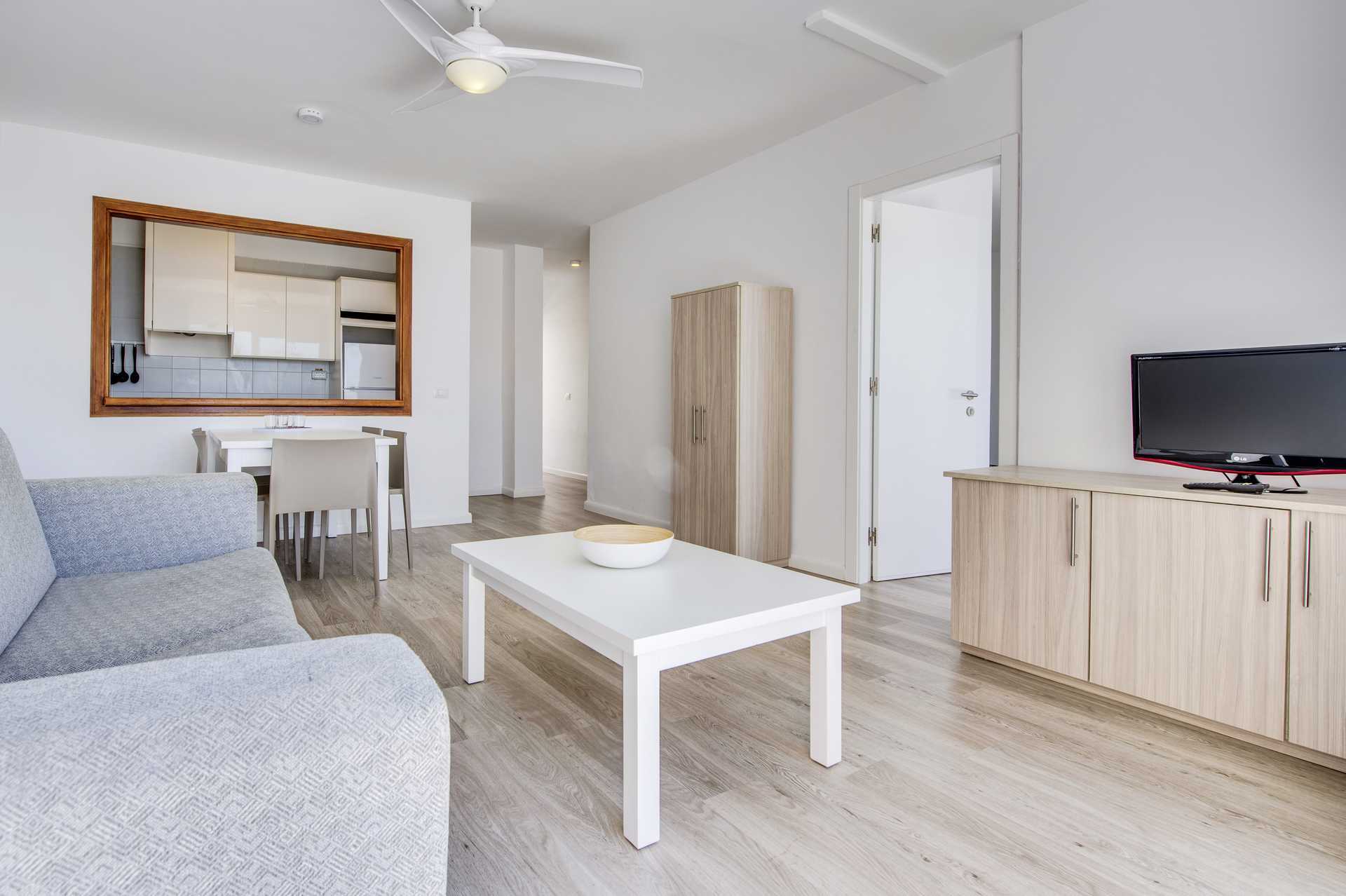 3-værelses lejlighed med balkon, nogle med delvis havudsigt. Lejlighederne varierer i størrelse og indretning. To soveværelser og kombineret opholdsrum med minikøkken. Et soveværelse med dobbeltseng og et med to enkeltsenge. Mulighed for ekstra opredning i sovesofa. Minikøkken med køleskab, kogeplader, mikroovn, kaffemaskine, el-kedel, brødrister og enkelt køkkenudstyr. Gratis wifi og deponering. Loftsvifte i alle værelser. Tv med internationale kanaler. Strygejern og strygebræt. Hårtørrer. Badeværelse med bruser og toilet. Rengøring 3 gange om ugen.