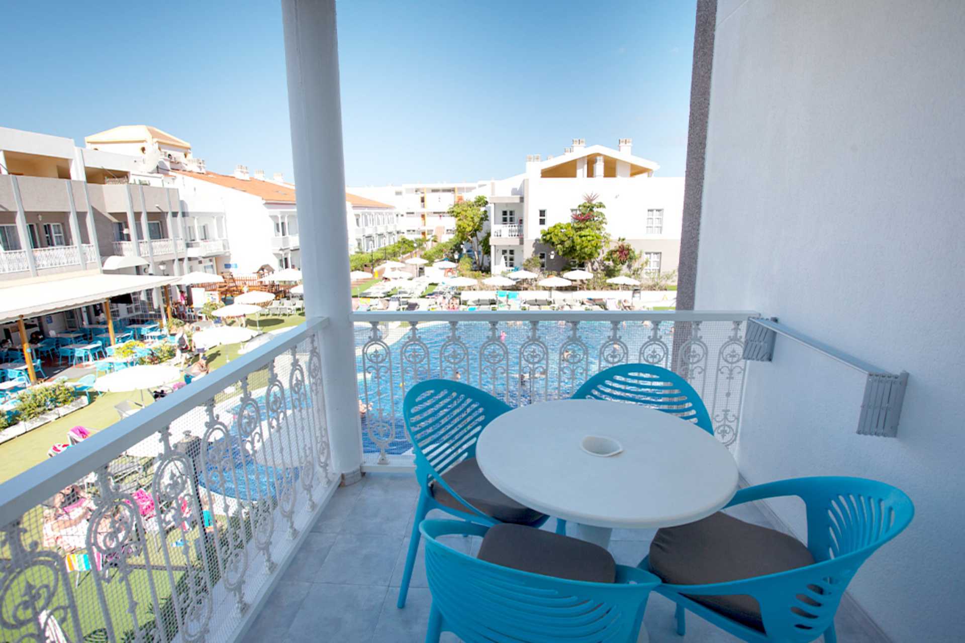 Hotellet har et poolområde med en pool, en børnepool og en kombineret bar/poolbar. Begge pools er opvarmet om vinteren til mindst 22 grader. Pooltemperaturen kan dog falde et par grader om morgenen, aftenen og i dårligt vejr. Solstole og parasoller. Poolhåndklæder er tilgængelige mod betaling og et depositum. Der er også en solterrasse på et af tagene for voksne. Sandstranden Las Vistas ligger lidt over en kilometer væk, hvor solstole og parasoller kan lejes.