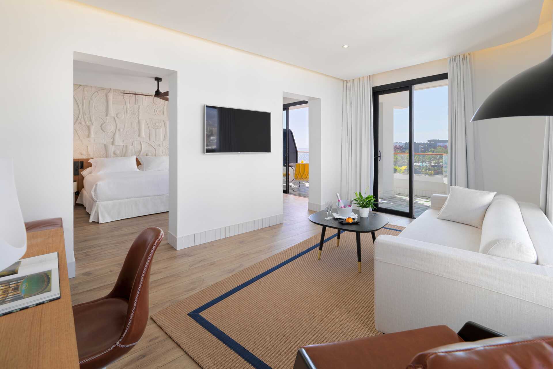 Junior-suiter med balkon. Junior-suiten består af et soveværelse og et opholdsrum i åbent plan. En dobbeltseng eller to enkeltsenge. Mulighed for ekstra opredning i sovesofa. Gratis wifi, aircondition og deponering. Loftsvifte. Minibar - genopfyldes hver anden dag. Nespresso-maskine - kapsler inkluderet og genopfyldes dagligt. El-kedel. Tv med internationale kanaler og Chromecast. Badekåber og tøfler. Hårtørrer. Badeværelse med bruser og toilet. Rengøring 5 gange om ugen.