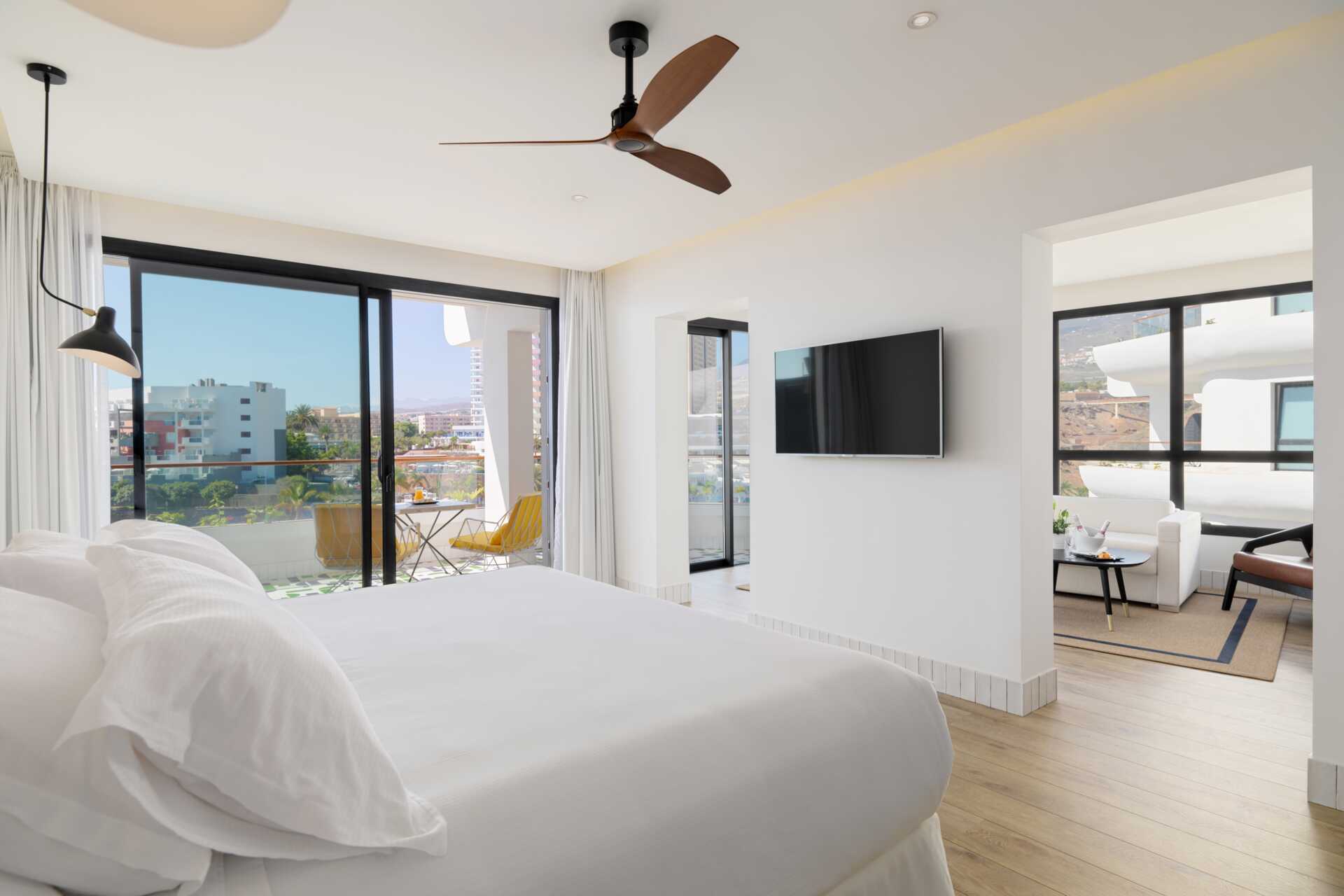 Dobbeltværelser med balkon eller terrasse, nogle med havudsigt og nogle med delvis havudsigt. En dobbeltseng eller to enkeltsenge. Mulighed for ekstra opredning i sovesofa. Gratis wifi, aircondition og deponering. Loftsvifte. Minibar - genopfyldes hver anden dag. Nespresso kaffemaskine - kapsler indgår og genopfyldes hver dag. El-kedel. Tv med internationale kanaler og Chromecast. Badekåber og tøfler. Hårtørrer. Badeværelse med bruser og toilet. Rengøring 5 gange om ugen. Aldersgrænsen for at bo på hotellet er 12 år.