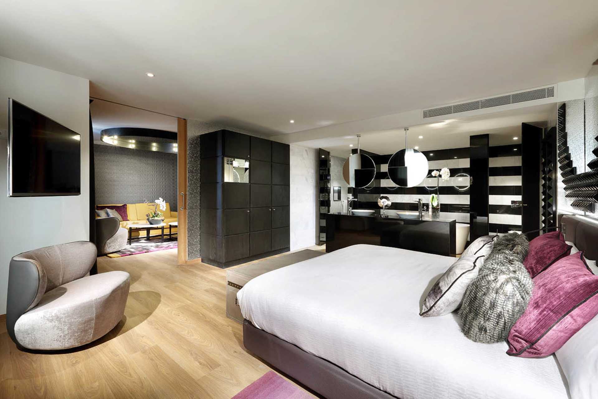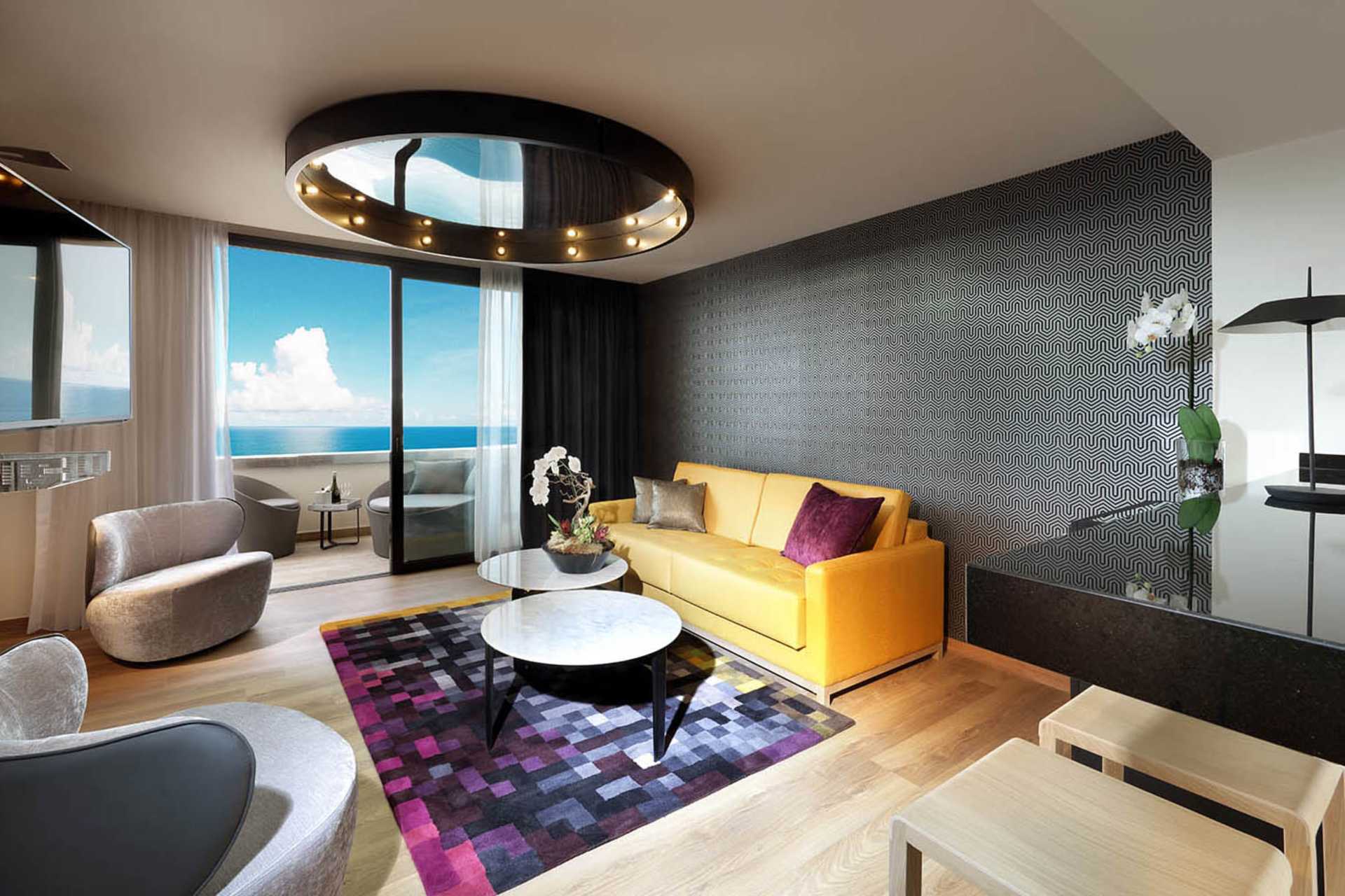 Suiter med balkon eller terrasse og havudsigt. Suiten består af et soveværelse og et opholdsrum. En dobbeltseng eller to enkeltsenge, hvor du sover godt mellem Sleep-Like-A-Rock ® lagner. Mulighed for ekstra opredninger i sovesofa. Gratis wifi, aircondition og deponering. Vinkøler. Minibar mod betaling. Nespresso kaffemaskine - kapsler indgår og genopfyldes hver dag. Tv med internationale kanaler. Spilkonsol. Badekåber. Hårtørrer. Rock Spa ® produkter. Et badeværelse med bruser og spabad og et mindre badeværelse med toilet. Rengøring 7 gange om ugen.