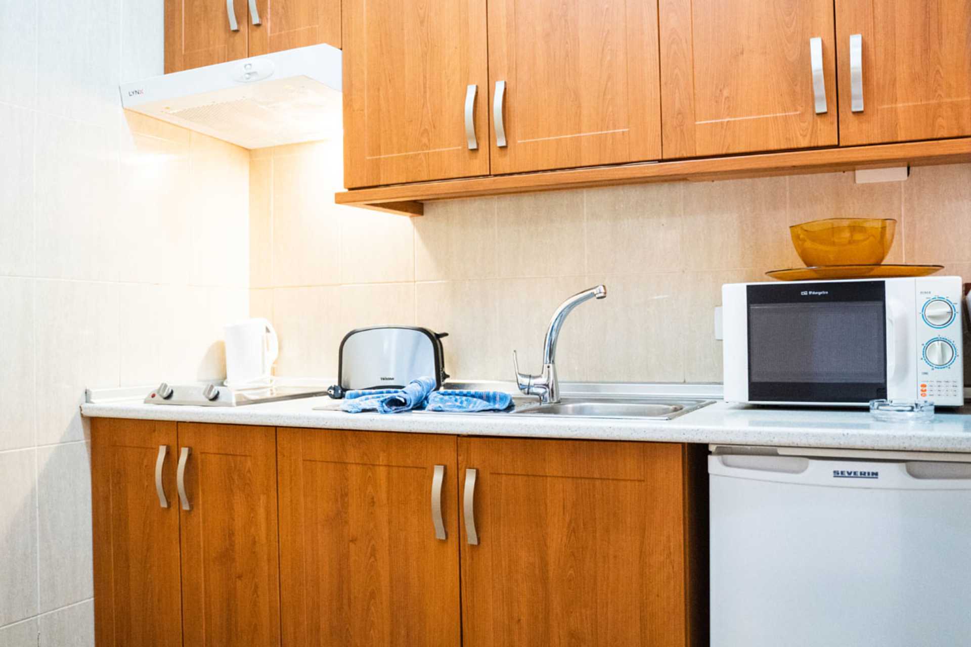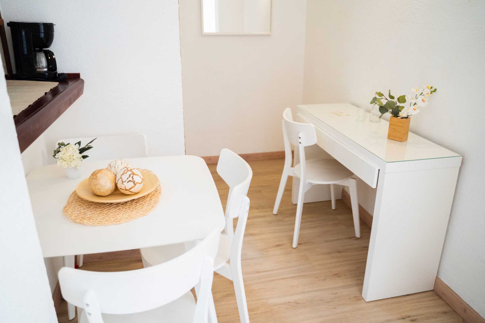 1-værelses lejligheder med terrasse og pooludsigt. Kombineret soveværelse og opholdsrum med minikøkken. To enkeltsenge. Mulighed for ekstra opredning i sovesofa. Minikøkken med kogeplader, køleskab, mikrobølgeovn, el-kedel og enkelt køkkenudstyr. Gratis wifi. Deponering mod betaling. Tv med internationale kanaler. Badeværelse med bruser og toilet. Rengøring 5 gange om ugen.