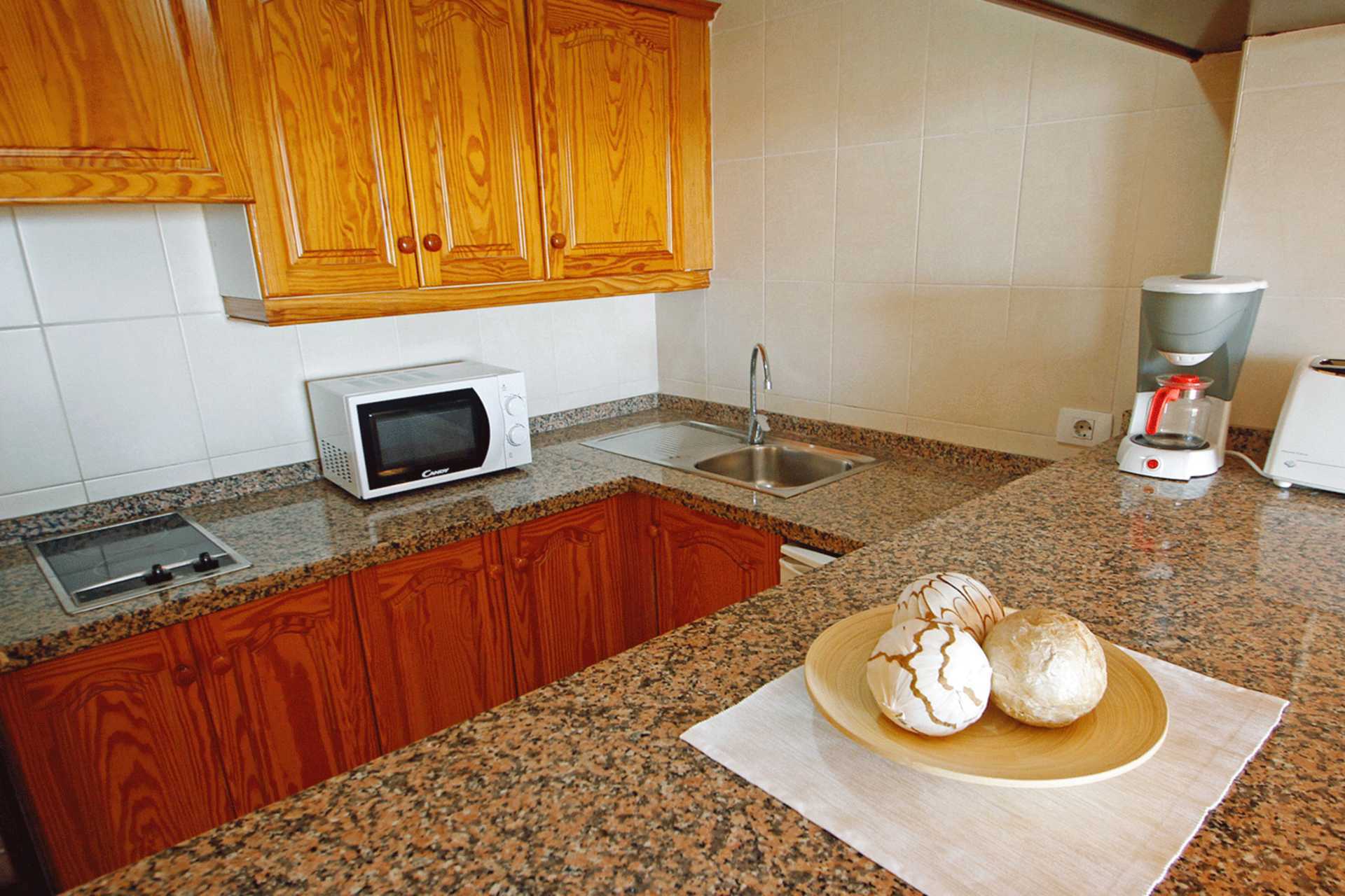 2-værelses lejlighed med balkon, nogle med delvis havudsigt eller med pooludsigt. Soveværelse og kombineret opholdsrum/minikøkken. To enkeltsenge. Mulighed for ekstra opredning i sovesofa. Minikøkken med kogeplader, køleskab, mikrobølgeovn, el-kedel og enkelt køkkenudstyr. Gratis wifi. Deponering mod betaling. Tv med internationale kanaler. Badeværelse med bruser og toilet. Rengøring 5 gange om ugen.