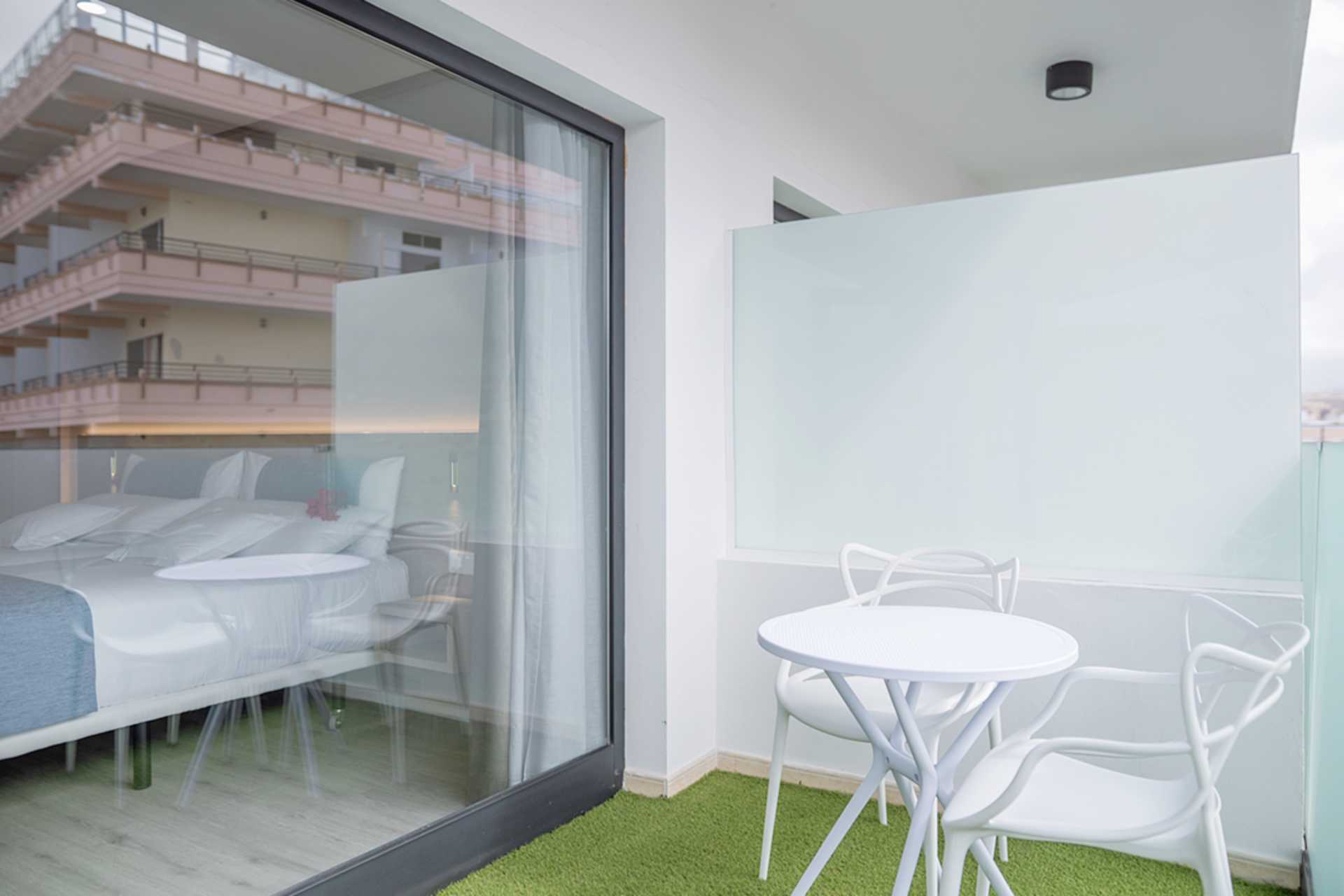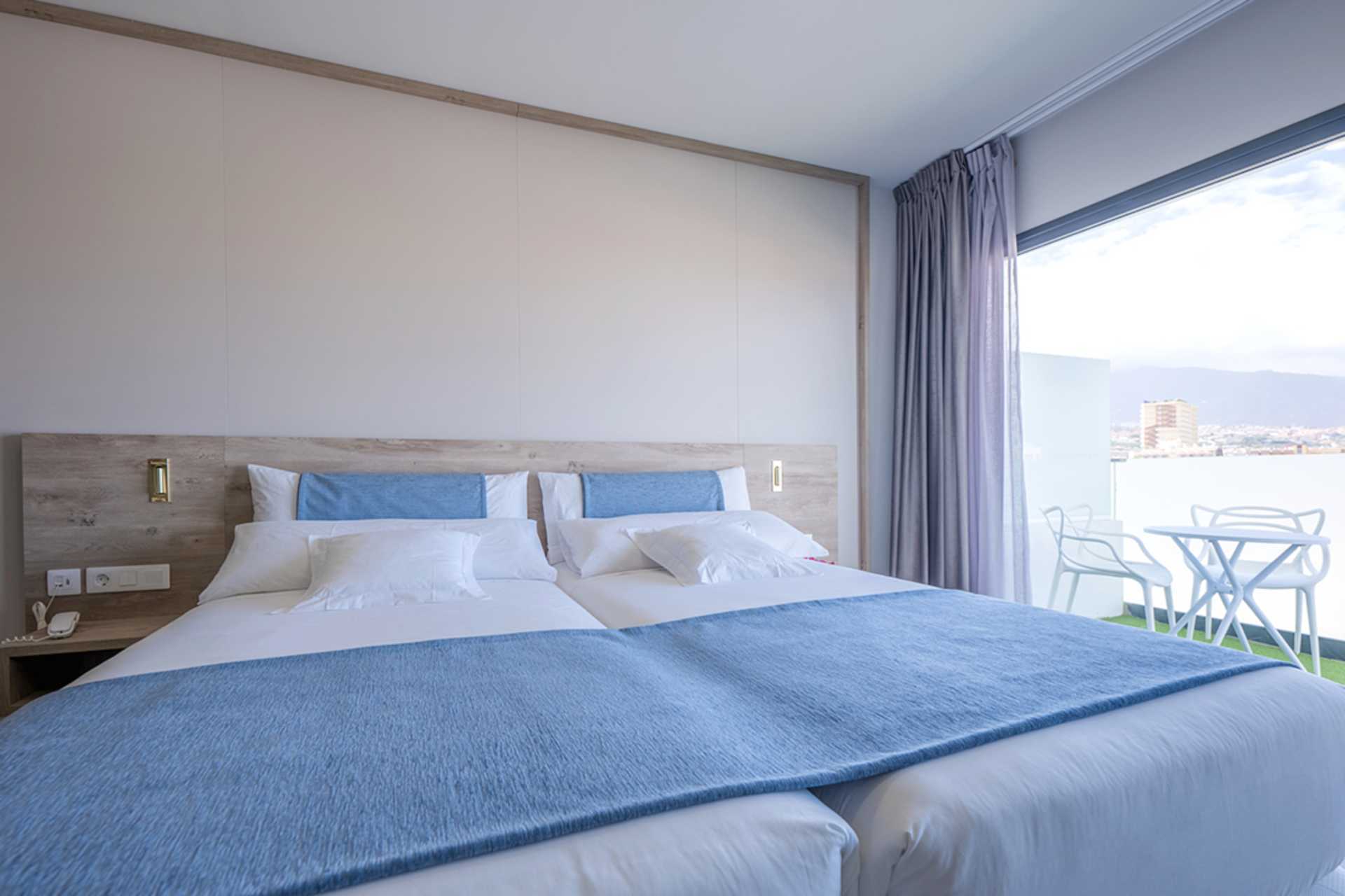 Dobbeltværelser med balkon og udsigt mod Teide. To enkeltsenge. Gratis wifi, aircondition og deponering. Minibar. El-kedel. Tv med internationale kanaler. Hårtørrer. Åben planløsning til badeværelse med matteret glasdøre bruser og toilet. Rengøring 7 gange om ugen.