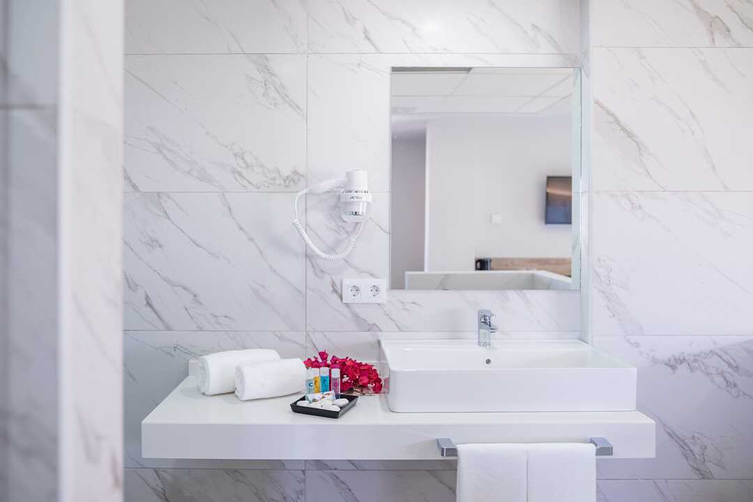 Dobbeltværelser med balkon og havudsigt. To enkeltsenge. Gratis wifi, aircondition og deponering. Minibar. El-kedel. Tv med internationale kanaler. Hårtørrer. Åben planløsning til badeværelse med matteret glasdøre til bruser og toilet. Rengøring 7 gange om ugen.