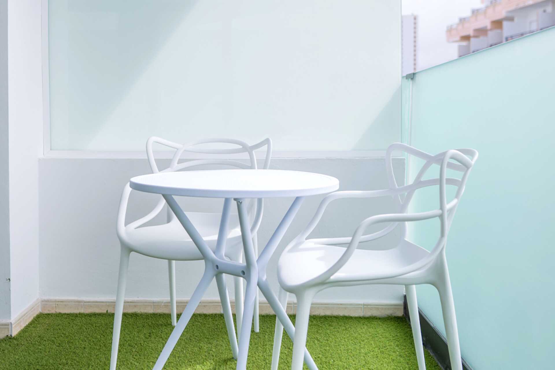 Dobbeltværelser med balkon. To enkeltsenge. Gratis wifi, aircondition og deponering. Minibar. El-kedel. Tv med internationale kanaler. Hårtørrer. Åben planløsning til badeværelse med matteret glasdøre til bruser og toilet. Rengøring 7 gange om ugen.