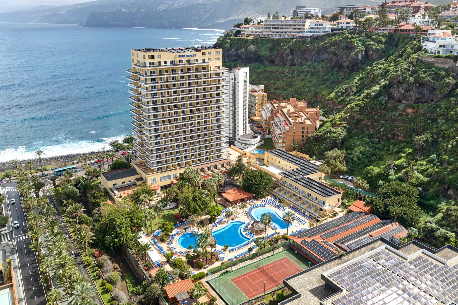 2026-03-22Hotellet ligger tæt på byen med udsigt til havet og pool området.