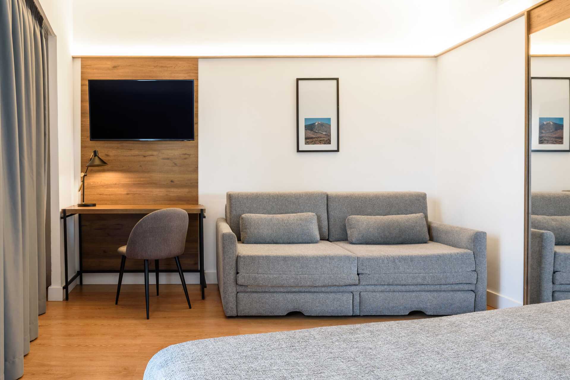 Junior-suiter med balkon. En dobbeltseng eller to enkeltsenge. Mulighed for ekstra opredninger i sovesofa. Gratis wifi og aircondition. Deponering mod betaling. Køleskab. Tv med internationale kanaler. Tøfler. Hårtørrer. Badeværelse med bruser og toilet. Rengøring 5 gange om ugen.