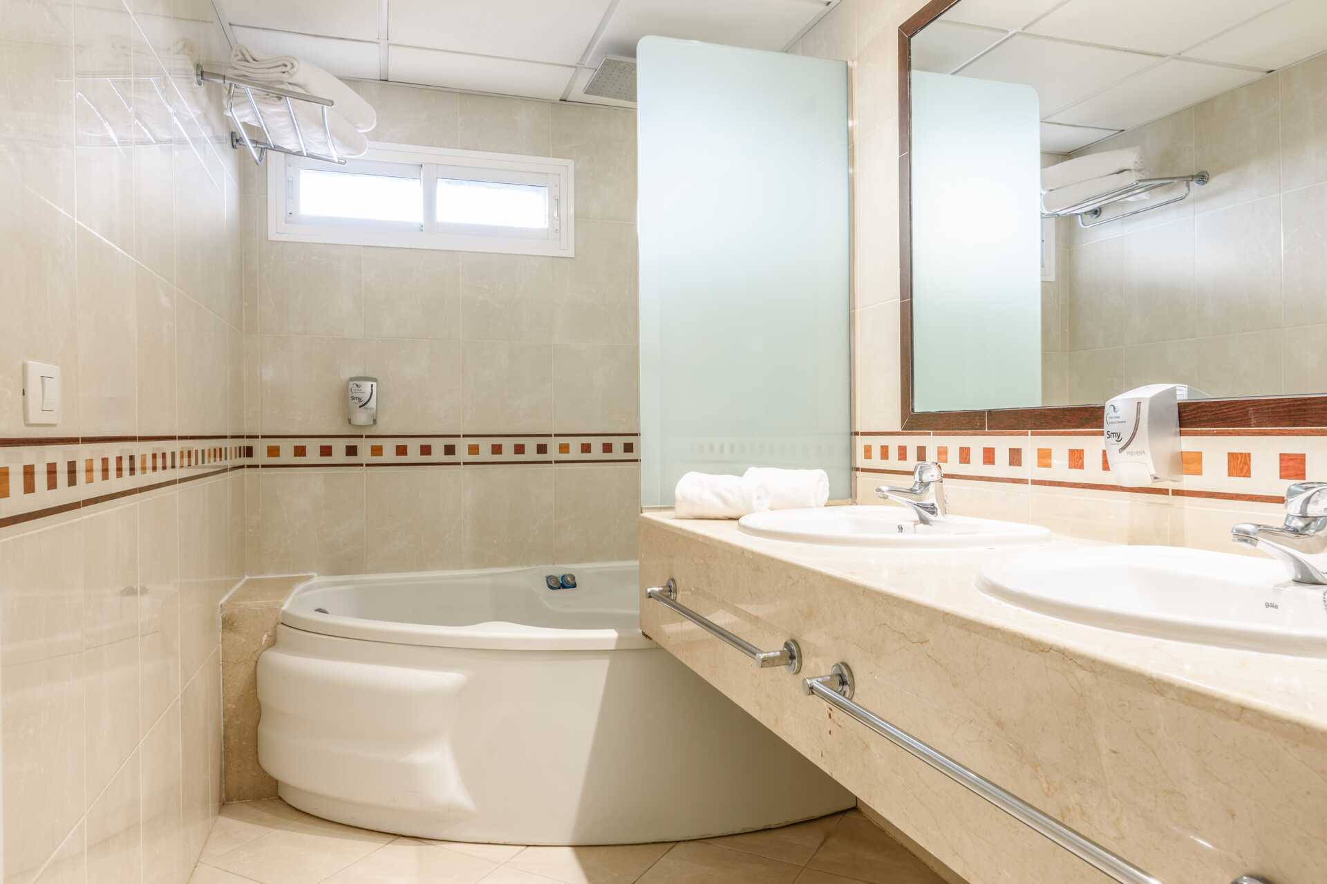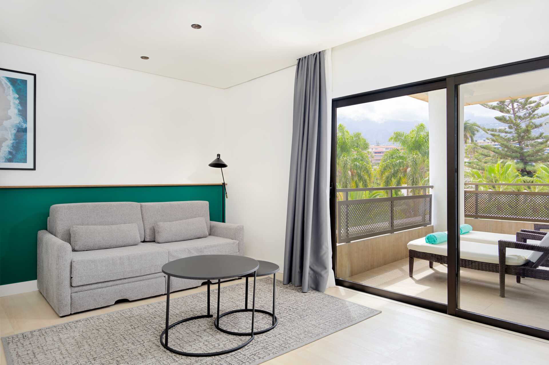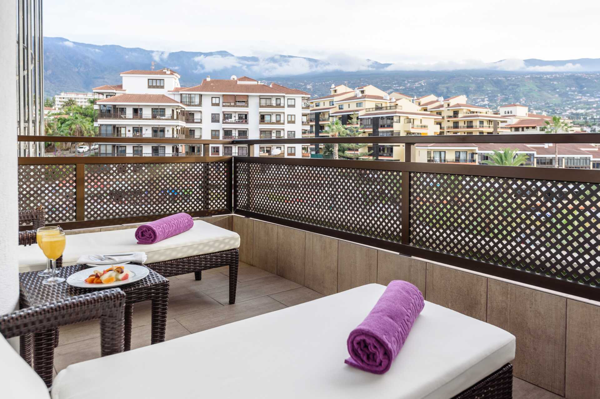 Suite med balkon. Suiten består af et soveværelse og et opholdsrum samt en balkon med solstole. En dobbeltseng. Mulighed for ekstra opredninger i sovesofa. Gratis wifi og aircondition. Deponering mod betaling. Køleskab. Badekåber og tøfler. Hårtørrer. Badeværelse med jacuzzi og toilet. Rengøring 5 gange om ugen.