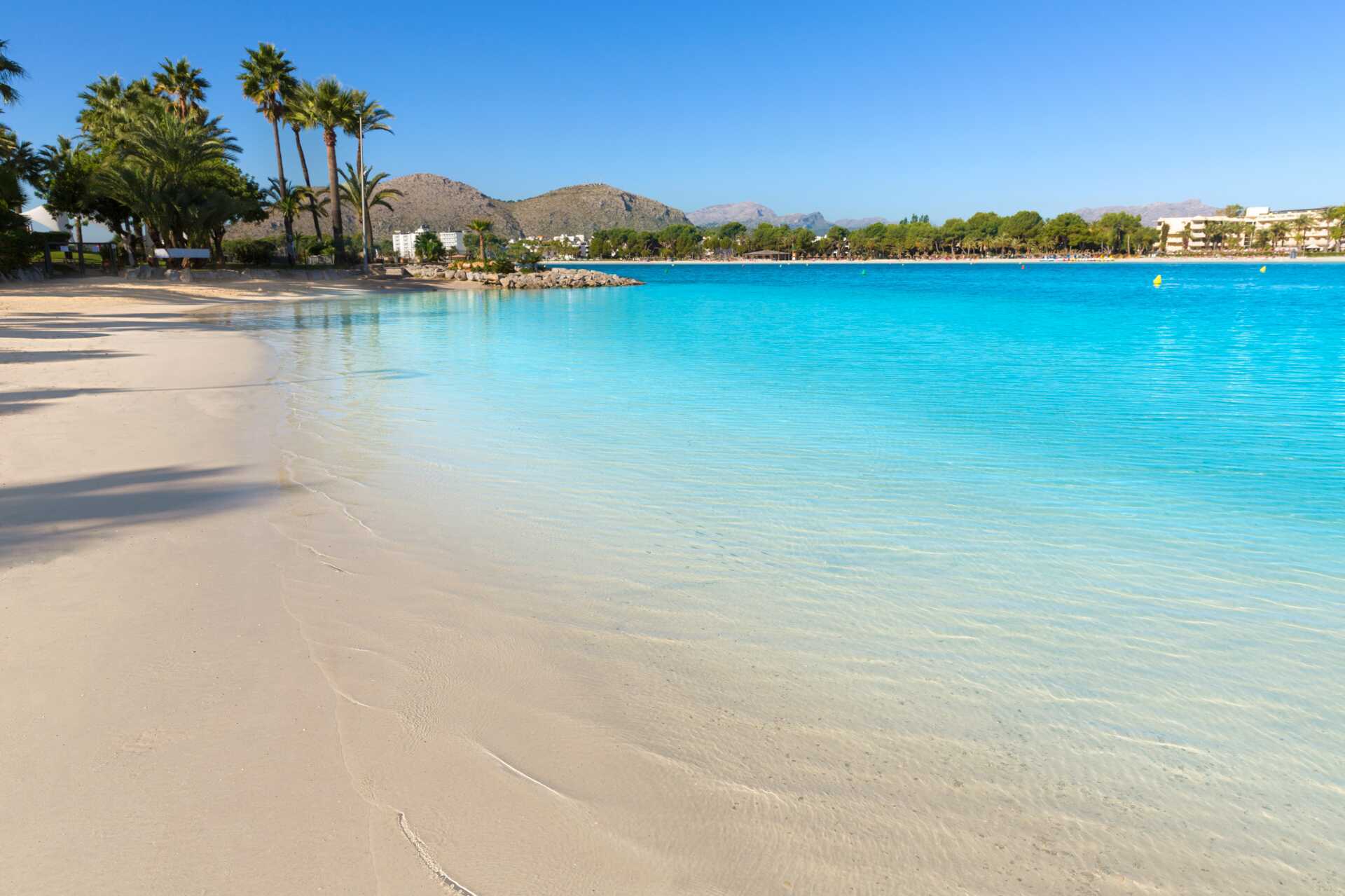 Alcúdia & Playa de Muro har en 14 km lang, finkornet og lavvandet sandstrand, der strækker sig til Ca'n Picafort. Palma Nova, Torrenova og Magaluf har fire finkornet sandstrande. I Puerto de Sóller er der to sandstrande, og Puerto de Pollensa har en dejlig, halv kilometer lang sandstrand. Lang, hvid, børnevenlig sandstrand i Ca'n Pastilla med gode muligheder for vandsport. I Cala d'Or kan man svømme i små bugter, som ikke er lavvandede. Der er gode muligheder for forskellige vandsportsaktiviteter.