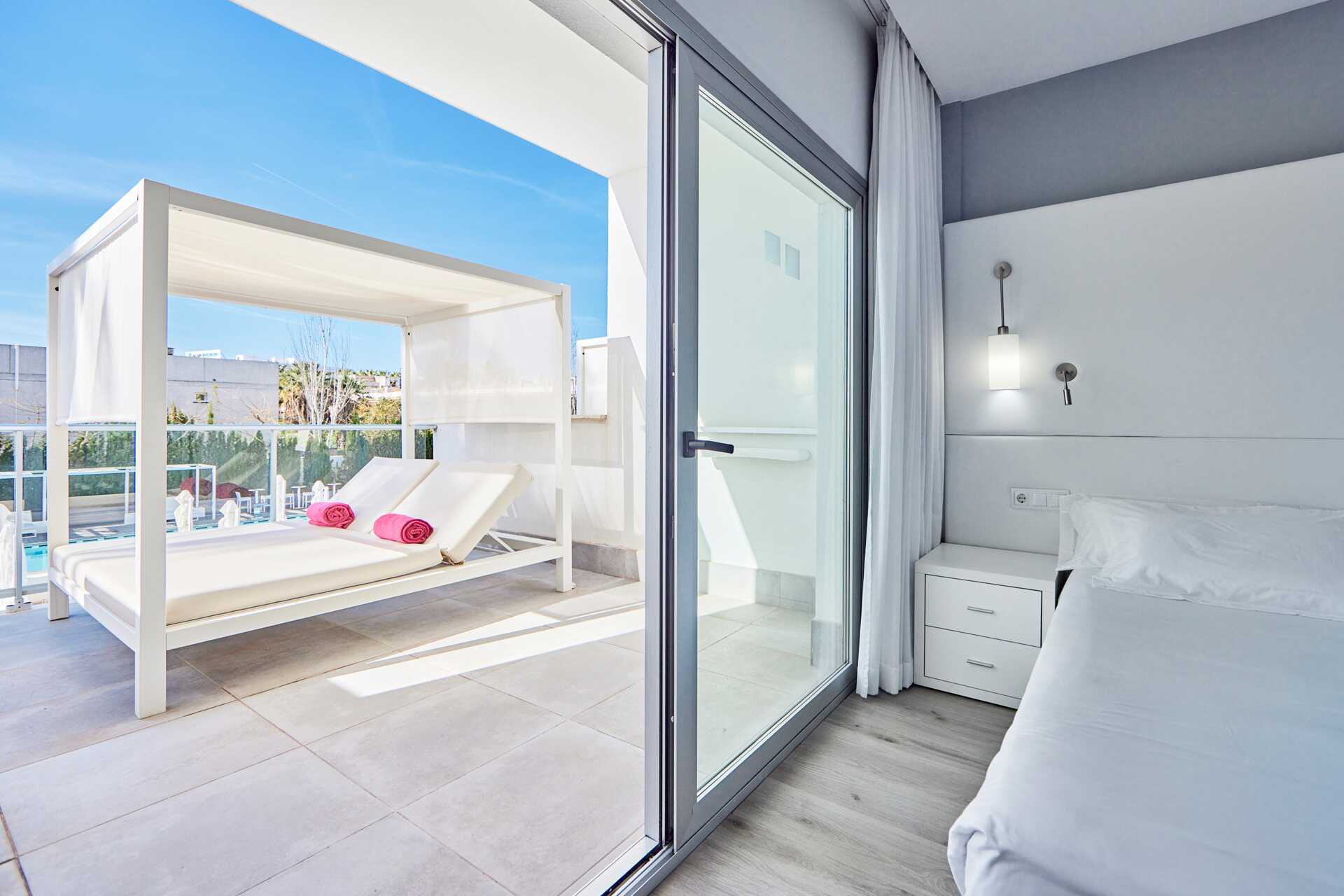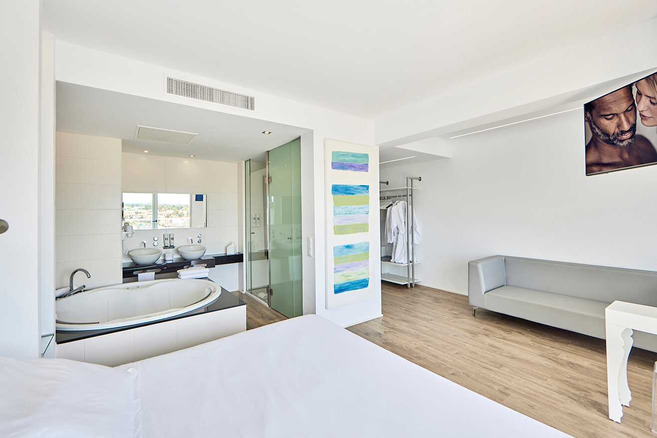 Junior-suiter deluxe med balkon og pooludsigt. Suiterne ligger på 1.-6. etage. En dobbeltseng. Gratis wifi, aircondition og deponering. Køleskab. El-kedel. Nespressomaskine - kapsler er inkluderet ved ankomst. Tv med internationale kanaler. Badekåber og tøfler. Åben planløsning til badeværelse med hårtørrer, jacuzzi badekar, separat bruser og toilet. Rengøring 7 gange om ugen.