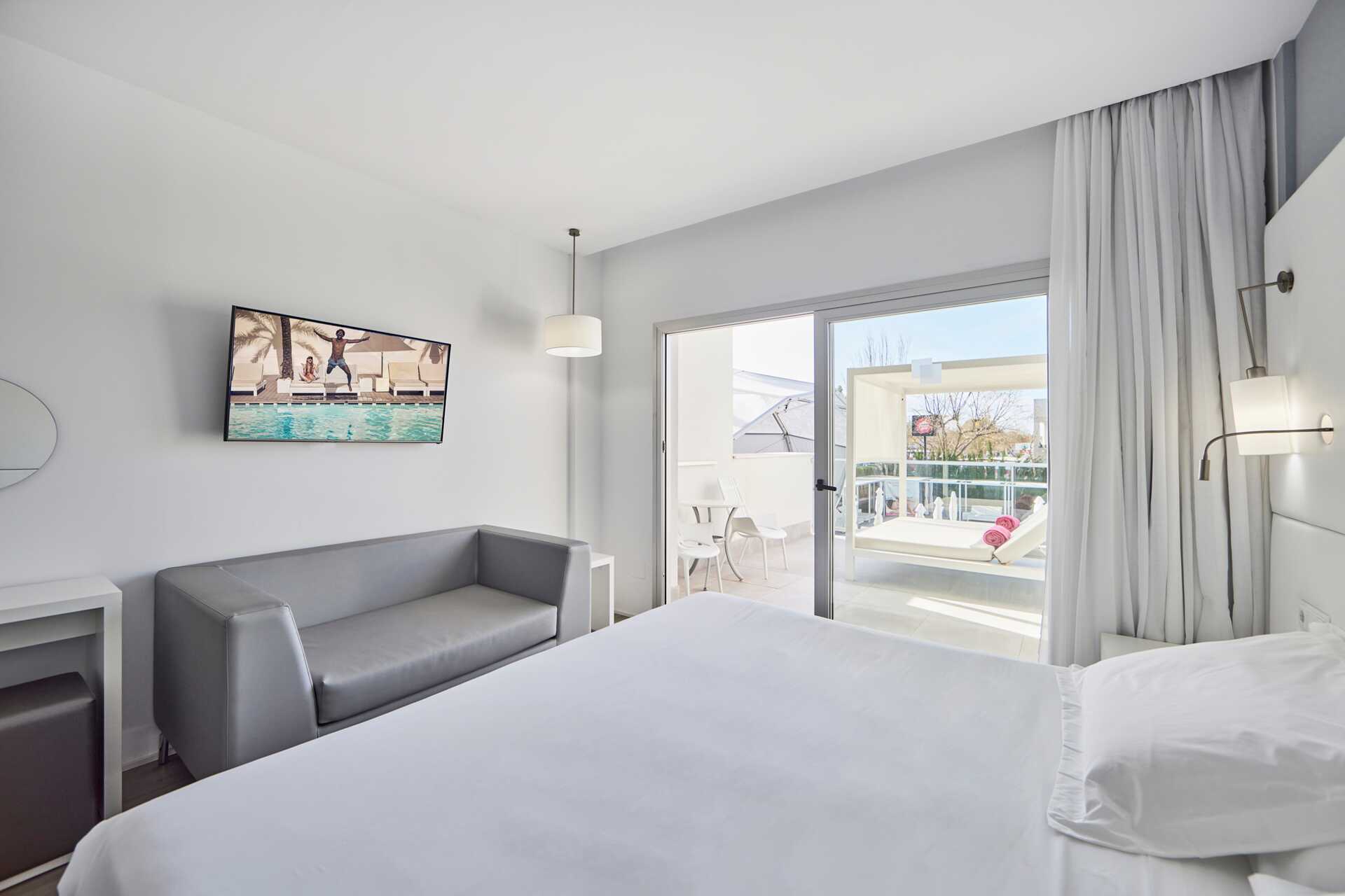 Deluxe-værelser med balkon og pooludsigt eller med stor balkon eller terrasse med pooludsigt. Værelserne med balkon ligger på 5.-6. etage. Værelserne med stor balkon eller terrasse ligger på 1. sal og på terrassen er der stole og borde samt en stor komfortabel balinesisk seng. En dobbeltseng. Gratis wifi, aircondition og deponering. Køleskab. El-kedel. Nespressomaskine - kapsler inkluderet ved ankomst. Tv med internationale kanaler. Badekåber og tøfler. Hårtørrer. Badeværelse med bruser og toilet. Rengøring 7 gange om ugen.