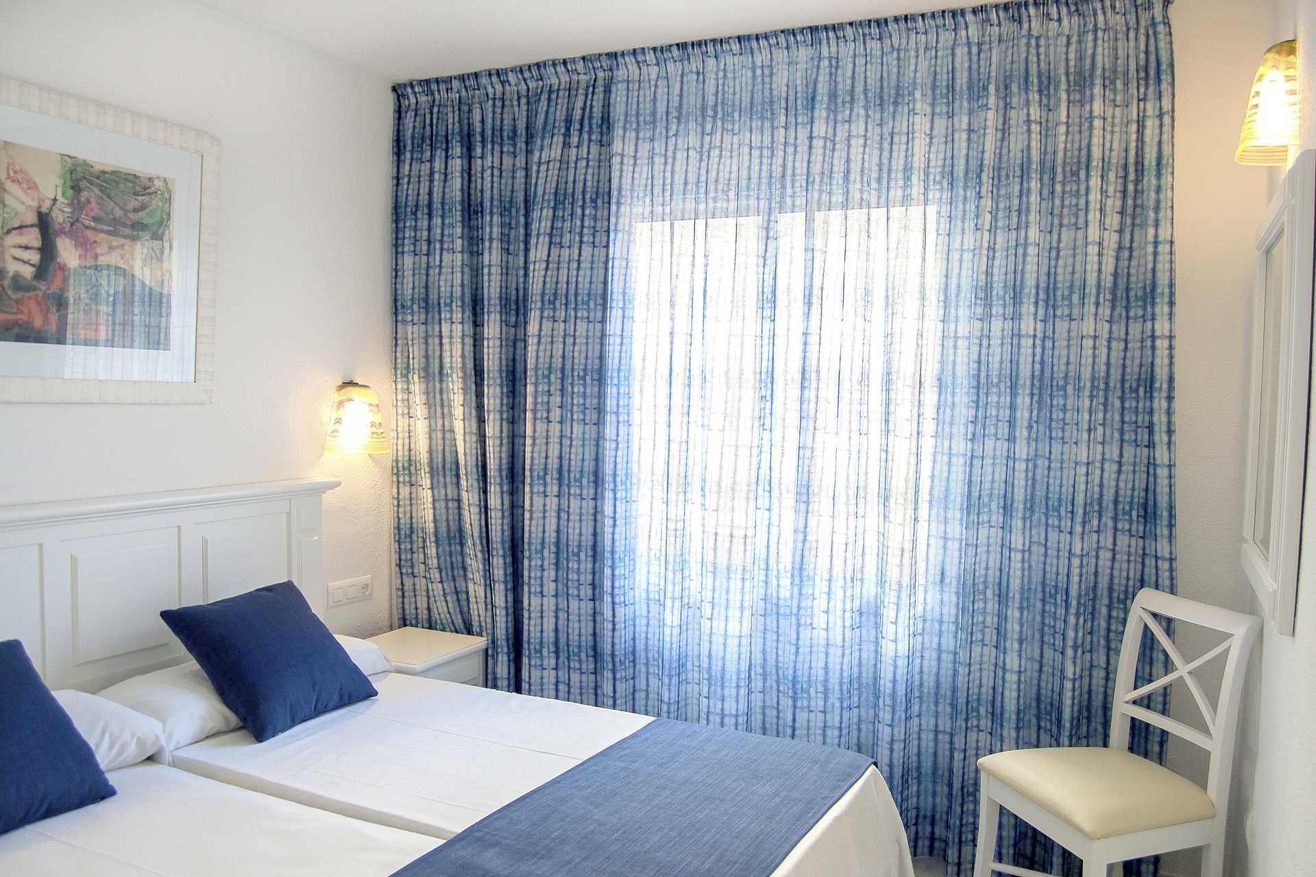 2-værelses lejlighed med balkon eller terrasse. Soveværelse og kombineret opholdsrum med minikøkken. To enkeltsenge. Mulighed for ekstra opredninger i sovesofa. Minikøkken med kogeplader, køleskab, mikroovn, brødrister, kaffemaskine og enkelt køkkenudstyr. Gratis aircondition (kun i opholdsrum). Wifi og deponering mod betaling. Tv med internationale kanaler. Hårtørrer, Badeværelse med bruser og toilet. Rengøring 5 gange om ugen. Børn under to år tæller med i det maksimale antal personer på værelset.