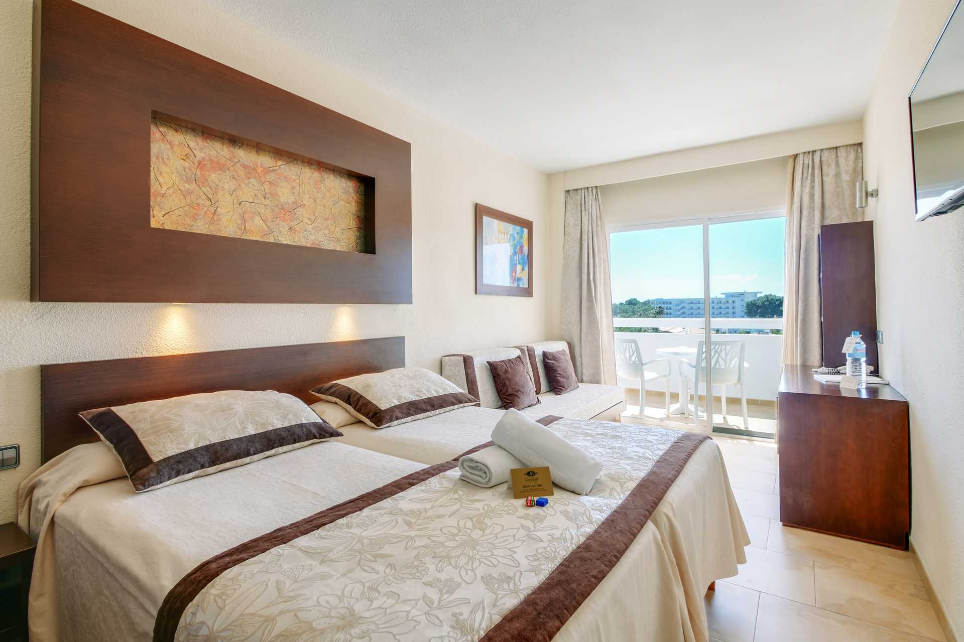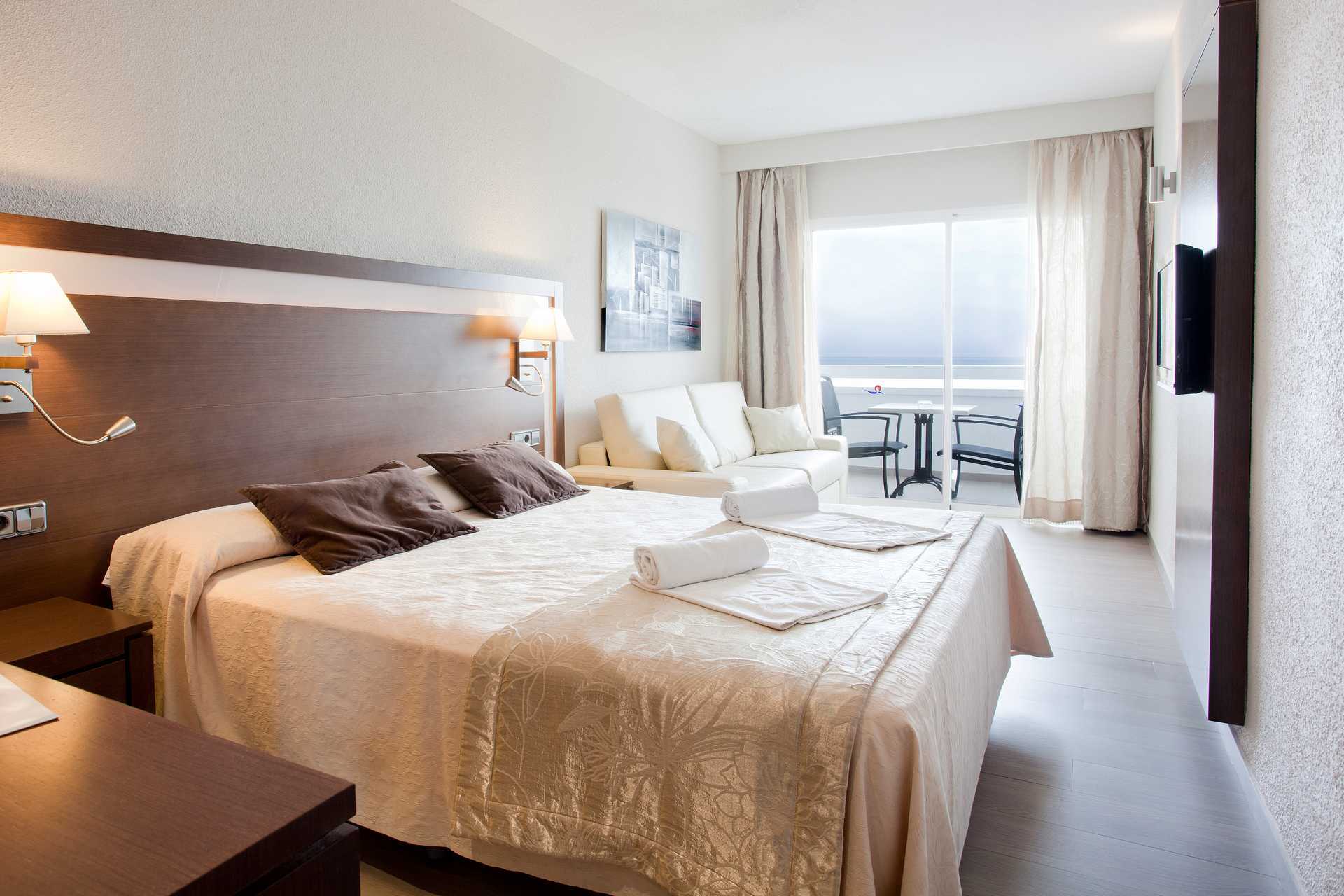 Dobbeltværelser med balkon eller terrasse, nogle med havudsigt og nogle med delvis havudsigt. En dobbeltseng eller to enkeltsenge. Mulighed for ekstra opredning i sovesofa. Gratis wifi og aircondition. Deponering mod betaling. Minibar mod betaling. Tv med internationale kanaler. Hårtørrer. Badeværelse med badekar eller bruser samt toilet. Rengøring 7 gange om ugen. Børn under to år tæller med i det maksimale antal personer på værelset.