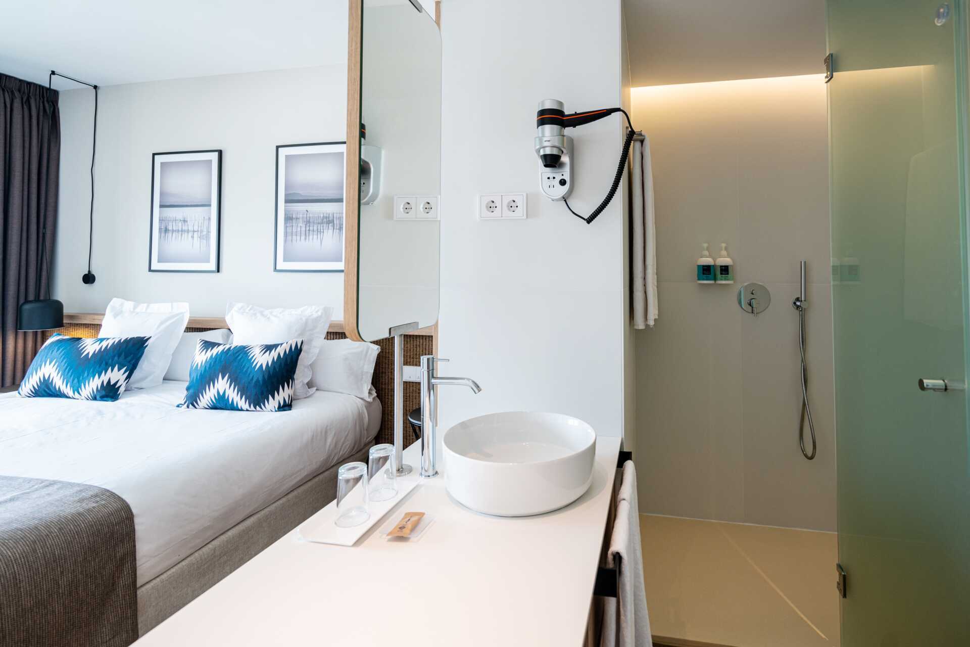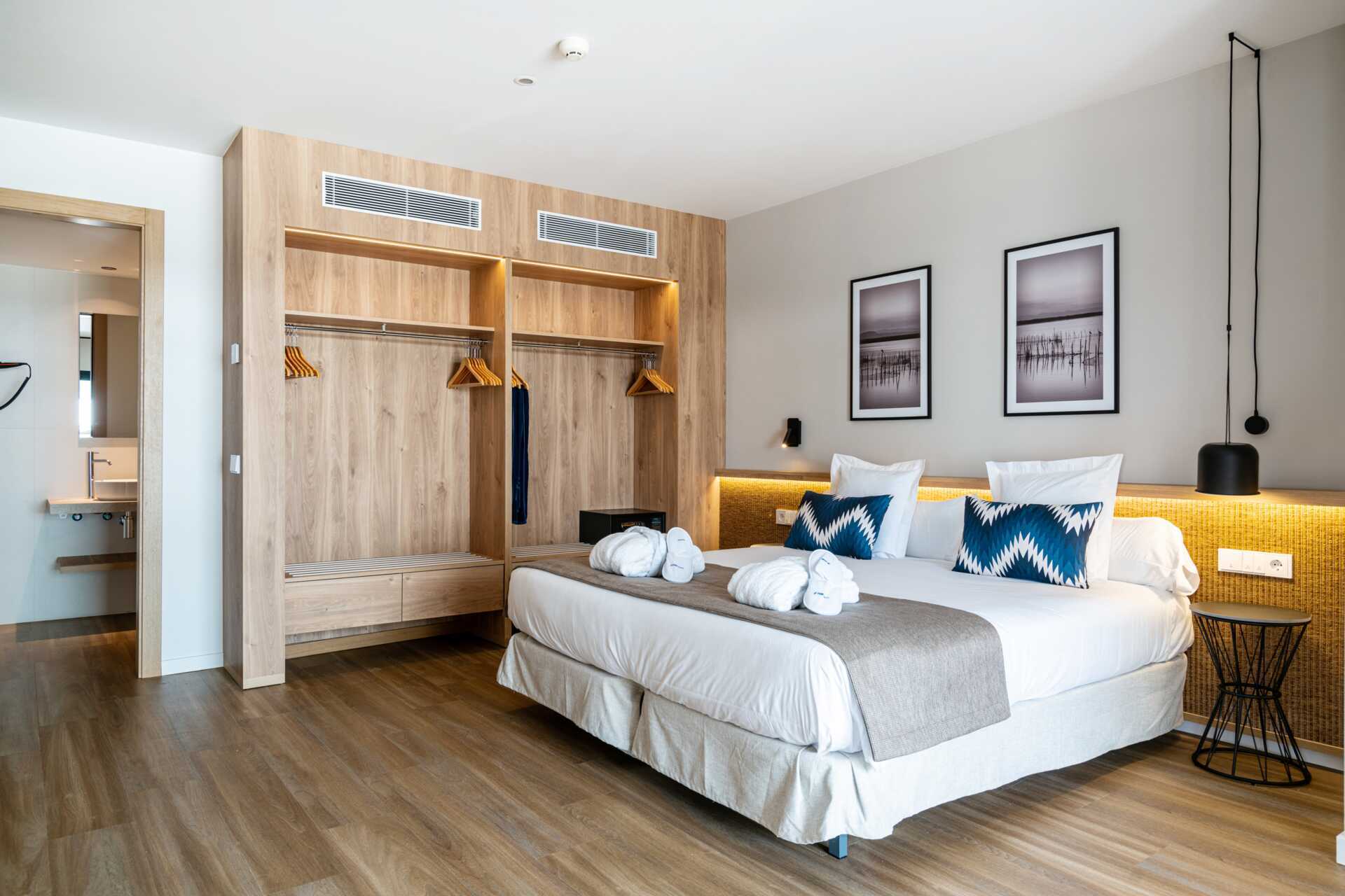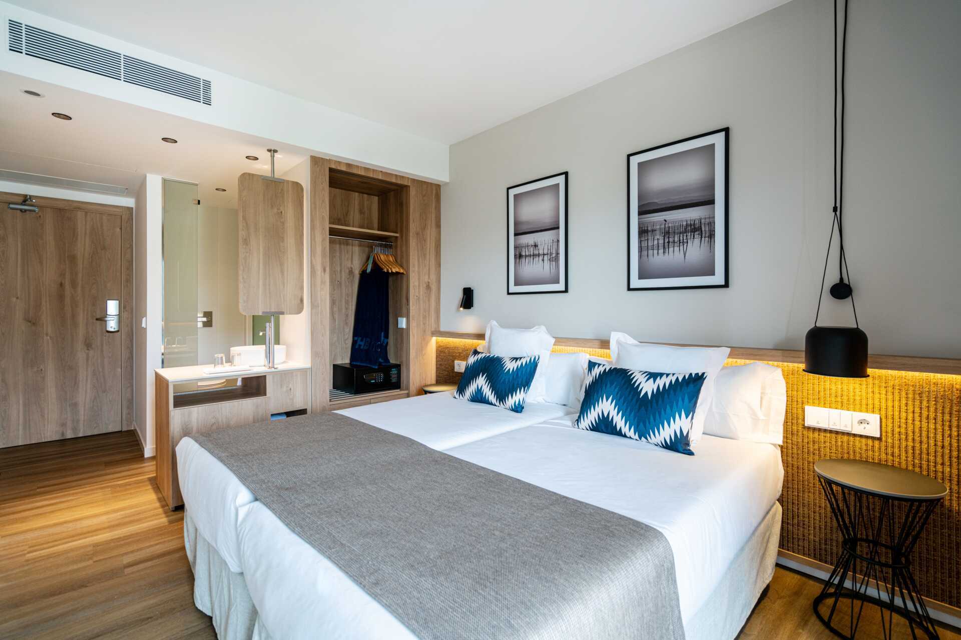 Dobbeltværelser med balkon, nogle med pooludsigt. To enkeltsenge. Gratis wifi, aircondition og deponering. Køleskab. El-kedel og kaffe/te. Tv med internationale kanaler. Hårtørrer. Åben grundplan til badeværelset. Matteret glasdør til bad og toilet. Rengøring 7 gange om ugen.