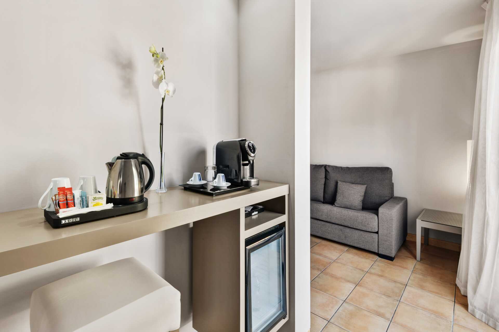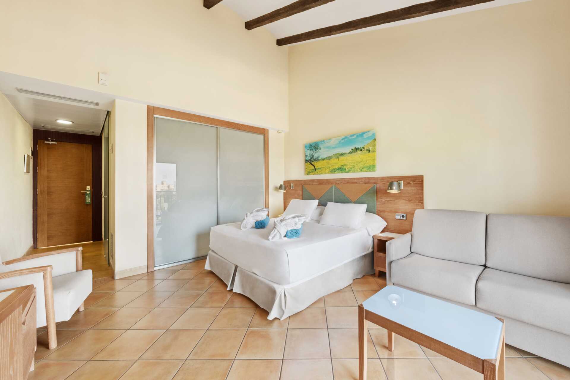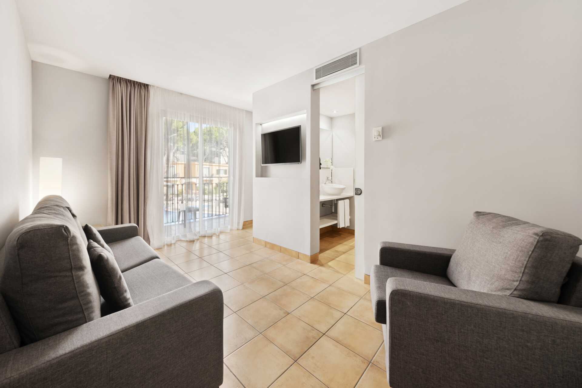 Deluxe-værelser med balkon eller terrasse. Deluxe-værelset består af et soveværelse og et åbent opholdsområde. En dobbeltseng eller to enkeltsenge. Mulighed for to ekstra opredninger i en sovesofa. Pudemenu. Gratis wifi og aircondition. Deponering mod betaling. Minibar. El-kedel og kaffe/te. Espresso kaffemaskine. Poolhåndklæder indgår. Hårtørrer. Badeværelse med bruser og toilet. Rengøring 5 gange om ugen.