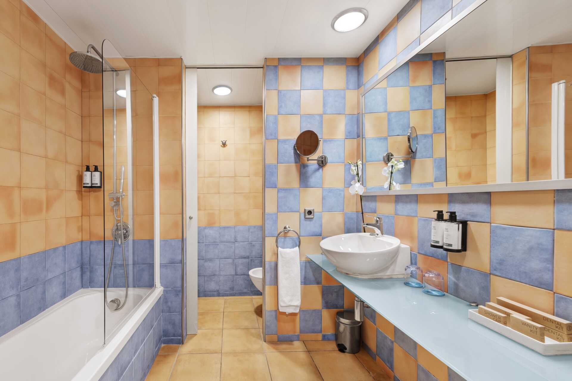 Superior-værelse med balkon eller terrasse. To enkeltsenge. Gratis wifi og aircondition. Deponering mod betaling. Minibar. El-kedel og kaffe/te. Hårtørrer. Badeværelse med bruser og toilet. Rengøring 5 gange om ugen.