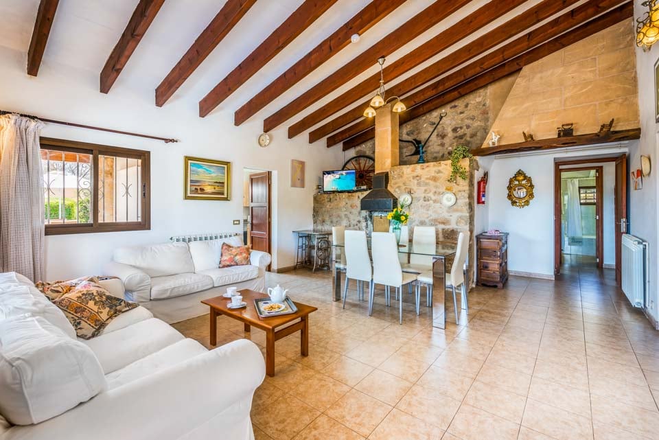 Når du er indenfor, er alle boligerne placeret i stueetagen. Indgangen fører dig direkte ind i den åbne stue og spisestue. Dette område er fyldt med karakter fra det originale bjælkeloft til den indvendige stenvæg. Køkkenet tilbyder alle de moderne bekvemmeligheder, du kan forvente og få brug for på en ferie, herunder opvaskemaskine, vaskemaskine, mikrobølgeovn, keramisk kogeplade og ovn og selvfølgelig et køleskab med fryser. Der er i alt tre soveværelser, et soveværelse med dobbeltseng og to soveværelser med to enkeltsenge, som alle har tidsindstillet aircondition. Der er et badeværelse og et brusebad, som begge deles af alle tre soveværelser.