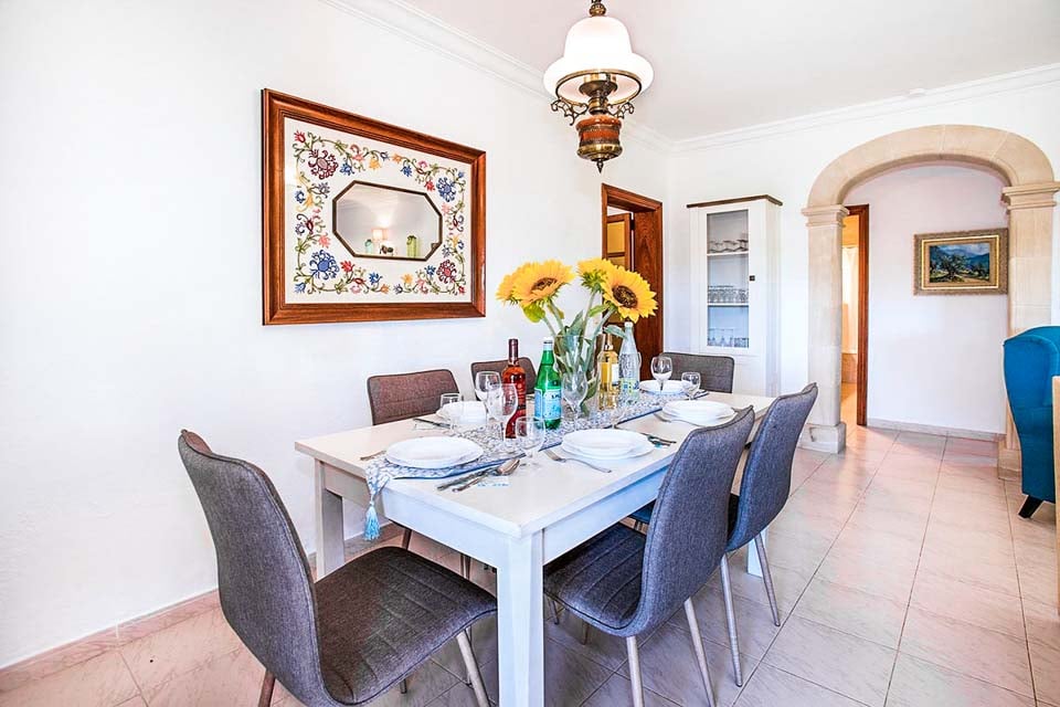 Denne villa, beliggende midt i det mallorcanske landskab, ligger centralt i forhold til tre af Mallorcas nordligste feriesteder, Pollensas gamle bydel, Port de Pollensa og Cala San Vicente. Fantastiske strande med bugter, vandsportsaktiviteter, gamle kirker og lækre lokale retter ligger kun en kort køretur væk.
