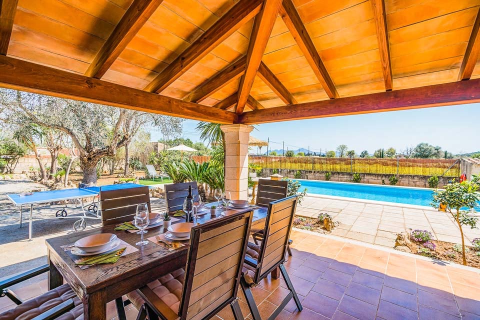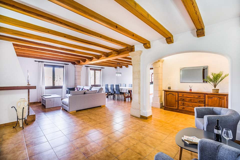Villaen er en fortryllende ejendom i Finca-stil, der udstråler karakter med sin facade af stenvægge og terrakottafliser og tilbyder et smagfuldt interiør i overensstemmelse med den traditionelle middelhavsstil, samtidig med at den er yderst komfortabel. Hvert af de tre soveværelser har aircondition for at holde dig kølig på varme sommernætter, og boligen og opholdsstuen er alle bekvemt fordelt på ét plan; perfekt til familier. Selvom interiøret er et meget behageligt sted at tilbringe tid, er Villa Lena tydeligvis designet med udendørsliv i tankerne. En stor, indbydende pool er omdrejningspunktet for det ydre, og denne er omgivet af en rummelig terrasse og velholdte, modne haver, herunder et storslået, gammelt oliventræ, en håndfuld palmer og meget mere. En stor, skyggefuld terrasse og et udendørs køkken med indbygget grill fuldender udendørsområdet og indbyder til vidunderlige udendørs spisninger med det maleriske landlige Mallorca som baggrund.