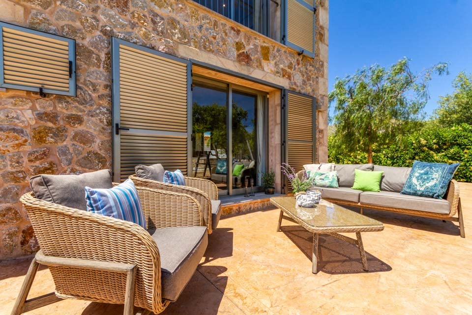 Denne toetagers stenbeklædte villa er noget helt særligt og er en vidunderlig indkvartering for op til otte gæster. Livlige og friske interiører står i smuk kontrast til ejendommens finca-stil, og alle fire soveværelser har aircondition og eget badeværelse for maksimal komfort under dit ophold.