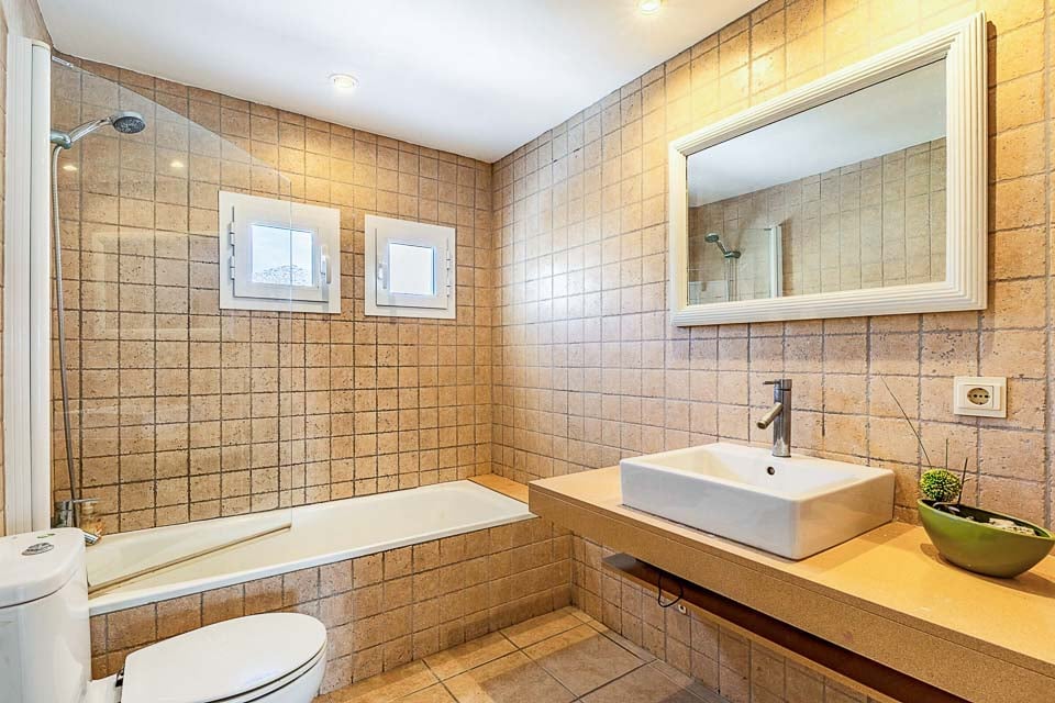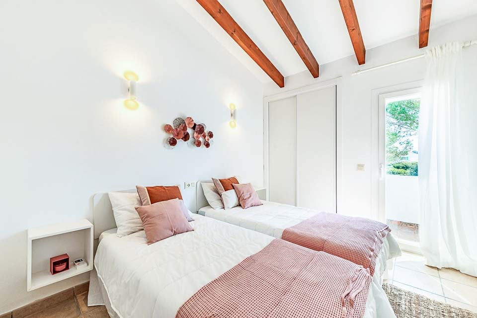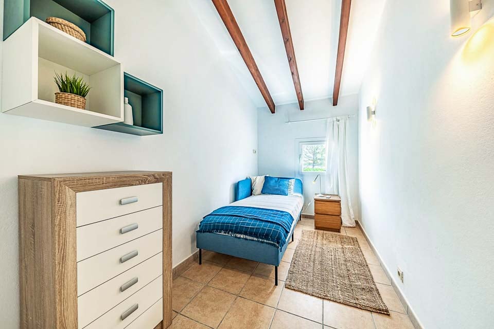 Ovenpå finder vi de tre soveværelser, et enkeltværelse, et værelse med to enkeltsenge og et dobbeltværelse med plads til maksimalt fem personer. Alle soveværelser har tidsindstillet aircondition og separat adgang til et familiebadeværelse og et brusebad i stueetagen.