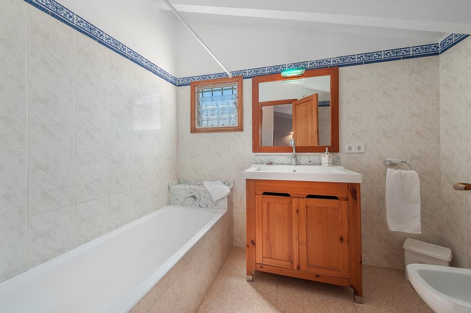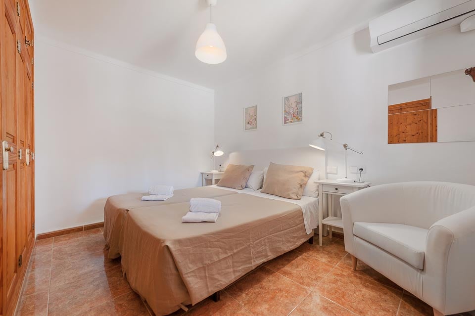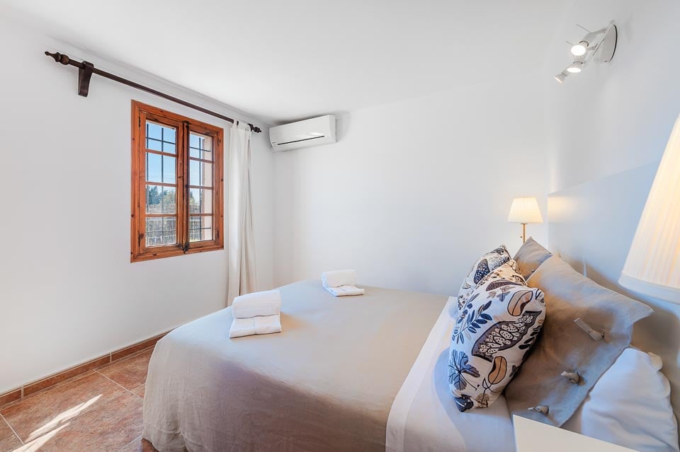 Dette tilsyneladende store fritliggende landsted ligger i et fredeligt, åbent landskab på en asfalteret landevej i rolige, landlige omgivelser. De populære badebyer Puerto Pollensa og Cala San Vincente samt den gamle bydel i Pollensa og Pollensas golfbane ligger alle kun få minutters kørsel væk.