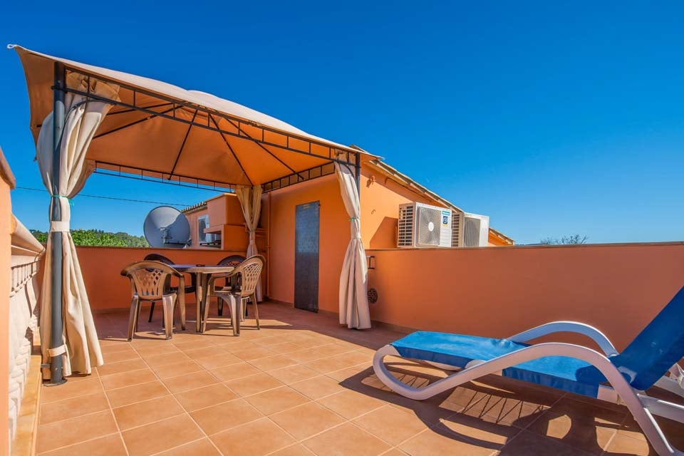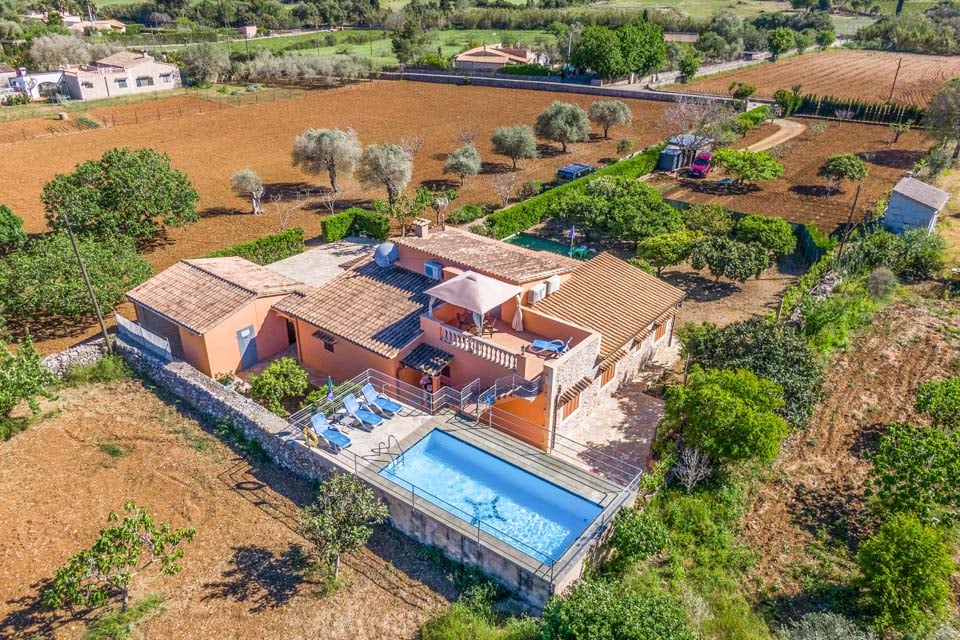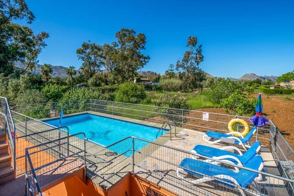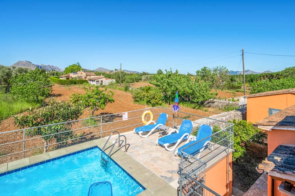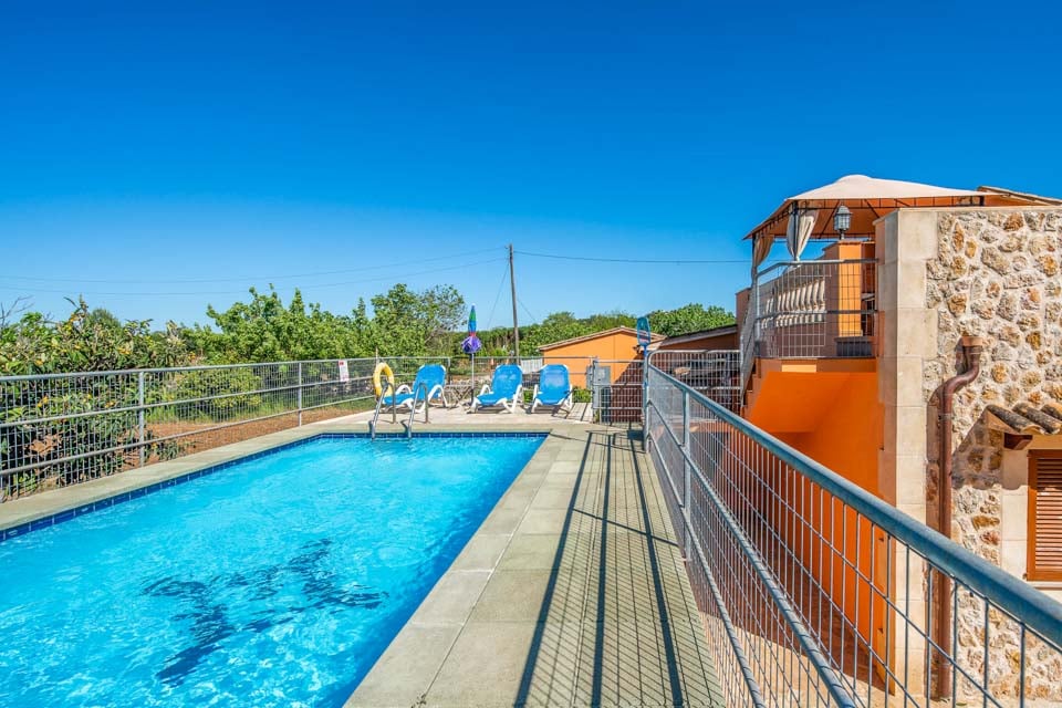 Når du begiver dig udenfor, udfolder et betagende panorama sig foran dig. Det glitrende vand i swimmingpoolen indbyder til en forfriskende dukkert, mens den frodige have, udsmykket med lokale frugttræer, tilbyder en rolig oase af ro. Swimmingpoolen er designet med børn i tankerne, da den er fuldt afspærret for at holde de små sikre. En rummelig terrasse med komfortable siddepladser og grill sætter scenen for uforglemmelige spiseoplevelser under den stjerneklare mallorcanske himmel.