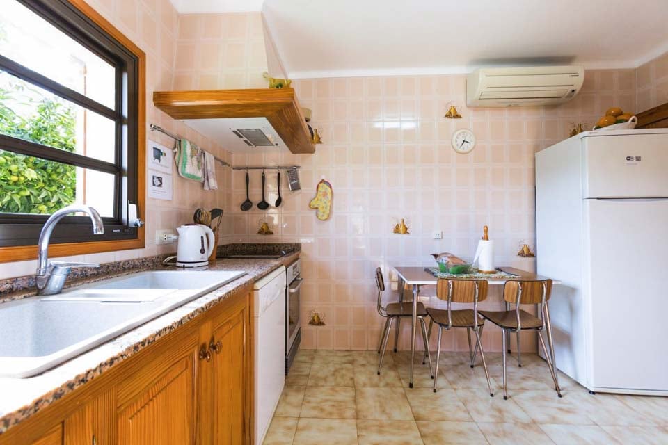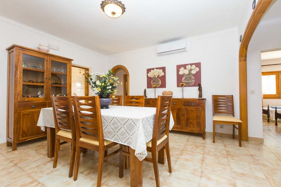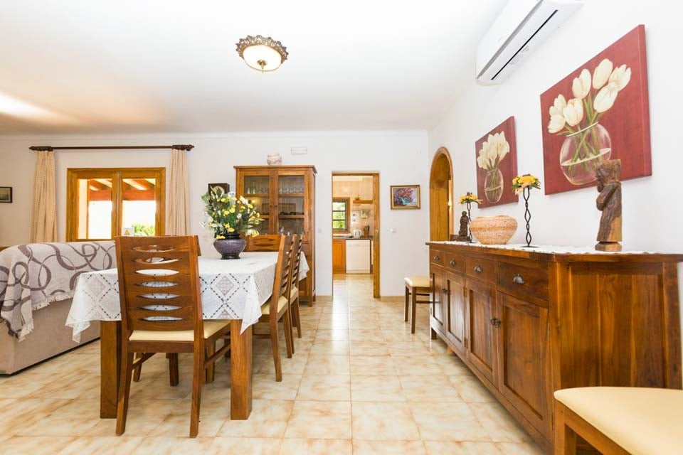 Denne moderne, men rustikke villa tilbyder et glimt af traditionel mallorcansk livsstil og indbyder til en atmosfære af åbent rum og frisk, moderne indretning med beroligende neutrale toner overalt. Den hyggelige opholdsstue er det ideelle sted at hygge sig med en god bog og et lækkert glas lokal vin, eller slappe af og forkæle dig selv med din yndlingsfilm på fladskærms-tv'et. Køkkenet og spisestuen tilbyder en intim krog, hvor man kan dele en kop morgenkaffe med sine nærmeste, inden man tilbringer en dag ved poolen eller udforsker de nærliggende byer og landsbyer.