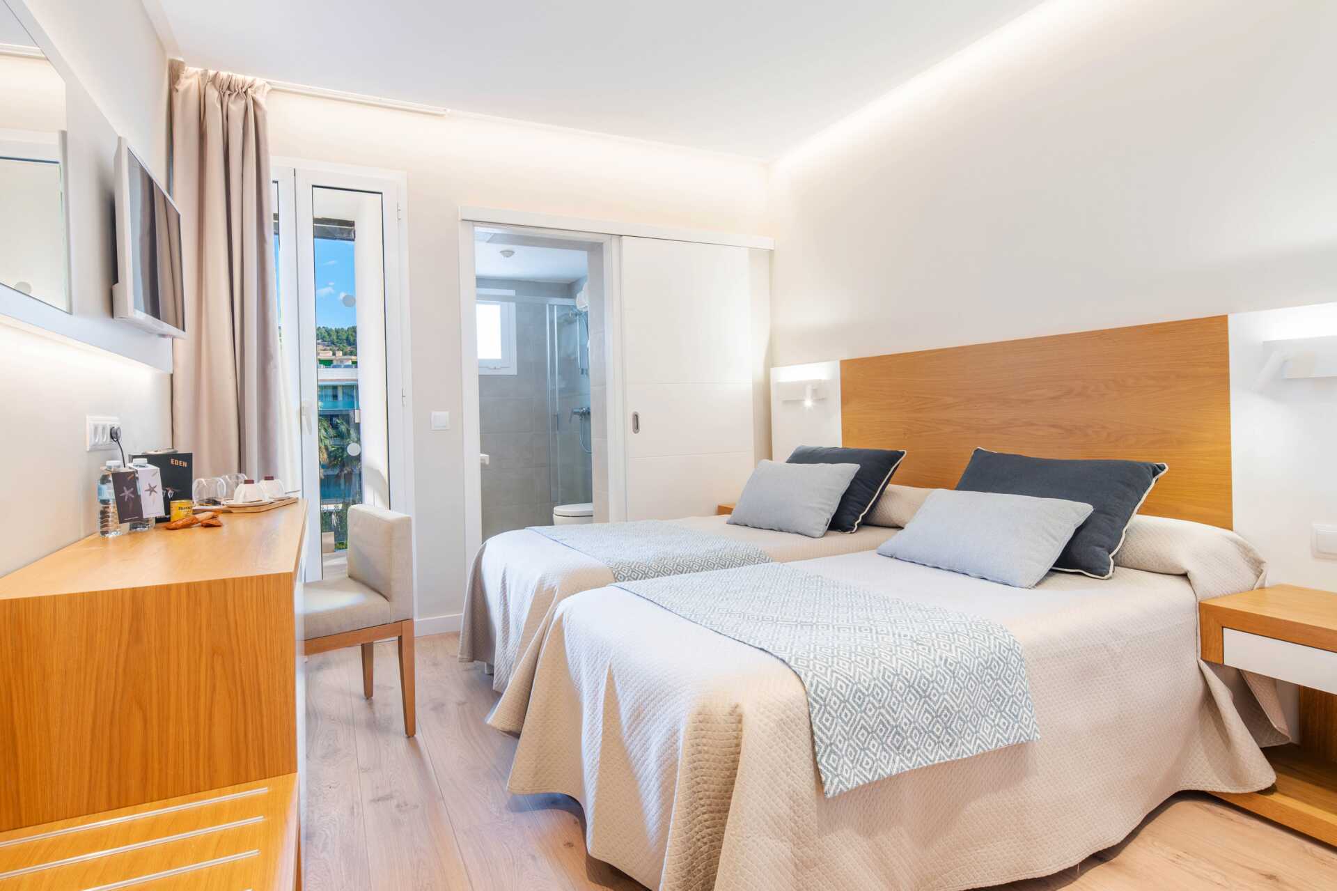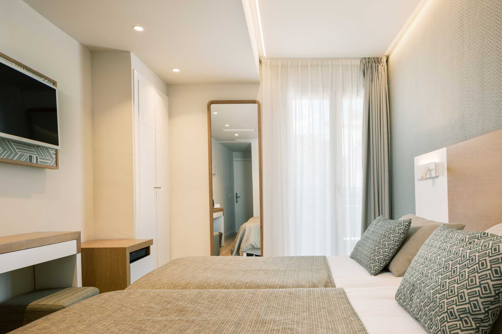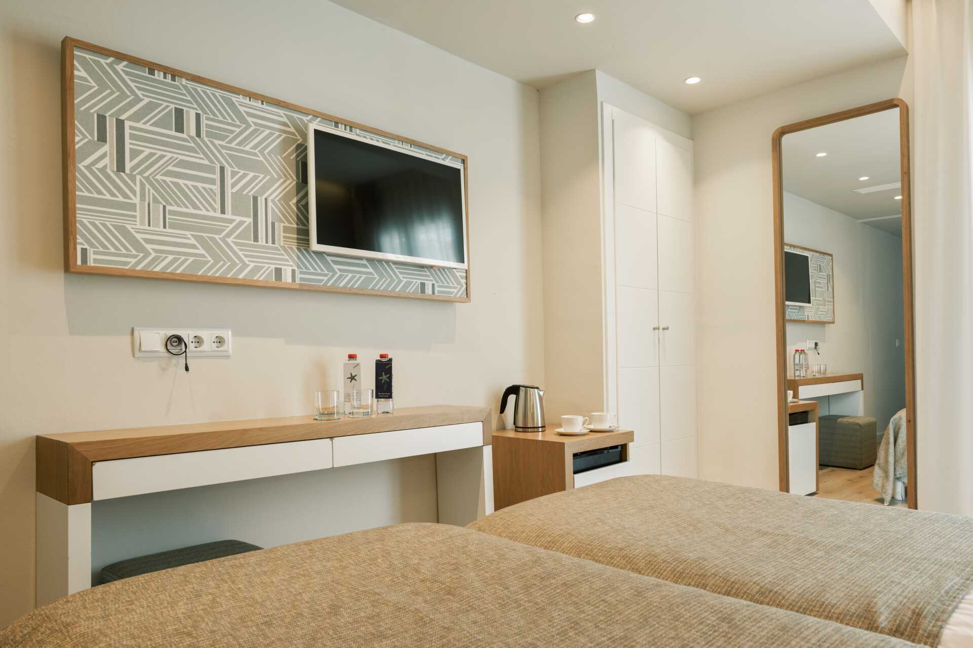 Superior-værelse med balkon og delvis havudsigt. En dobbeltseng eller to enkeltsenge. Mulighed for ekstra opredning i sovesofa. Gratis wifi, aircondition og deponering. Køleskab. El-kedel og kaffe/te. Tv med internationale kanaler. Hårtørrer. Badeværelse med bruser og toilet. Rengøring 7 gange om ugen.