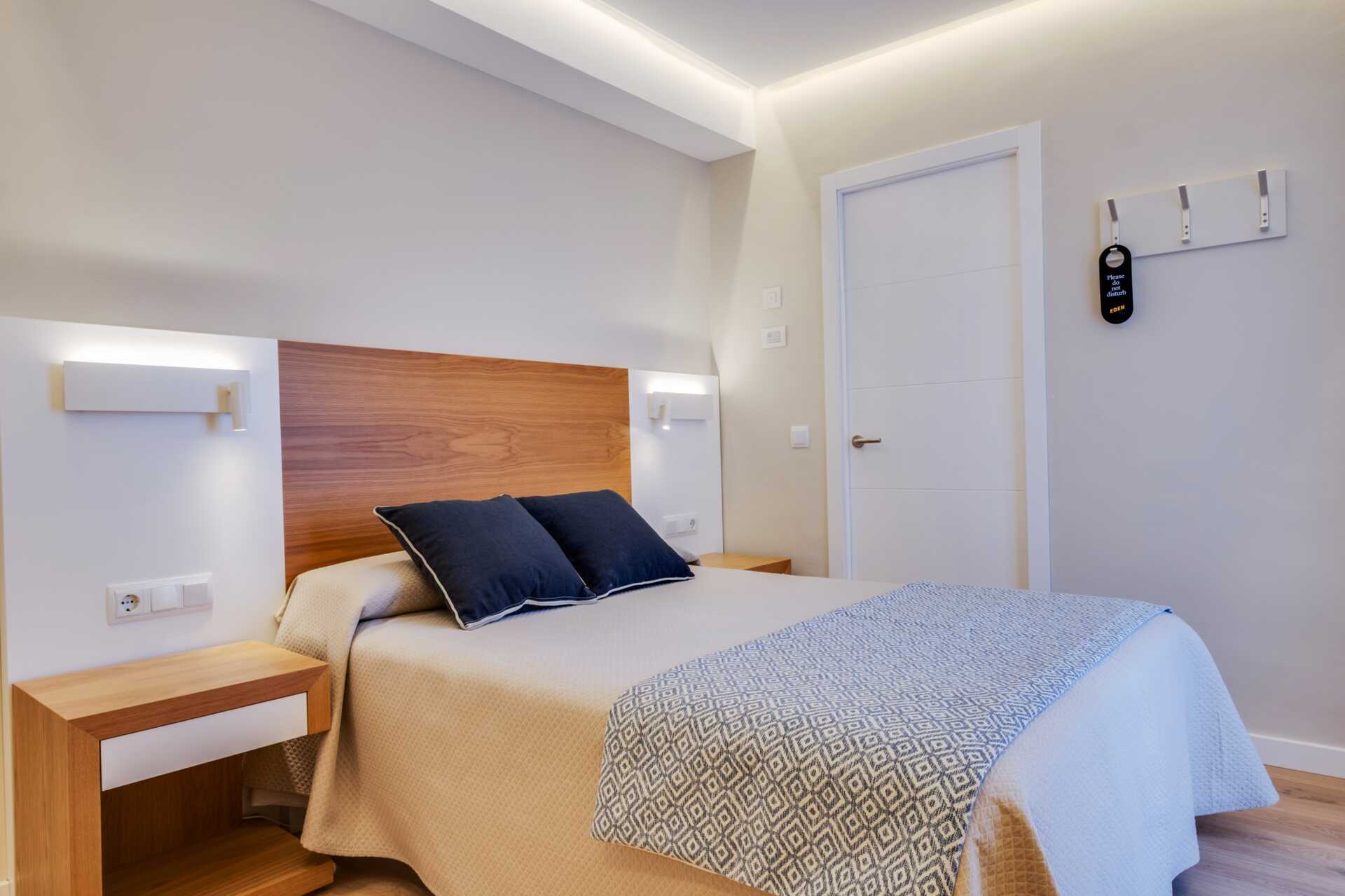 Dobbeltværelse med balkon. En dobbeltseng eller to enkeltsenge. Gratis wifi, aircondition og deponering. Køleskab. El-kedel og kaffe/te. Tv med internationale kanaler. Hårtørrer. Badeværelse med bruser og toilet. Rengøring 7 gange om ugen.