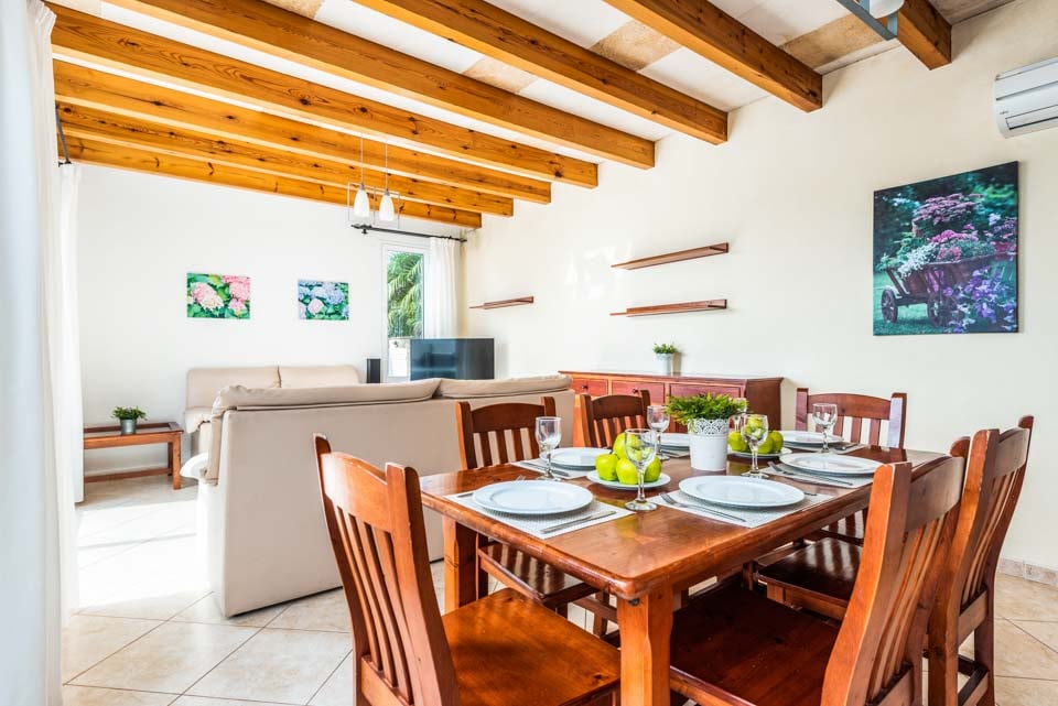 Vi præsenterer Villa Elena, et charmerende oase beliggende i den maleriske kystby Cala en Forcat. Denne villa kan prale af en misundelsesværdig beliggenhed kun en kort gåtur fra den sandede bugt og tilbyder den perfekte blanding af ro og bekvemmelighed. Det pulserende feriestedscenter med dets udvalg af restauranter, barer med levende musik, supermarkeder og et vandland for de mindste er inden for rækkevidde.