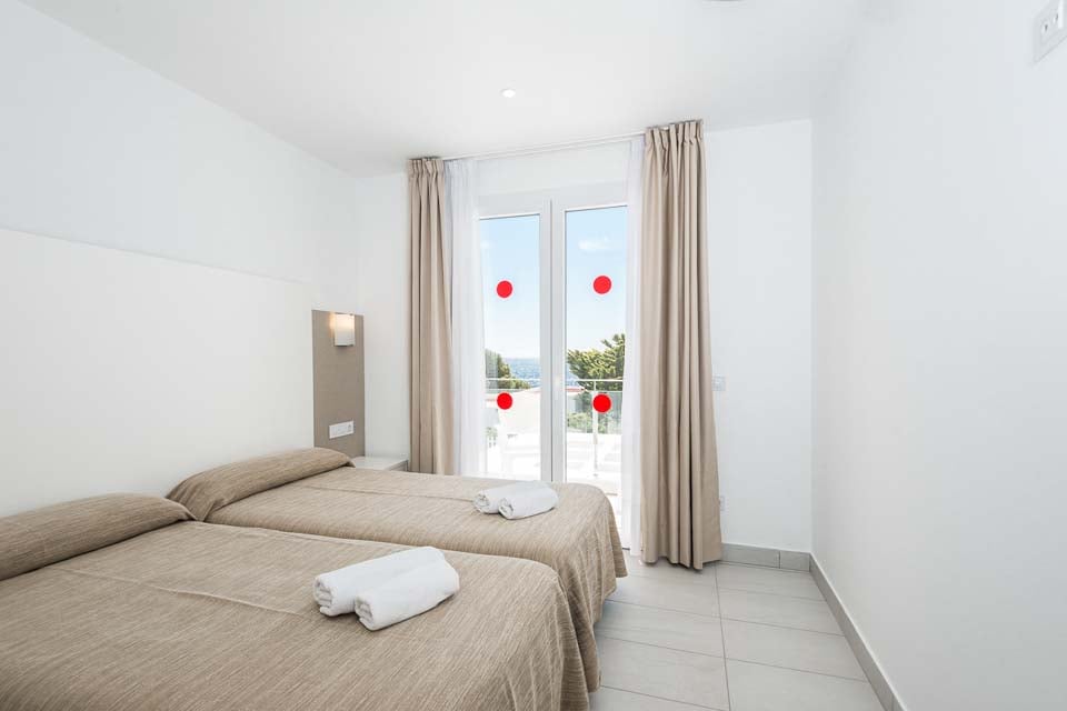 To enkeltsenge, aircondition, balkon, terrassedøre, havudsigt