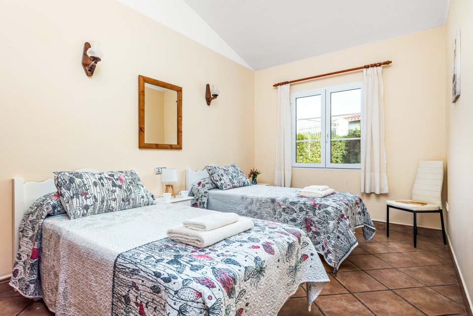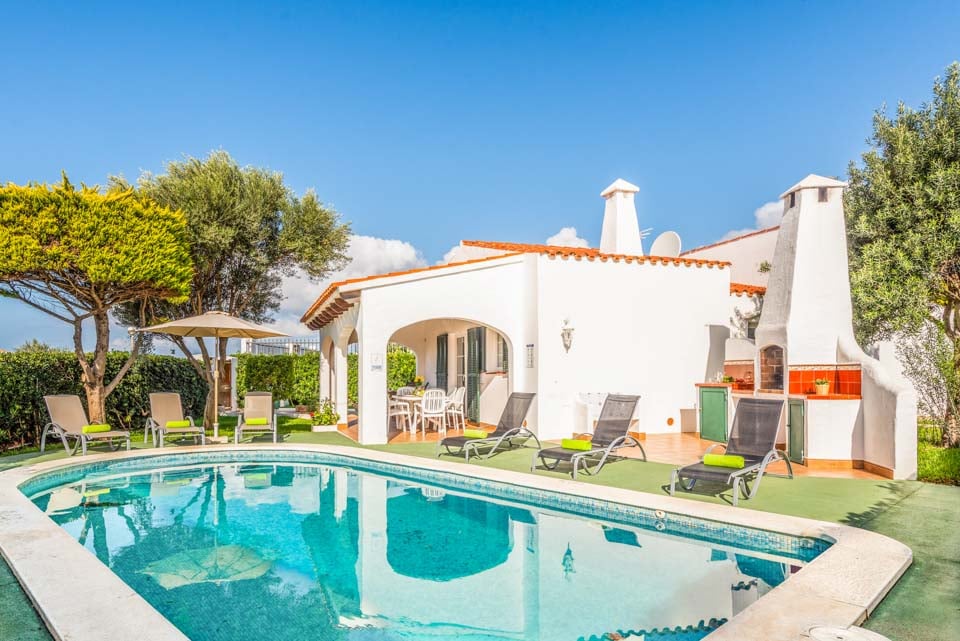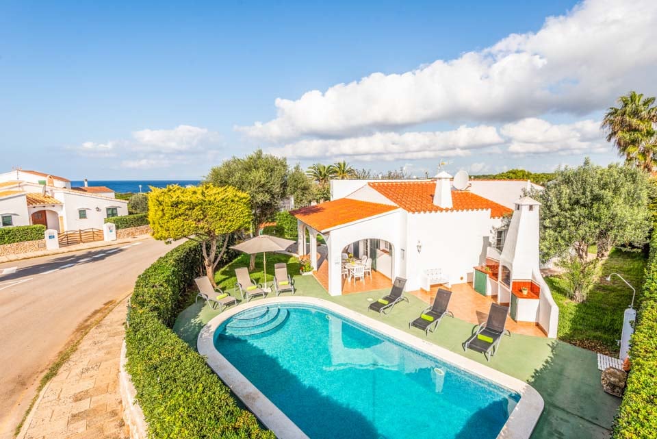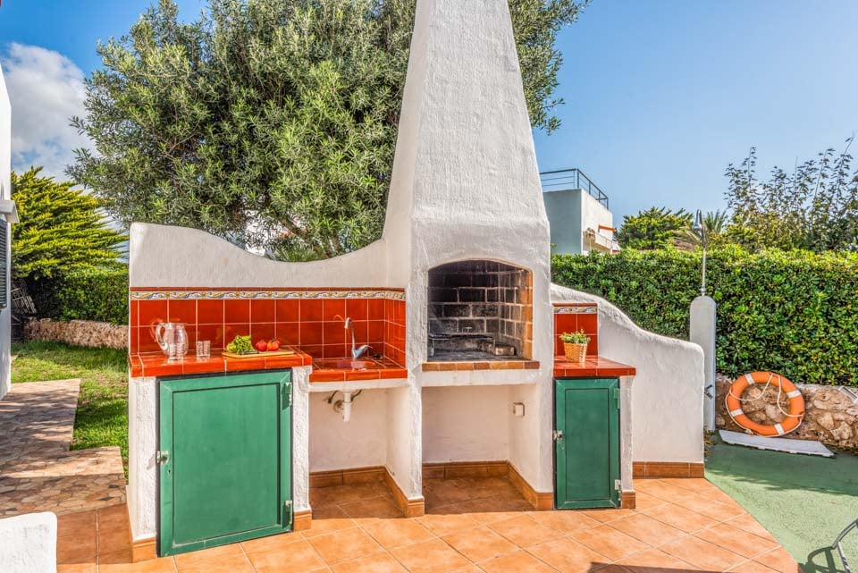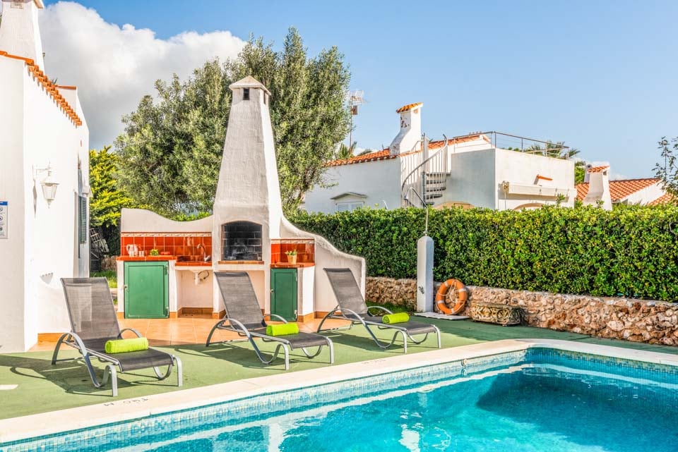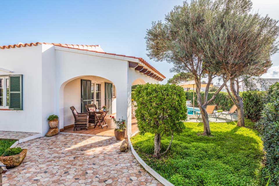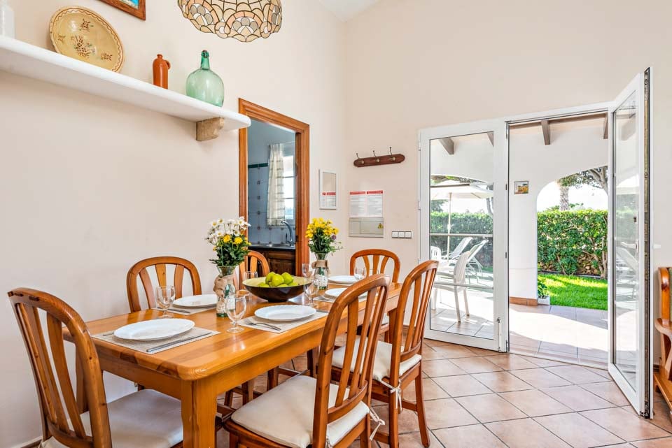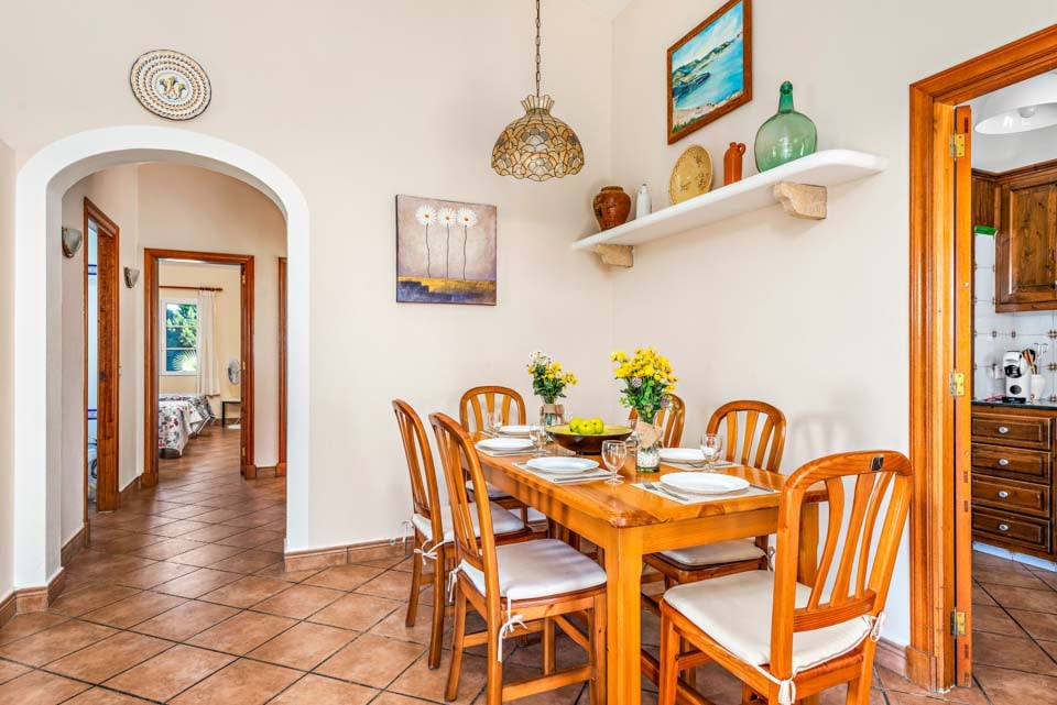 Charmerende på alle måder, Villa Iris Bosch er bygget i traditionel menorcansk stil og gentager den baleariske historiske arkitektur. Det ydre legemliggør alle dele af en malerisk spansk casa med sine terracotta-tage, store søjler, stukvægge og rige træskodder. Indenfor brummer en middelhavsmelodi med et elegant og enkelt farveskema, der kommer til live fra den autentiske indretning og antikke møbler. Stuen er rummelig og elegant indrettet i kølige nuancer af hvid og grøn, med et sofasæt til at synke ned i efter en travl dag med sightseeing. Du vil forelske dig i køkkenet, hvis du er fan af retrostilen, med gammeldags træskabe og en hyggelig mosaikbeklædt bagplade. De tre soveværelser er spredt ud over villaen, med to tvillinger og en dobbeltseng, der komfortabelt kan sove op til seks voksne.
